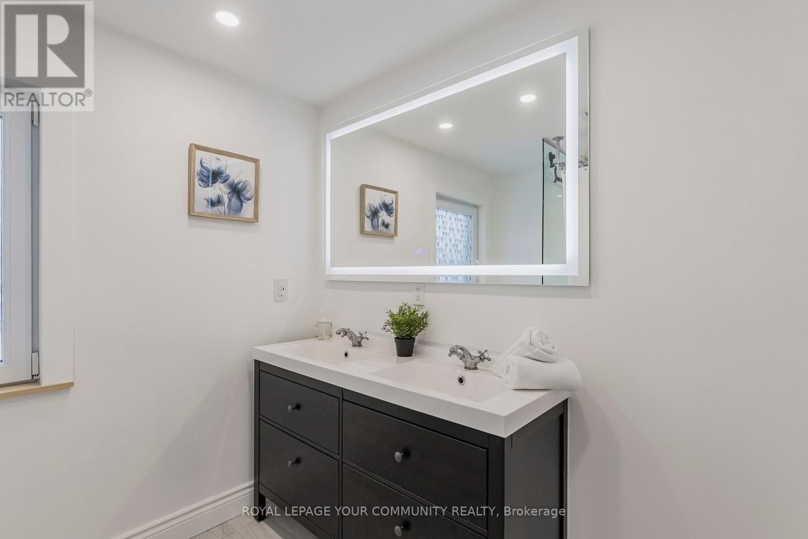 Welcome to this gorgeous, renovated family home in the prestigious Hills of St. Andrews. Nestled in a highly sought-after, family-friendly neighbourhood, this exceptional residence sits on a premium 56 x 108 corner lot surrounded by mature trees, lush green space, and a private deck. Thoughtfully updated throughout, the home is designed for modern family living with both style and functionality in mind. The chef's kitchen features quartz countertops and backsplash, stainless steel appliances, premium finishes, and a reverse osmosis water filtration system (2024). The open-concept dining area is ideal for entertaining, while the bright family room offers a wood-burning fireplace and large picture windows overlooking the backyard, filling the home with natural light year-round. This spacious home offers 3+2bedrooms and 4 bathrooms, including a fully finished basement ideal for extended family, guests, or recreation. The custom laundry room includes wood counters, a smart washer and dryer, ample storage, and a convenient side entrance. Comfort features include heated floors, engineered wood interior doors (2024), and a soundproofed second floor. Smart home upgrades include a metal front entrance door (2024) with smart lock featuring code, fingerprint, or face recognition and built-in camera, smart blinds, and app-controlled interior and exterior lighting. Additional upgrades include triple-glazed energy-efficient windows (2022) with soundproofing and UV protection, upgraded attic insulation, water softener (2022), central humidifier, and automatic irrigation system for front and backyard with drip irrigation for flower beds. Outstanding location-steps to top-rated schools, parks, walking trails, golf clubs, and shops, and minutes to transit, GO Station, and Highways 400 & 404. (id:51158)