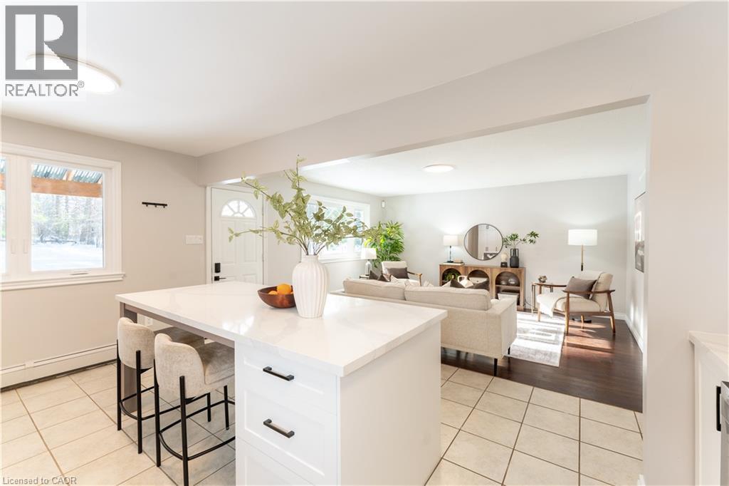 Welcome to 130 Henry Street, a beautifully updated raised bungalow set on an impressive 300-foot wooded lot with a detached garage!.... Offering privacy, nature, and exceptional outdoor living. Featuring 3 bedrooms and 3 bathrooms, including a convenient primary en-suite, this home is ideal for families, multi-generational living, downsizers, or anyone seeking a turnkey property with space and comfort. The well-designed layout is highlighted by new paint, updated lighting including basement potlights, and warm contemporary finishes throughout. The fully updated kitchen showcases quartz counters, brand new stainless steel appliances and a custom kitchen island with storage, creating a perfect hub for cooking, dining, and entertaining. The bathrooms have been thoughtfully refreshed with heated floors in the basement, plus a main bath upgraded with a new toilet, vanity, and exhaust fan for added comfort and modern convenience. The lower level offers impressive versatility with new flooring, a cozy fireplace, and separate entrance access, making it ideal for extended family, a private guest suite, or potential future in-law setup. Outside, the property shines with extensive exterior updates including new windows, new roof, new siding, and a custom covered patio. Close to local amenities and highway access. Don't miss your chance to see this move-in ready home ! (id:51158)
