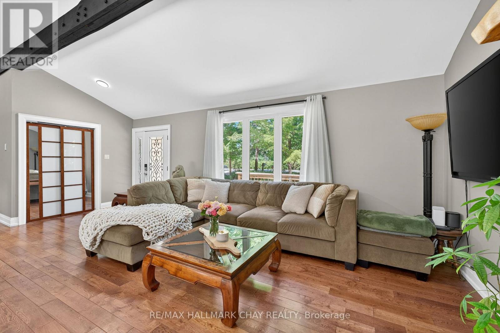Beautifully Maintained 3 Bedroom Ranch Bungalow Nestled On Large 114 x 150 Ft Corner Lot, Surrounded By Mature Trees With Lots Of Privacy! Fully Finished & Insulated Detached 2 Car 576 SqFt Garage With Side Entrance, Gas Heating & 60 AMP Electrical Panel, Plus Additional 12 x 25Ft Carport Attached. A Mechanics Dream Or Perfect For Extra Storage! Inside Boasts An Open Concept Layout With Hardwood Flooring Throughout, Beautiful Cathedral Ceilings With Rustic Wood Beams, & Large Windows Throughout. Spacious Kitchen Features Granite Counters, Stainless Steel Appliances, Backsplash, Double Sink, & Large Centre Island, Perfect For Preparing Any Meal With Lots Of Extra Cabinet Space! Conveniently Combined With The Dining Area, Walk-Out To The Backyard Wrap Around Pressure Treated Wood Deck, Ideal For Hosting Family Summer BBQ's Or Enjoying Your Morning Coffee! Living Room With Gorgeous Stone Accent Electric Fireplace & Large Windows Overlooking The Front Yard. 3 Large Bedrooms Each With Closet Space & Vaulted Ceilings, Plus A 4 Piece Bathroom With Granite Counters. Backyard Is Surrounded By Mature Trees, Enjoy Tons Of Green Space Perfect For Children To Play Or Add Your Personal Touch! Insulted Crawl Space With Heater. Heat Pump & Ductless A/C Unit (2020). Hardwood Flooring (2018). Granite Counters (2018). 200 AMP Panel In Home + Separate 60 AMP Panel For Garage. Asphalt Shingle Roof (2018). Backyard Deck (2018). Water Filtration System (2023). Perfect Location Just 5 Minutes Drive To Friday Harbour Resort With Activities For The Whole Family To Enjoy, 4 Minute Walk To Big Bay Point Golf & Country Club, & 2 Minutes Drive To Big Bay Point's Dock! All While Still Being Just 15 Mins Away From Barrie, Park Place Plaza, Groceries, Shopping, Parks, Schools, & Highway 400! (id:51158)