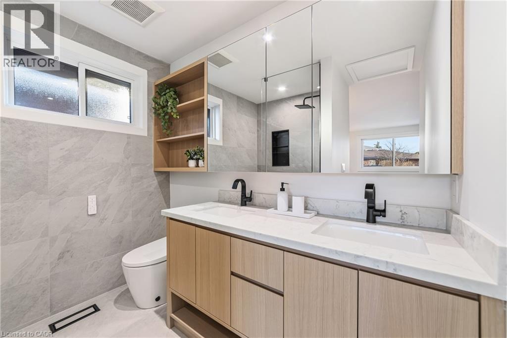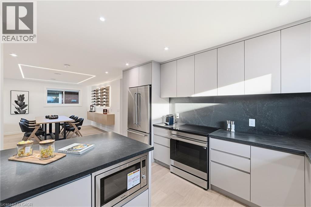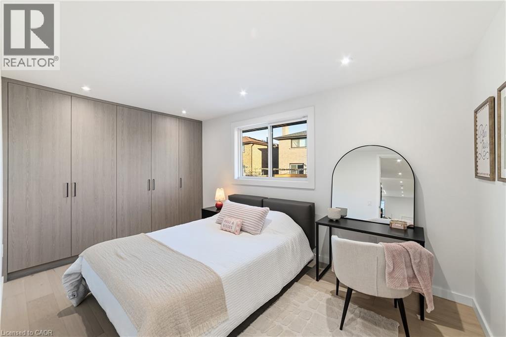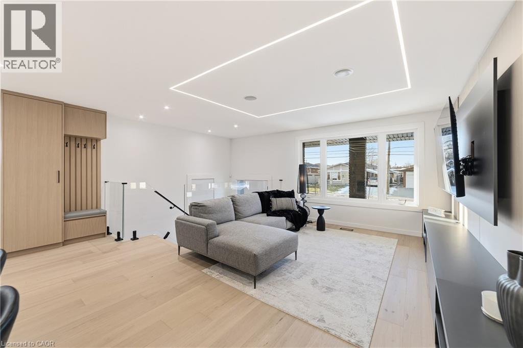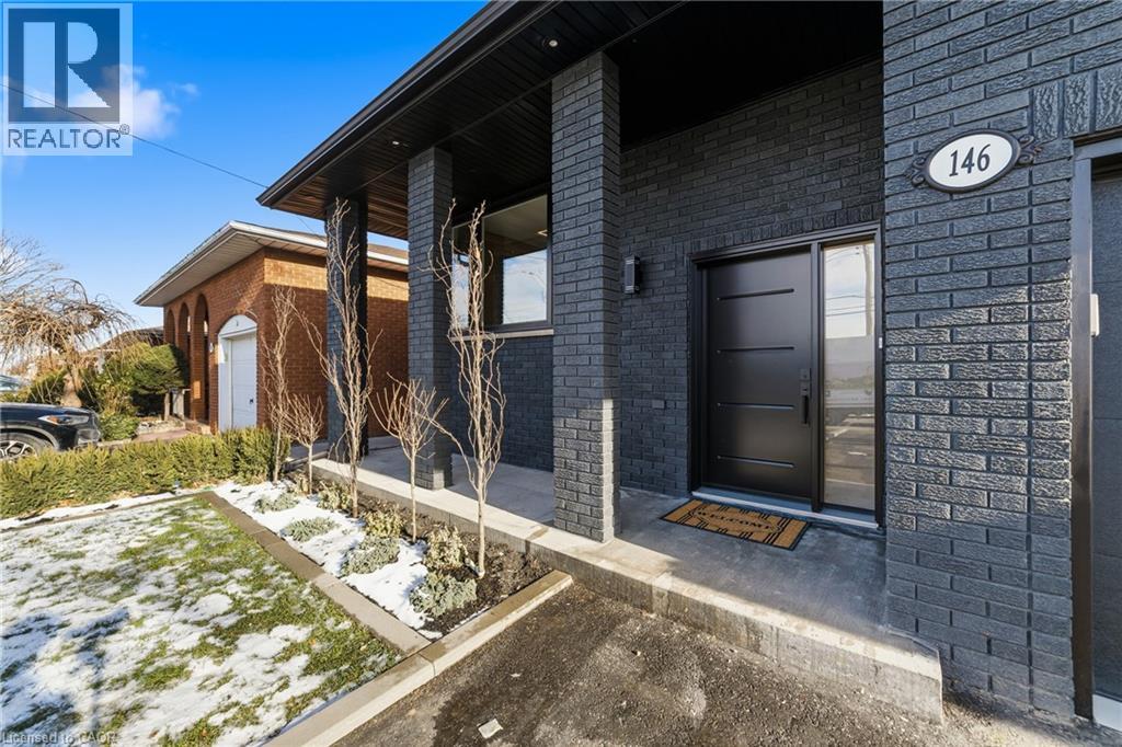 Not your typical bungalow - Rare modern transformation bungalow! Significant investment, hundreds of thousands spent into all updates & finishes, luxurious elegant open-concept living spaces. Premium custom upgrades throughout. New plumbing, electrical, drywall, roof, windows, doors, flooring, kitchens, baths, and much more. The flexible layout, just over 2400 SQ FT total, allows conversion into two potential independent suites, each with separate entrances, private laundry, and its own alarm security system - ideal for extended family or generating additional income. Designer kitchens showcase sleek cabinetry, high quality quartz counters, matching backsplash, and s/s appliances. Spa-inspired bathrooms feature smart heated toilets, frameless glass showers, and generous storage. Every detail stands out: solid-core doors, recessed linear LEDs, pot lighting, high-end millwork, spacious bedroom custom wardrobes with built-in drawer system, engineered hardwood, and bright above-grade lower-level windows. Even the garage has been transformed with new drywall, ceiling, tiled flooring, electric heating, hexagon LED lighting, a new door, and side access. Outside, enjoy beautiful curb appeal, a large backyard, lower walk-up access, new fence, extra-wide driveway, extra parking spaces, and exterior cameras. Steps to Eastgate Square Mall and minutes to Starsky Fine Foods, GO Station, QEW, and more. Must see in person. Watch the 3D Virtual Tour & book a visit! (id:51158)