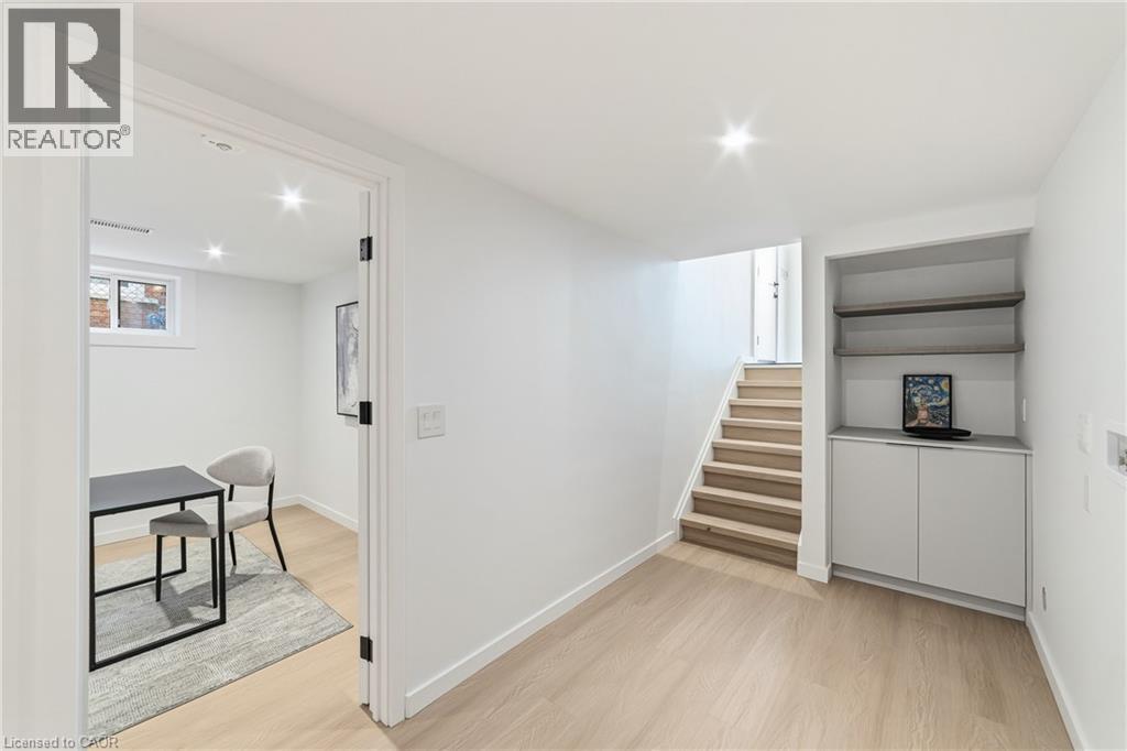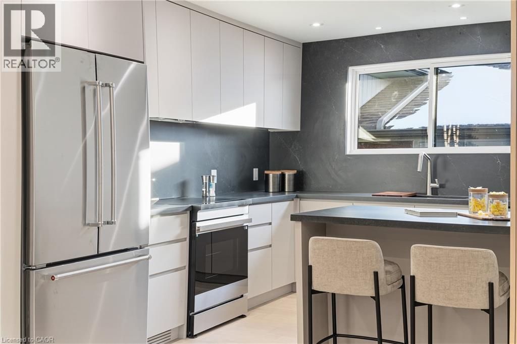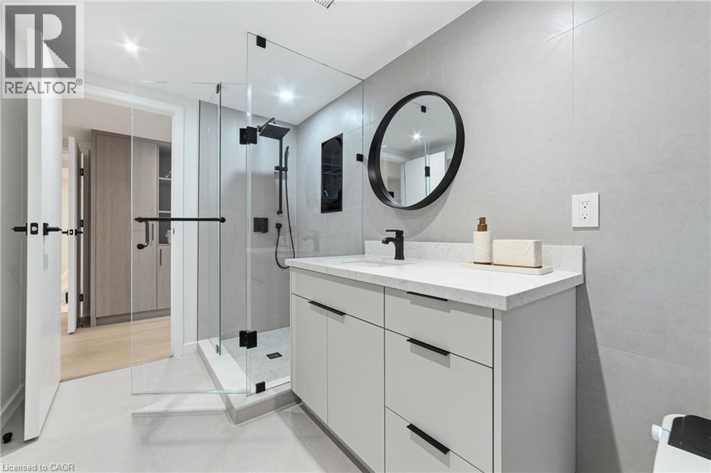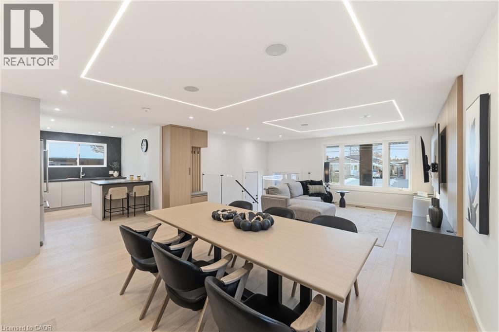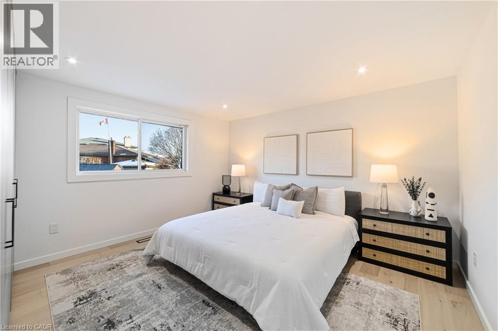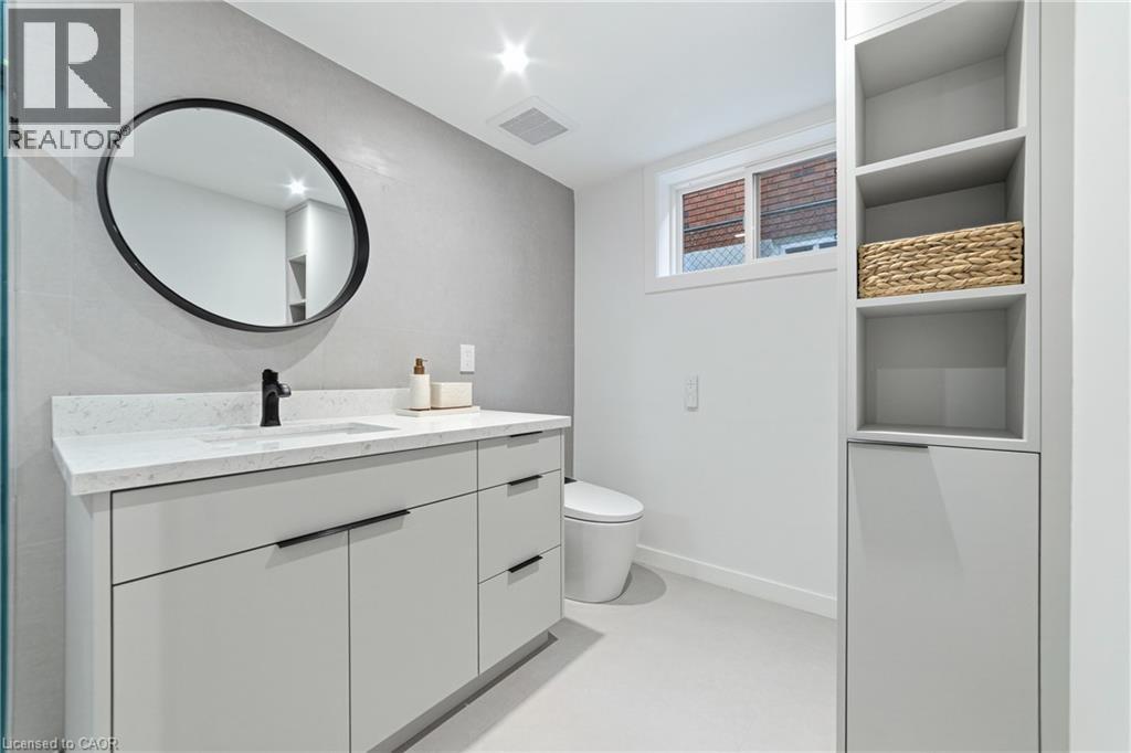Not your typical bungalow - Rare modern transformation bungalow! Significant investment, hundreds of thousands spent into all updates & finishes, luxurious elegant open-concept living spaces. Premium custom upgrades throughout. New plumbing, electrical, drywall, roof, windows, doors, flooring, kitchens, baths, and much more. The flexible layout, just over 2400 SQ FT total, allows conversion into two potential independent suites, each with separate entrances, private laundry, and its own alarm security system - ideal for extended family or generating additional income. Designer kitchens showcase sleek cabinetry, high quality quartz counters, matching backsplash, and s/s appliances. Spa-inspired bathrooms feature smart heated toilets, frameless glass showers, and generous storage. Every detail stands out: solid-core doors, recessed linear LEDs, pot lighting, high-end millwork, spacious bedroom custom wardrobes with built-in drawer system, engineered hardwood, and bright above-grade lower-level windows. Even the garage has been transformed with new drywall, ceiling, tiled flooring, electric heating, hexagon LED lighting, a new door, and side access. Outside, enjoy beautiful curb appeal, a large backyard, lower walk-up access, new fence, extra-wide driveway, extra parking spaces, and exterior cameras. Steps to Eastgate Square Mall and minutes to Starsky Fine Foods, GO Station, QEW, and more. Must see in person. Watch the 3D Virtual Tour & book a visit! (id:51158)