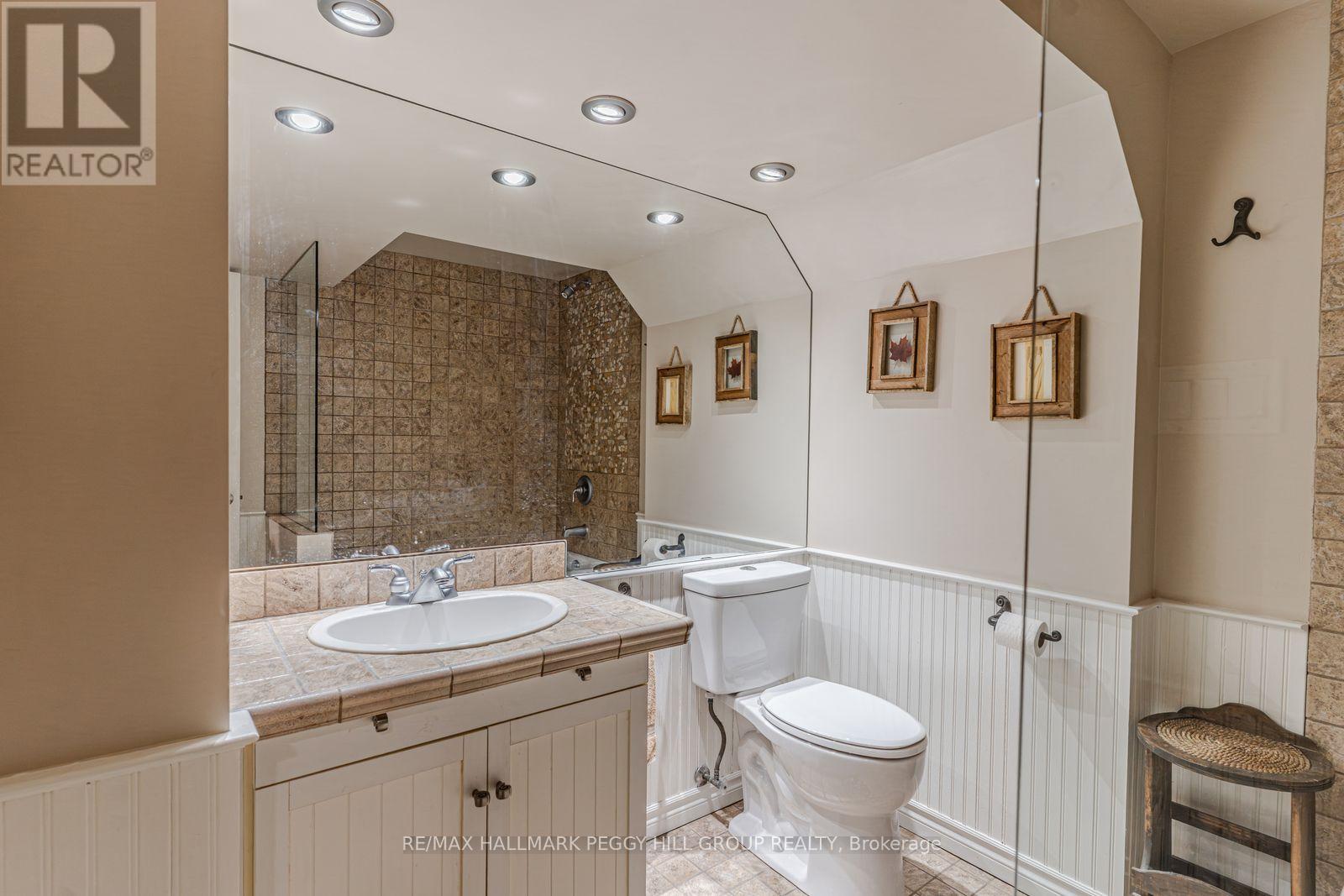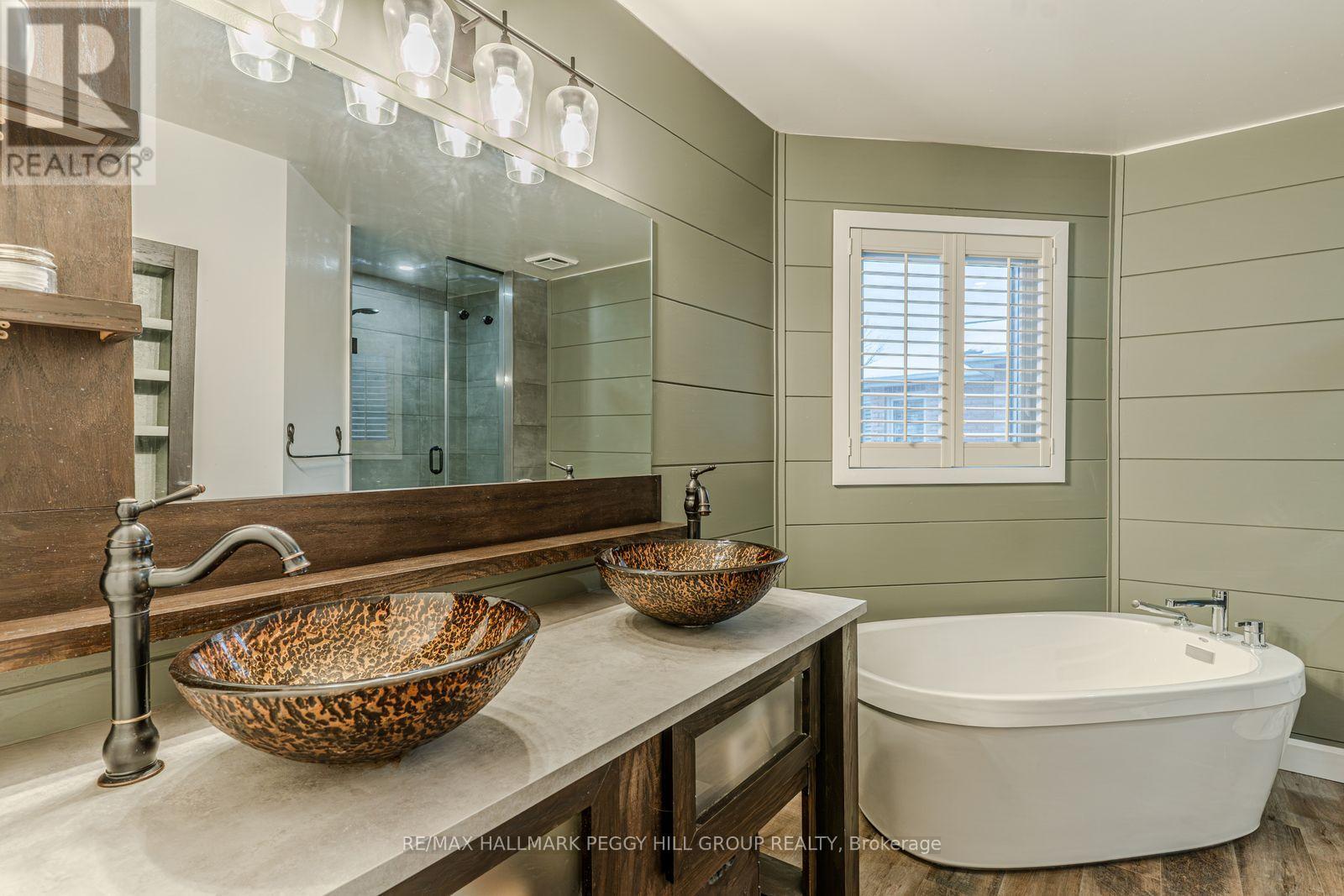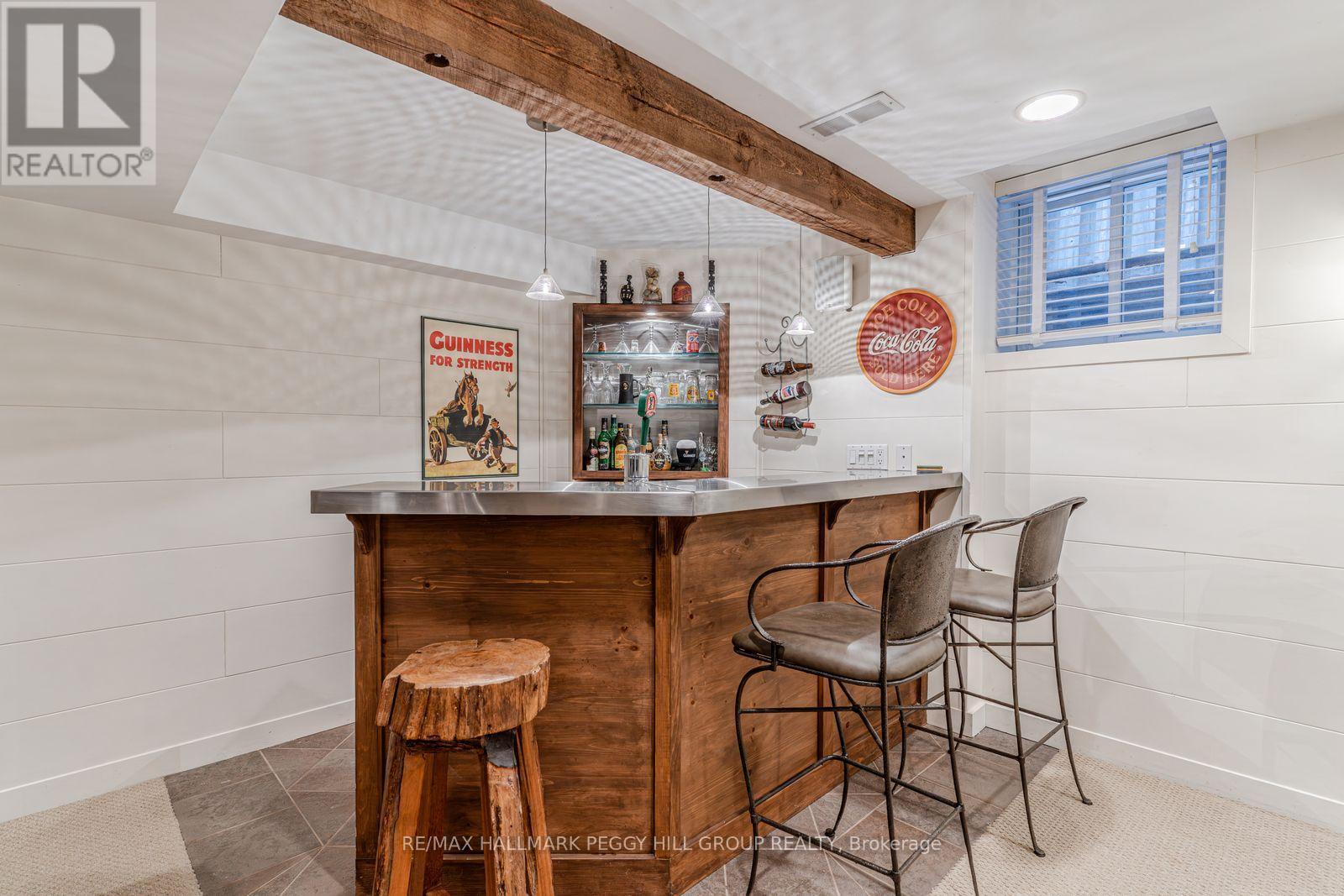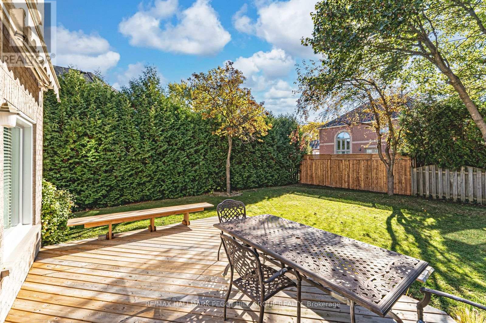 SPACIOUS FAMILY HOME WITH STANDOUT CURB APPEAL ON A PREMIUM LOT! 15 Charing Crescent is a Coscan-built, all-brick 2-storey set on a quiet crescent in Aurora Highlands, surrounded by established homes and a street that feels easy to come home to. An interlock walkway, stone detailing, black window trim and doors, and a covered front porch are complemented by an attached double-car garage and driveway parking for 4. Nearly 2,400 square feet above grade showcases soaring ceilings and oversized arched windows filling the great room and dining room with natural light. The well-equipped kitchen features white cabinetry, stainless steel appliances, an island, and a striking three-sided gas fireplace that connects the kitchen and family room and draws people together. Four upper-level bedrooms include a primary retreat with a walk-in closet and a spa-inspired 5-piece ensuite complete with a glass-walled shower, freestanding soaker tub, and dual vanity. The finished basement adds flexibility, featuring a recreation room with a bar, shiplap accents, a wood-burning fireplace, a 5th bedroom, a 4-piece bathroom, and plenty of storage. Outdoors, the fully fenced backyard is framed by mature trees and shrubs, with a deck featuring built-in benches and an awning that invites relaxed evenings and casual gatherings. Schools, parks, playgrounds, and public transit are within walking distance, while St. Andrew's College, Highway 400, and Highway 404 are under 15 minutes away. This is a #HomeToStay that quietly fits into your life and feels right long after the door closes behind you. (id:51158)