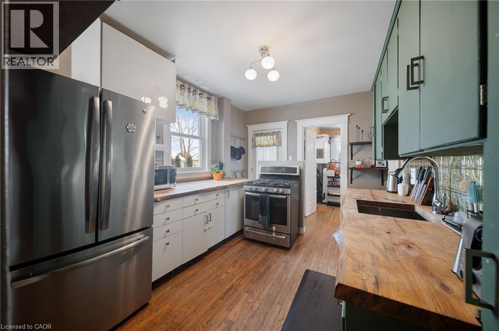 Discover timeless charm and modern comfort in this beautiful detached Victorian-style century home, nestled on a quiet, tree-lined street in Hagersville’s desirable north end. This 4-bedroom, 2-bathroom residence offers a perfect blend of character and convenience, featuring a mix of original and updated hardwood floors, rich wood trim, and warm architectural details throughout. The inviting kitchen boasts butcher block countertops, stainless steel appliances—including a gas stove—and direct access to the rear deck for easy outdoor dining. With a main-floor bedroom and laundry, the home provides excellent in-law potential. Upstairs, enjoy three generously sized bedrooms and a spacious 5-piece bathroom—ideal for families needing room to grow. Set on a deep 59 x 155 ft lot, this property delivers ample space for entertaining, gardening, or simply enjoying the outdoors. A detached shop/garage at the end of the long driveway accommodates at least five vehicles, with a convenient second door offering direct backyard access. This is a rare opportunity to own a lovingly maintained heritage home with modern upgrades, abundant space, and unbeatable charm. Don’t miss your chance to make this stunning property yours—homes like this don’t come along often! (id:51158)