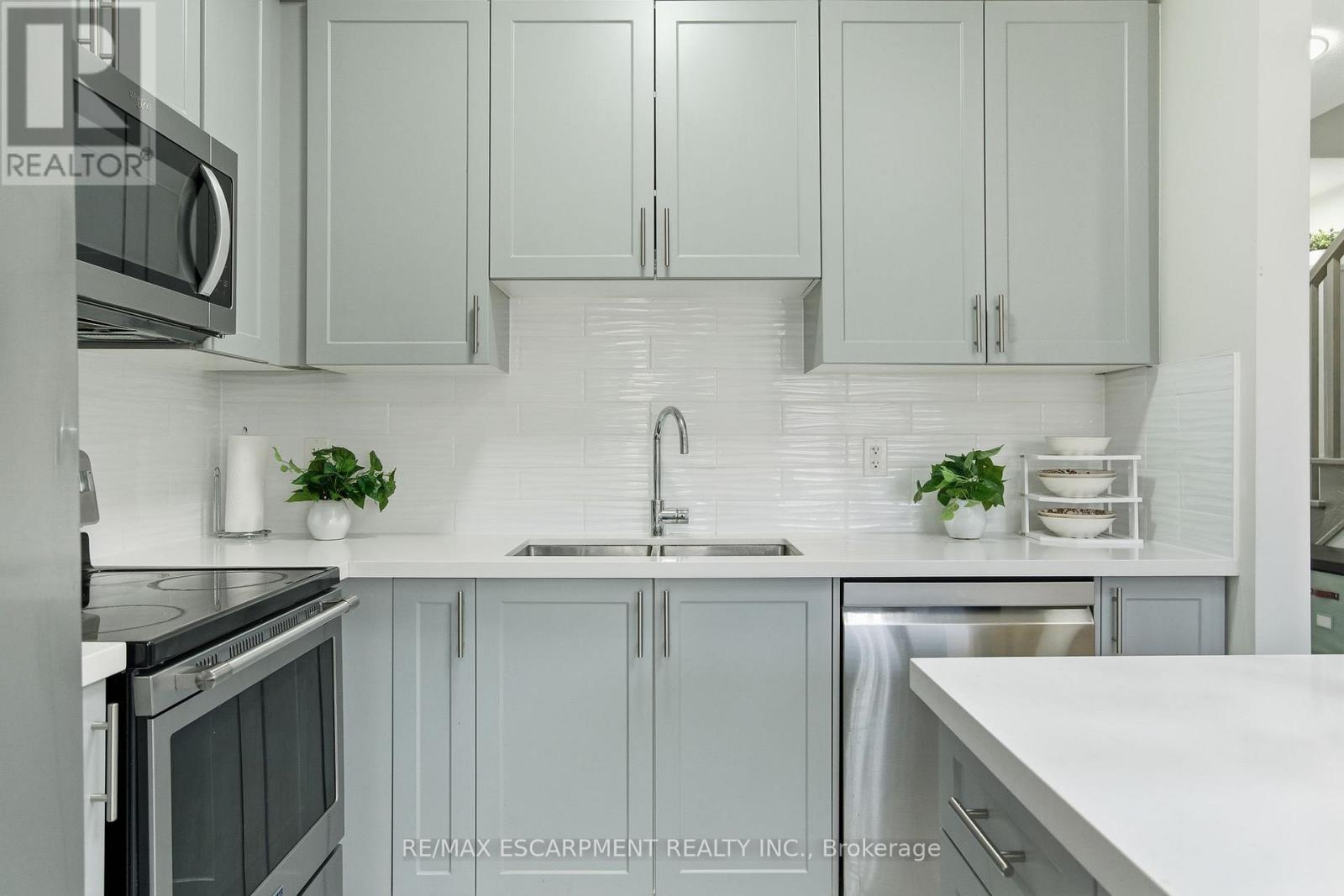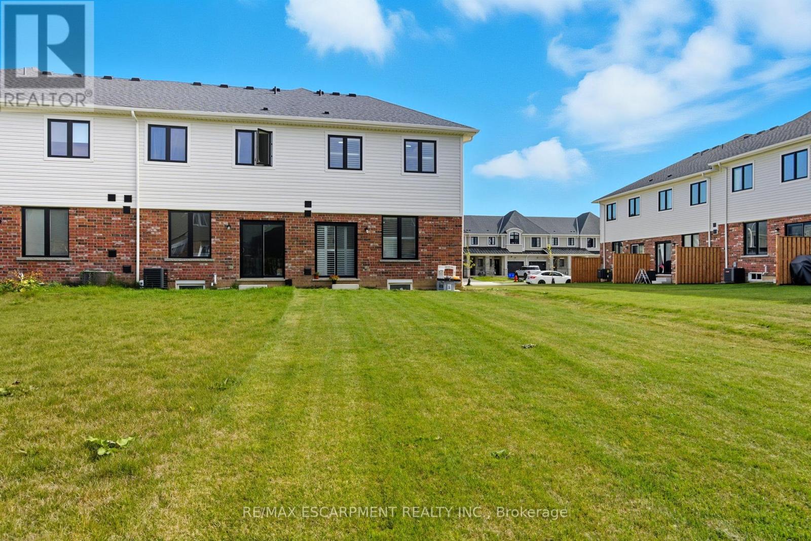 Discover modern living in this stunning two-storey end-unit townhome, built in 2023 and loaded with upgrades. Situated on a premium 133' deep lot, this home offers exceptional space and style, starting with an open-concept main level featuring durable vinyl flooring, a beautifully upgraded kitchen with quartz countertops, island, stainless steel appliances and a sleek backsplash. Elegant hardwood stairs lead to the upper level, where you'll find three spacious bedrooms, including a luxurious primary suite complete with an upgraded en-suite, featuring a freestanding tub and glass shower. The fully finished basement extends your living space with a bright rec room, a versatile fourth bedroom or office and a full three-piece bathroom. Ideally located with shopping, restaurants, parks, schools, public transit and highway access all just steps away, this home combines comfort, style and convenience-perfect for families and professionals alike. RSA. (id:51158)