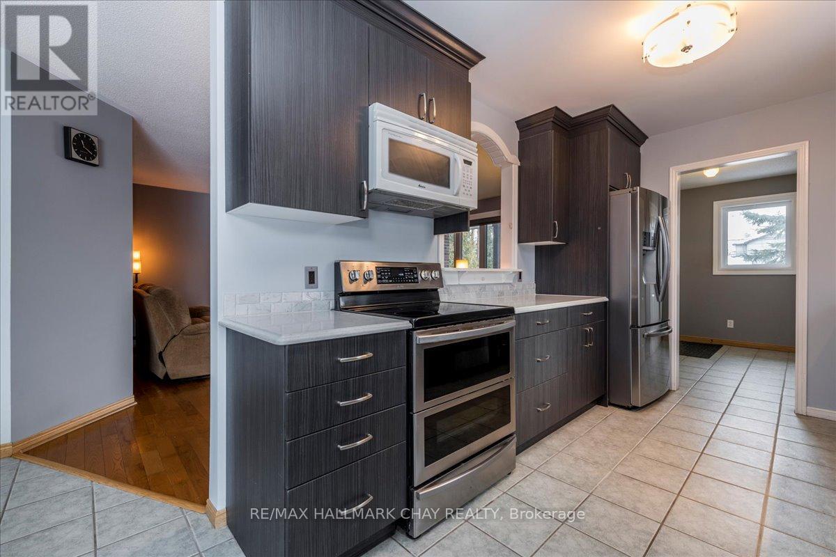 Stunning Lakeside Bungalow With Drive-Thru Garage & Insulated Workshop! Welcome to this beautifully maintained 3-bedroom, 2-full-bath bungalow, ideally set on a picturesque 60' x 240' park-like lot in a sought-after Alcona neighbourhood. A rare offering, the double garage features a drive-thru with a 10' x 8' rear door leading to a detached 23' x 21' insulated workshop-perfect for hobbyists, contractors, or storing all your toys. Inside, enjoy a modern and stylish kitchen with stone countertops and stainless steel appliances, seamlessly flowing into a large formal dining room-ideal for entertaining. The huge living room showcases gleaming hardwood floors and an oversized window with views of the beautifully landscaped front yard. The private primary suite offers a full ensuite bathroom and walk-in closet. Two additional spacious bedrooms provide flexibility, with one featuring double garden doors and a walkout to the expansive back deck-perfect for a home office or guest room. A lovely main bath with front-load laundry completes the main level. KEY UPDATES & FEATURES: Updated windows (2020). 7-car Uni-Stone driveway. Hardwood & ceramic flooring. Large foyer with double closets. Cozy covered front porch. Massive backyard with fire-pit area. Tons of storage and parking. Located close to schools, parks, shopping, and all amenities-and just minutes to the sparkling shores of Lake Simcoe-this exceptional property offers lifestyle, space, and versatility in one unbeatable package. (id:51158)