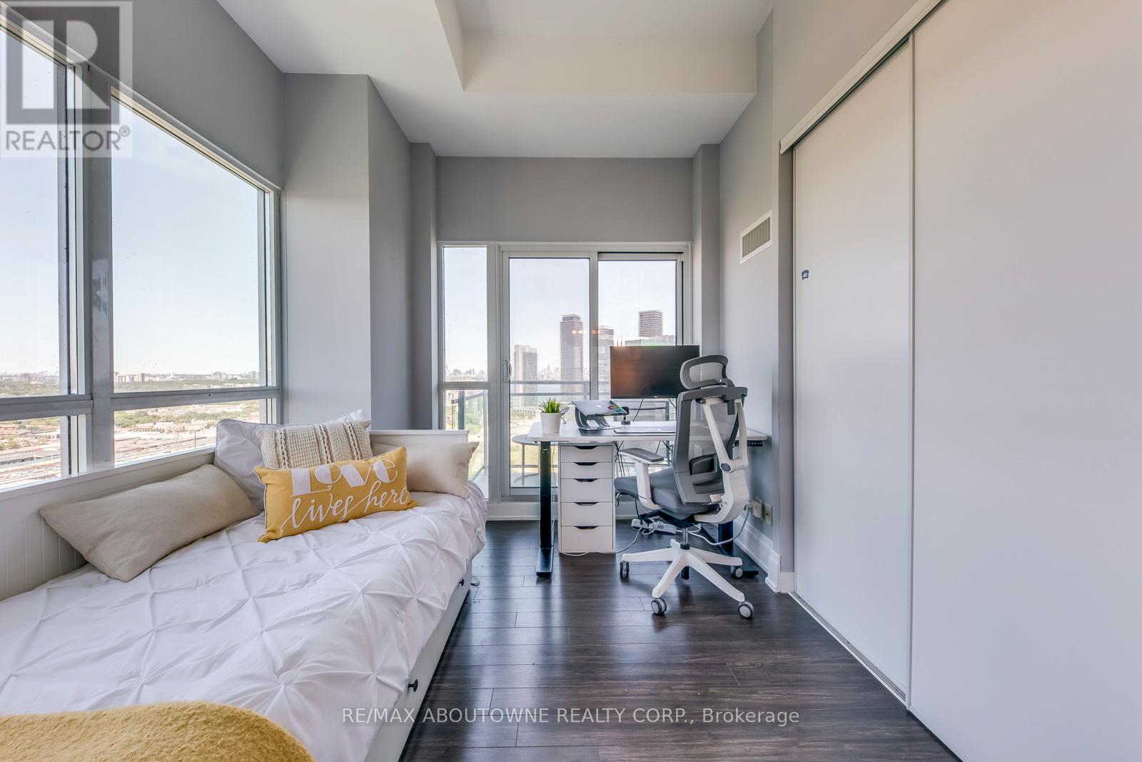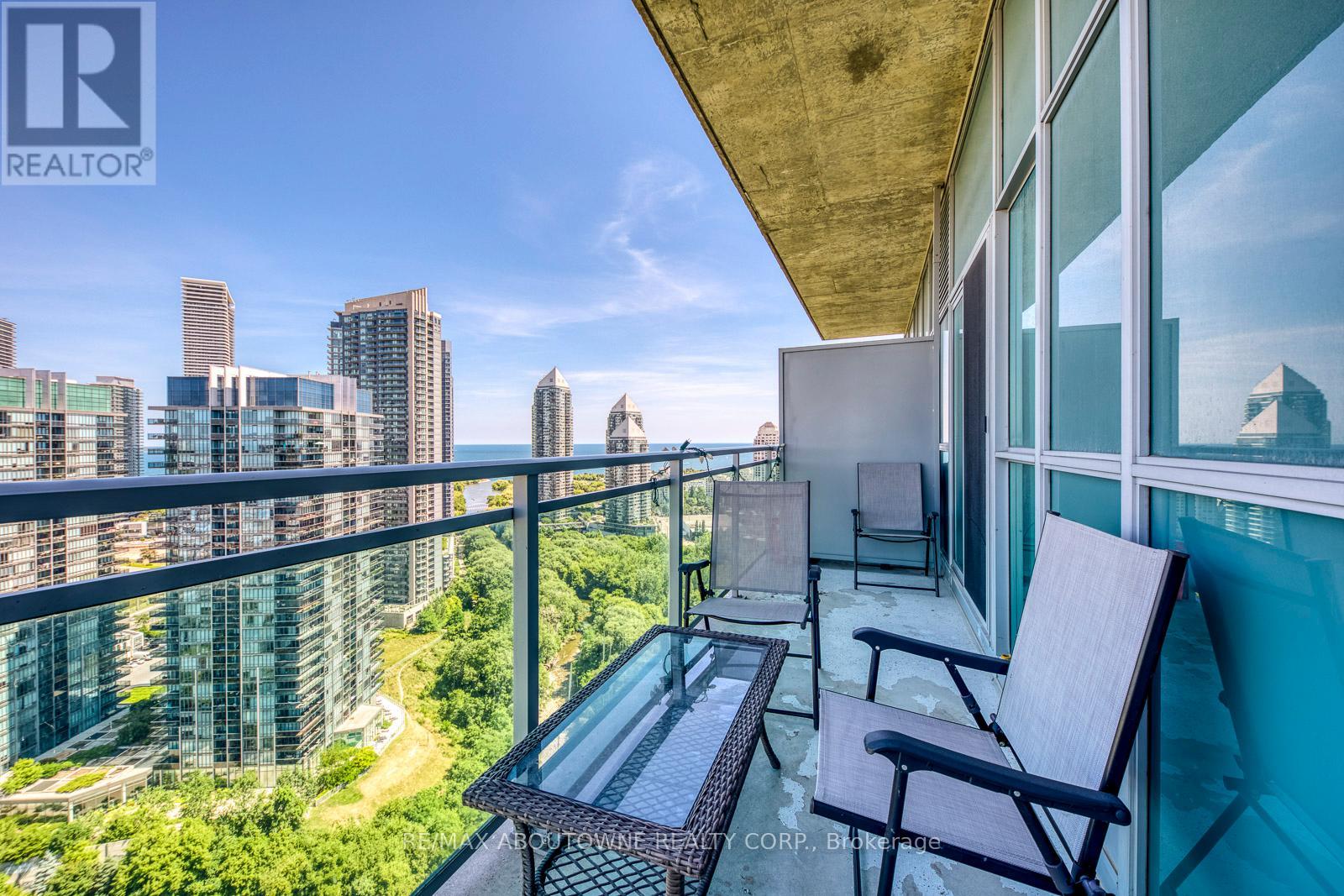 Stylish Corner Suite with City & Lake Views in Prime Mimico. This beautifully appointed 2-bedroom, 2-bathroom corner suite offers luxurious living in one of Mimicos most desirable condo communities. With approximately 800 square feet of thoughtfully designed space, this sun-filled unit boasts sweeping views of both the city skyline and Lake Ontario. Soaring 9-foot ceilings and expansive windows flood the open-concept living and dining area with natural light, while a modern stone feature wall with electric fireplace adds warmth and character. The contemporary kitchen features quartz countertops, stainless steel appliances, a sleek range hood, pot lights, and ample cabinetry perfect for both everyday cooking and entertaining. Enjoy two walkouts to a large private balcony where you can relax with morning coffee or take in the evening sunsets. The smart split-bedroom layout ensures privacy, making it ideal for professionals, small families, or shared living. The primary suite includes a walk-in closet with custom built-in organizers and a private ensuite with glass shower. A second full bathroom with tub offers added functionality and style. Extras include 1 underground parking space and locker. Residents have access to premium amenities including indoor and outdoor pools, a full gym, sauna, theatre room, BBQ terrace, party room, and 24-hour concierge. Unbeatable location with easy access to the QEW, Mimico GO Station, TTC, shopping, lakeside trails, and downtown Toronto. Turnkey and move-in ready, this is your chance to live or invest in one of Torontos fastest-growing waterfront neighbourhoods. (id:51158)