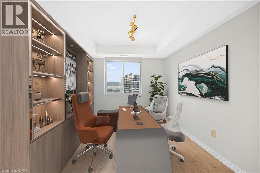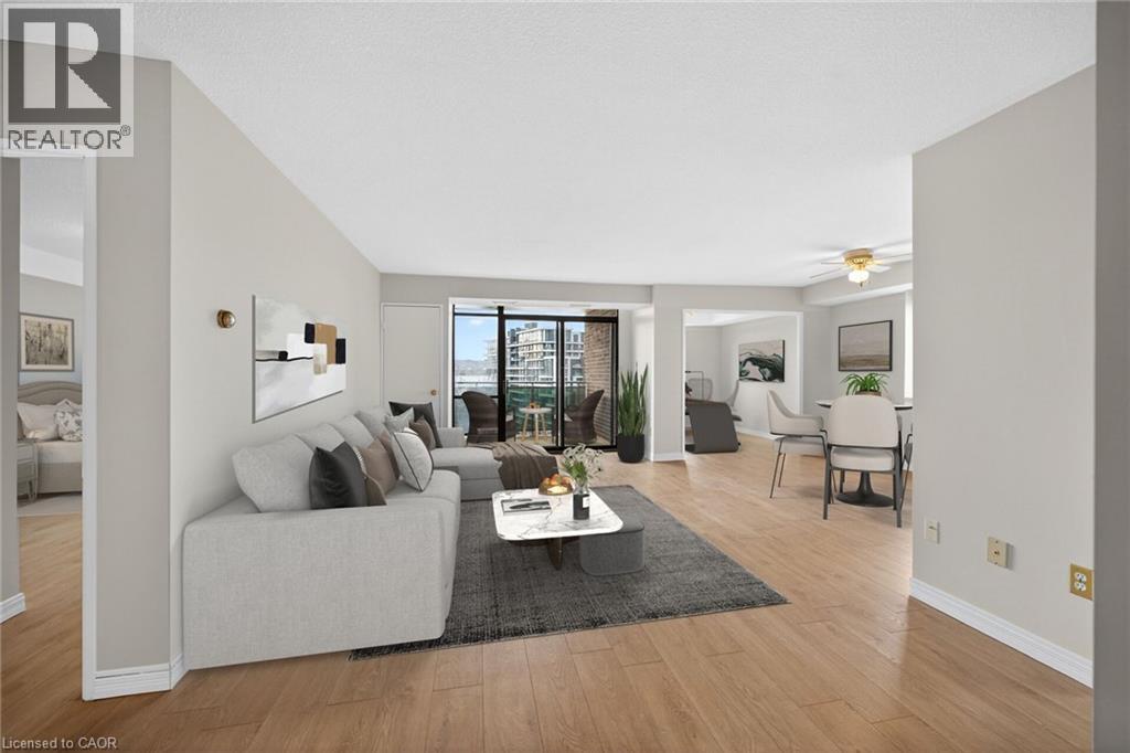 $931 MonthlyWelcome to the Bayliner, a HIGHLY desirable building within steps to the Lake, Beach and Waterfront Trail. This large 890sqft 1 Bedroom plus Den CORNER SUITE is South-West facing w/ lots of natural sunlight, large balcony, panoramic views of the Escarpment, Burlington Skyline and gorgeous SUNSETS. Freshly Painted in neutral colors from Top to Bottom and newer upgraded laminate flooring. Condo fee includes Heat, Hydro, Water, A/C, Cable, Internet, Exterior Maintenance and Visitors Parking. Building Amenities include Car Wash, Outdoor Pool, Sauna, Exercise Rm, Games Rm, Party Rm, Community BBQ, Library and Workshop. Features In-suite laundry, Underground parking and Locker! Very close to all Amenities, COSTCO, Parks and Conservation Area. ** Buyer will get Certificate for The Brick to receive Contractor Pricing on Appliances, Electronics and Home furnishings** (id:51158)