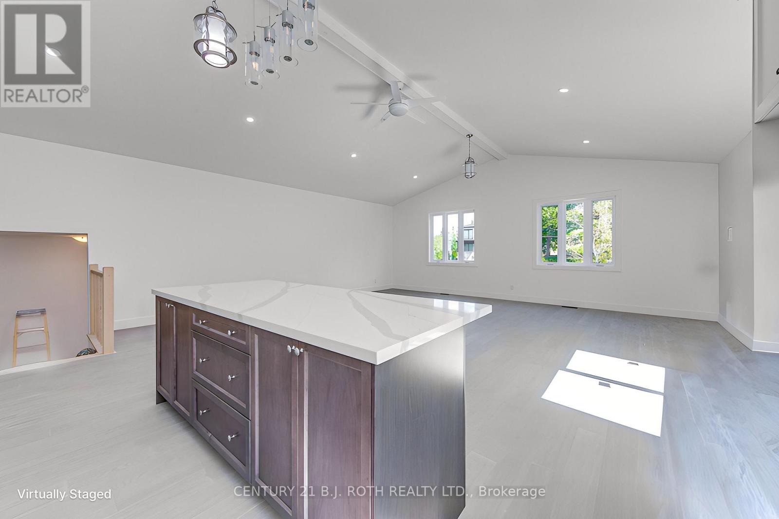 Beautiful *custom raised bungalow* on a treed 60 x 270 ft lot with no neighbours behind, just a short walk to the sandy shores of Lake Simcoe and an area beach. Located in a sought-after Innisfil neighbourhood close to Friday Harbour and only minutes to shopping, restaurants, and amenities in Barrie. This approx. 2600 sq.ft. finished raised bungalow offers a bright open concept great room overlooking the kitchen, creating an ideal flow for everyday living and entertaining. The custom kitchen features quartz countertops, a large island, and a walk-in style pantry with a barn door, providing excellent storage and a stylish focal point. White oak engineered hardwood flooring runs throughout both the main and lower levels, adding a warm, upscale feel. The home is designed with 2 bedrooms on the main level and 2 additional bedrooms on the lower level, along with 3 bathrooms to comfortably accommodate family and guests. A large family room in the basement is anchored by a cozy gas fireplace, making it a perfect space for movie nights or relaxation. The finished custom laundry room with quartz counter offers a practical and attractive work area for household tasks. A large deck measuring 16 x 10' off the primary bedroom extends the living space outdoors and overlooks the private, treed backyard, making it an inviting spot for morning coffee or relaxing in the evening. The deep 60 x 270 ft lot with no rear neighbours provides excellent privacy and room to garden, play, or create a future outdoor living area. Flexible closing is available, and there is still time to choose some **finishes**, allowing the buyer to add personal touches and make the home truly their own. Efficient ICF Foundation. (id:51158)