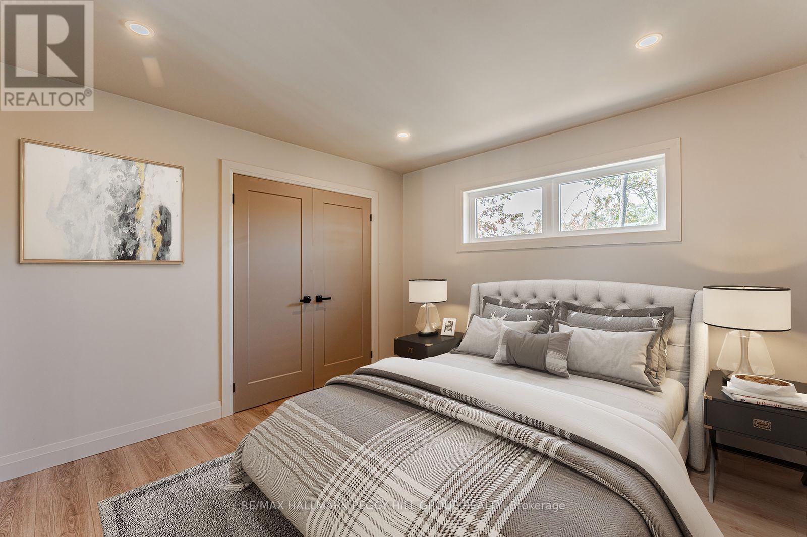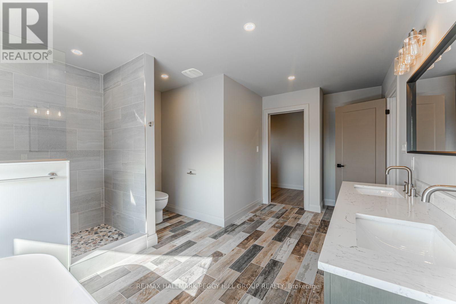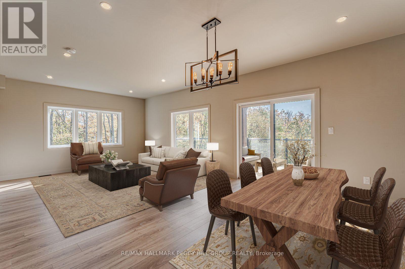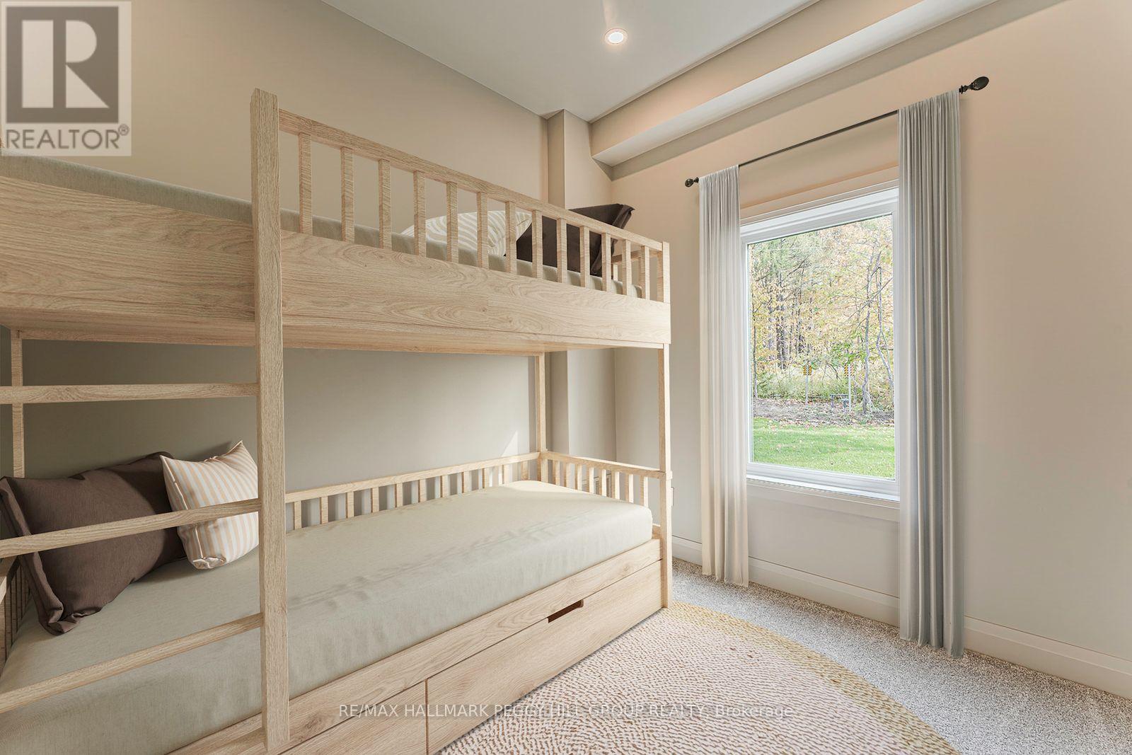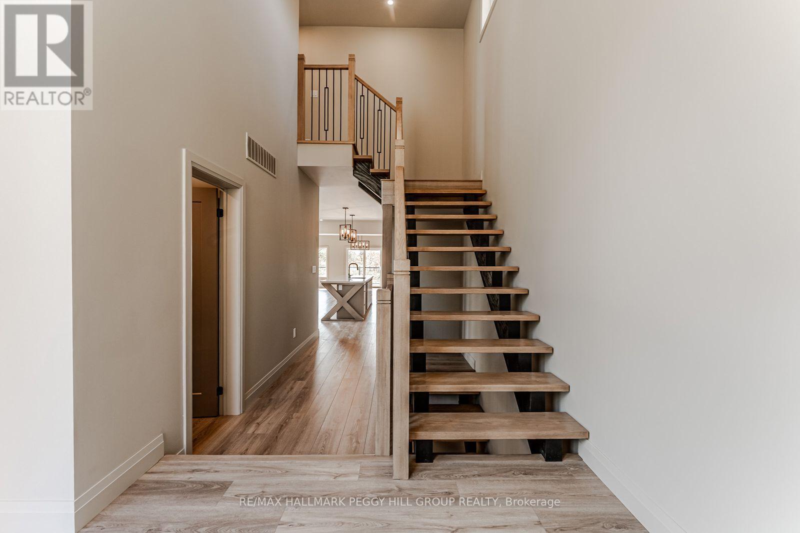 2024-BUILT 4,200+ SQ FT CHALET-STYLE RESIDENCE MEETS FOUR-SEASON ADVENTURE IN HORSESHOE VALLEY! Indulge in the artistry of modern design at this custom-built 2024 home in Horseshoe Valley, capturing panoramic western views and sunsets from its commanding hilltop setting. Boasting over 4,200 sq ft of above-grade living space, this modern chalet showcases striking black Hardie Board siding, stone facade accents, a fibreglass roof, and multiple glass-railed decks designed to celebrate the surrounding scenery. The open-concept main level is ideal for entertaining, highlighted by a 24-ft vaulted ceiling, floor-to-ceiling windows, and a double-sided Napoleon fireplace connecting the great room to the dining/family areas. The gourmet kitchen features Caesarstone quartz countertops, custom two-tone cabinetry, a dramatic X-leg island, a chevron tile backsplash, a pantry, and modern lighting, all flowing to a dining area with built-in shelving and a walkout. A private main-floor office provides a peaceful workspace, while the third level hosts the luxurious primary suite with its own fireplace, balcony, walk-in closet, and spa-inspired ensuite with a freestanding tub, double vanity, and glass shower, along with two additional bedrooms, a full bathroom, and a laundry room. The ground level extends the home's versatility with 9'9" ceilings, a bright rec room, an additional bedroom, and a full bathroom. Engineered hardwood, ceramic tile finishes, and meticulous craftsmanship are complemented by superior construction featuring an ICF foundation, LVL beams, and double-studded 2x6 walls. Within walking or golf cart distance to Horseshoe Resort, The Valley Club, tennis courts, and scenic trails, and just minutes to Vetta Nordic Spa, Copeland Forest, Lake Horseshoe, local dining, and Highway 400, this exceptional home is also near a new school, community centre, clinic, and fire station, defining sophisticated four-season living in one of Ontario's most prestigious destinations. (id:51158)