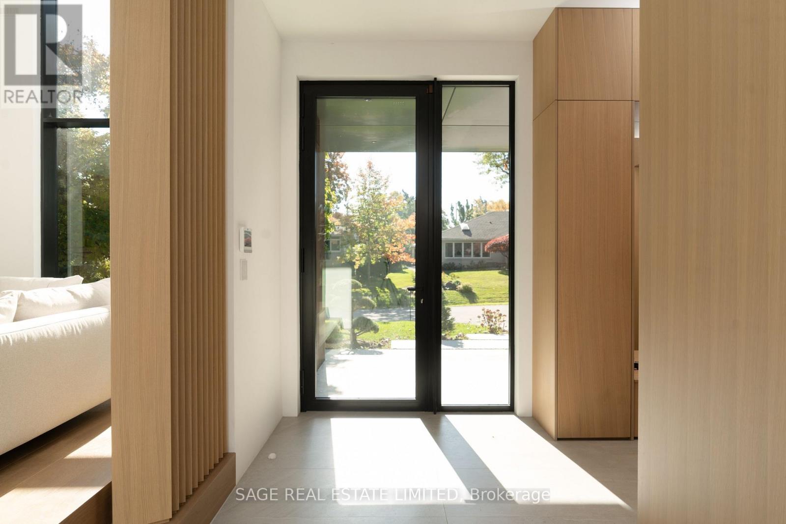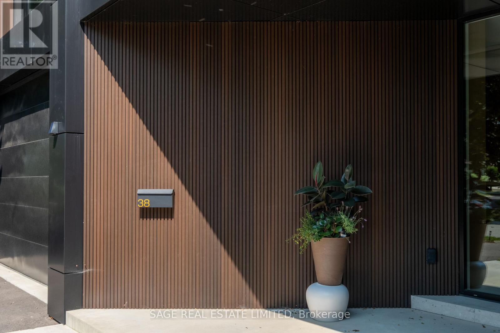A gentle fusion of Scandinavian and Japanese design, The Emperor sits proudly in Toronto's charming Princess Anne Manor neighbourhood. This detached custom build is an architectural wonder of the west end with smooth finishes, oak floors and panelling, plunging sight lines and cascading sunlight. Hidden doors reveal themselves at your fingertips to unassuming ensuite bathrooms dressed in creams and stone or covert closets with abundant storage - its invisible lines maintain minimalism at the forefront of its demure design. Dramatic floor-to-ceiling windows rise 21 feet high in the main living, wide open to a generously sized dining room and bright kitchen with an exceptional breakfast island and concealed coffee nook. Fluting and custom millwork anchors the front entrance and frames the tv, complimenting the microcement finished gas fireplace. A constellation of soft lights quietly illuminates the home, a spectacle when the sun goes down, while its tobacco coloured facade stretches across the 76 foot wide lot and leads to an inground saltwater pool at the rear. Beneath century old canopy trees, around slow swooping roads, this one-of-a-kind modern build is two minutes from St George's Golf & Country Club & only ten minutes to Pearson Airport. Over 5000 total square feet, your choice of two primary bedrooms and multiple flex spaces on the top floor with the option to convert them to extra bedrooms - executives, creatives, gamers, podcasters, families and fitness enthusiasts will find limitless potential and a whole new meaning to going home at 38 Ravensbourne. (id:51158)