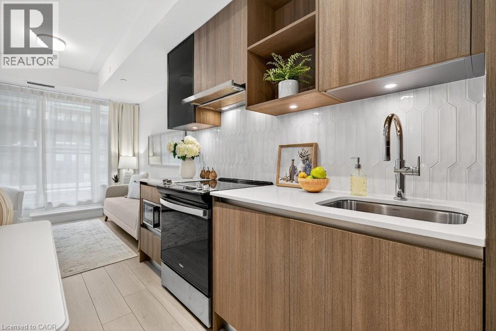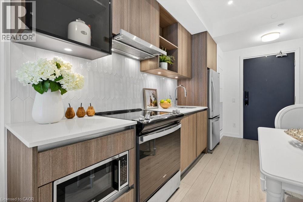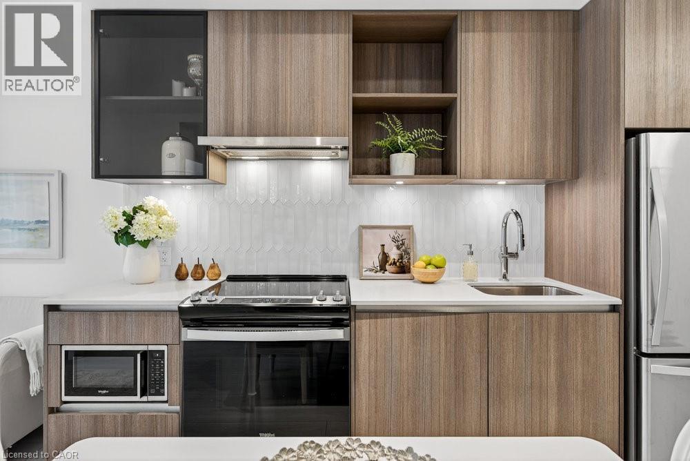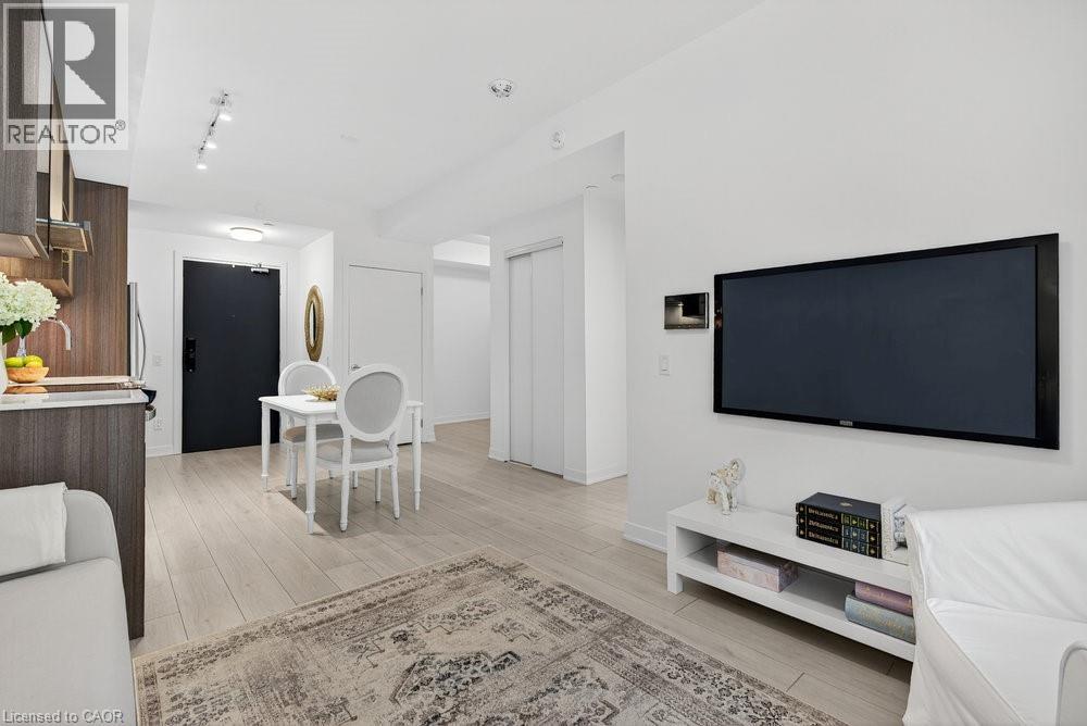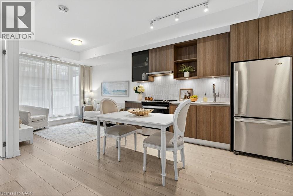 $496.38 MonthlyDiscover upscale living at Distrikt Trailside with this stylish 1+den suite offering 595 sq ft of bright, open-concept space in coveted North Oakville. Designed for modern living featuring vinyl flooring, high-end finishes & a European-inspired kitchen with stainless steel appliances, sleek cabinetry & under-cabinet lighting. The versatile den is ideal for a home office, study or creative space, while the freshly painted interior adds a clean, move-in-ready touch. Enjoy 1 underground parking space plus resort-style amenities including a full-size gym, party & games rooms, rooftop terrace with BBQs, pet wash station & 24-hr concierge. Perfectly located steps to grocery stores, coffee shops, sports facilities, schools & restaurants, with seamless access to Hwy 403/407 & the GO. A rare opportunity for buyers seeking comfort, convenience & a vibrant Oakville lifestyle. (id:51158)