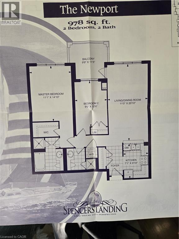 Highly sought after 978 square feet two bedroom, two bathroom condo in Spencers Landing. Located across from Spencer Smith Park and the Lake. The second bedroom comes equiped with a hide away Murphy Bed,hardwood floors,five appliances and easy access to the 9.9ft x11.5 balcony.The storage locker is conveniently located steps away from the underground parking space.Amazing ammenities include an indoor pool,sauna,well equiped ground level exercise room,overnight guest suite and party and games room.The front desk concierge provides access and security for the owners and their guests. Immediate possession Call for an appointment to view. (id:51158)