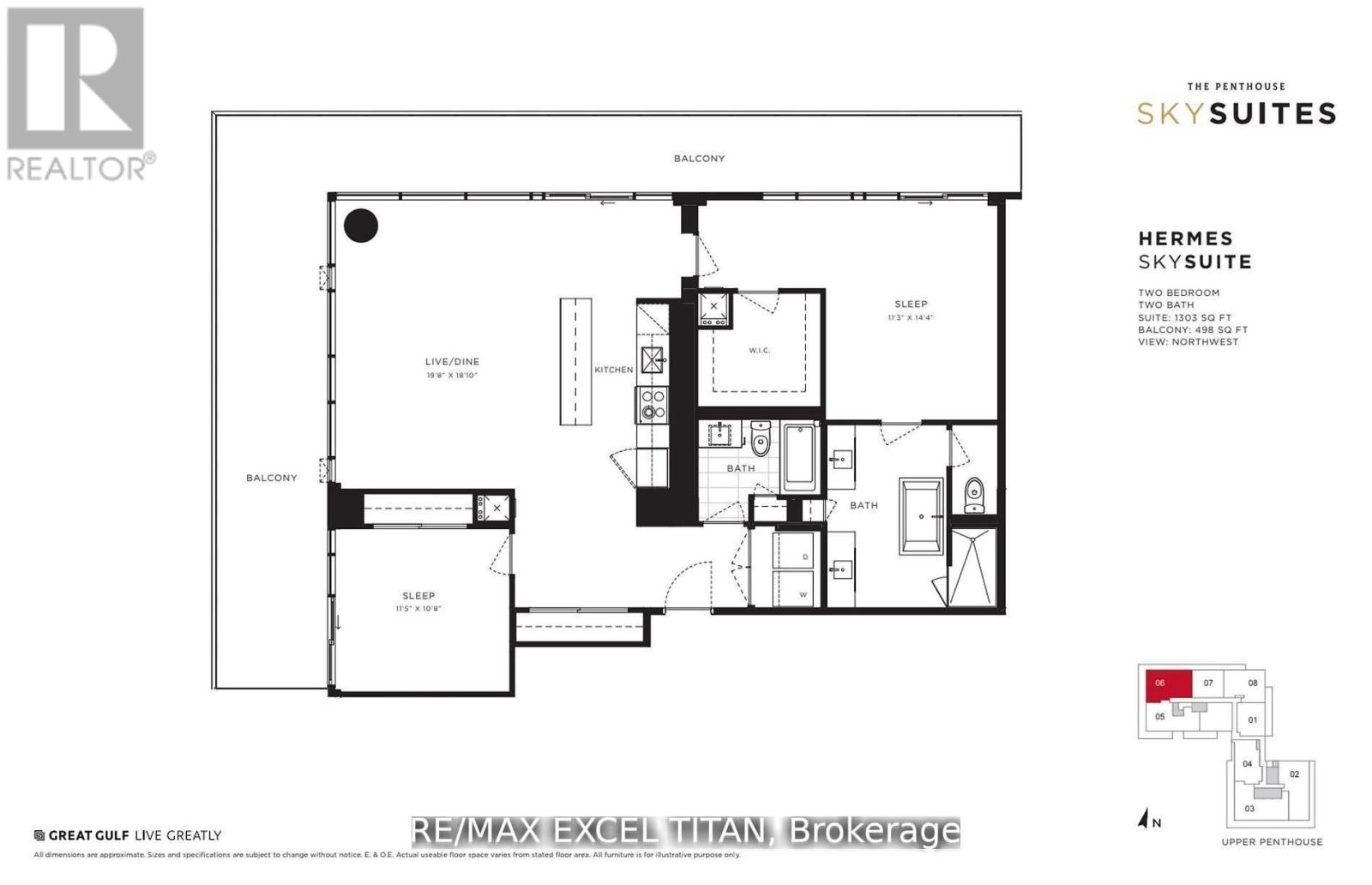 $1,500.81 MonthlyLuxurious 1303 Sq Ft, 2-Bedroom, 2-Bathroom Penthouse Suite in the Coveted Yonge + Rich Community! This corner unit features an amazing Living area with floor-to-ceiling windows and soaring ceilings, leading to a spacious 498 sq ft wraparound balcony that offers breathtaking skyline views. Live in luxury high above the city! The huge primary bedroom includes a walk-in closet and a 5-piece master ensuite, also with floor-to-ceiling windows and access to the balcony. The Gourmet kitchen and dining area are equipped with high-end gas appliances, Quartz Countertop. The suite is fully finished with elegant matte black hardware and boasts 10-foot ceilings throughout. 2nd bedroom also includes Built in closet and window with breat taking views. Private lobby and dedicated 3 elevators for top 13 floors no more long waits like every other building along with private amenities on the last floor with dedicated pool, and access to the regular ones on the 5th floor, a built-in closet, and stunning skyline views. 2 Parking and 1 Locker are included. Don't miss your chance to call this exceptional penthouse your home! (id:51158)