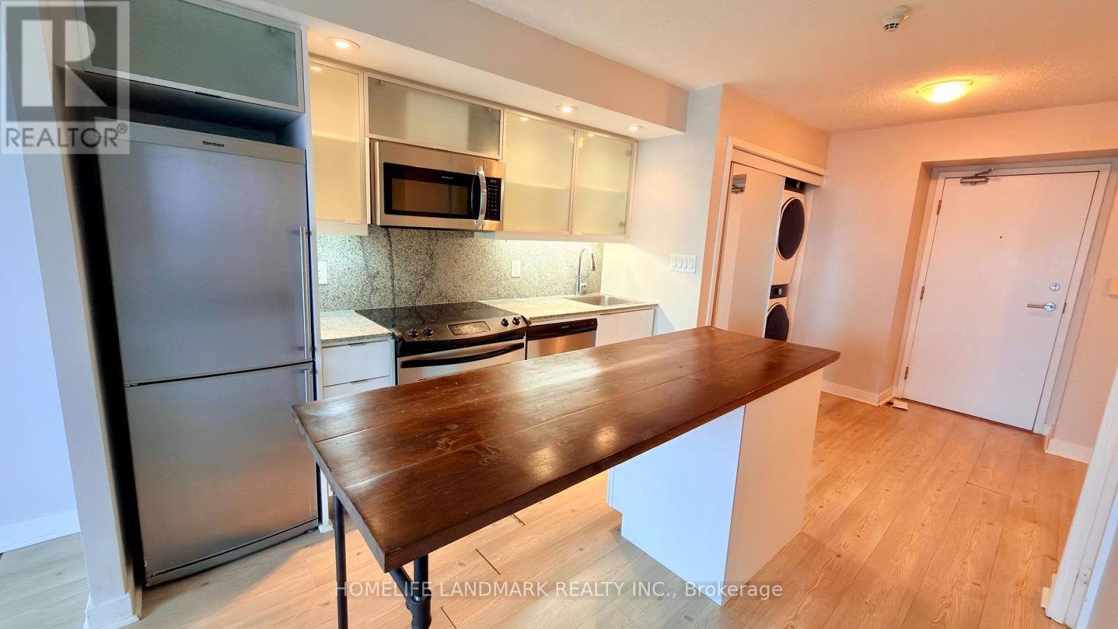 High Floor South West Facing With Nice Lake and City View 1 Bedroom +Den at Montage LE Building, Express Elevators to High Floor! Newly Renovated Lobby & Hallway. Well Kept Unit, S.S. Appliances, New Fridge, New Washer & Dryer. Woodtop Kitchen Island Included. Bedroom Carpet Is Going to Be Changed to Wood Floorings. Two Big Supermarkets Nearby, Park, Schools, Banks. Steps To The Ttc, Rogers Centre, Cn Tower, Waterfront, Financial & Entertainment District. Easy Highway Access. Amazing Amenities Included Indoor Pool, Gym, Hot Tub, Party Room, Meeting Room, Guest Suites, etc. Incl. (id:51158)