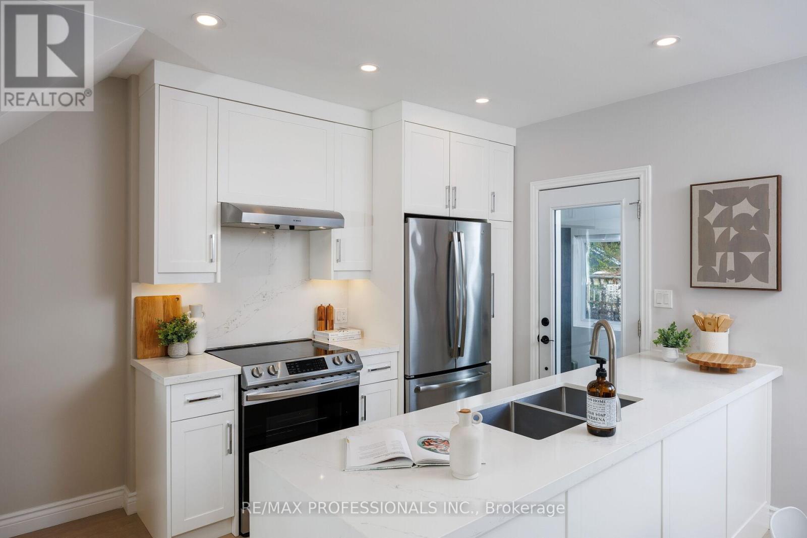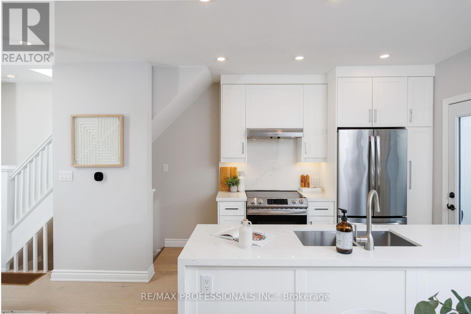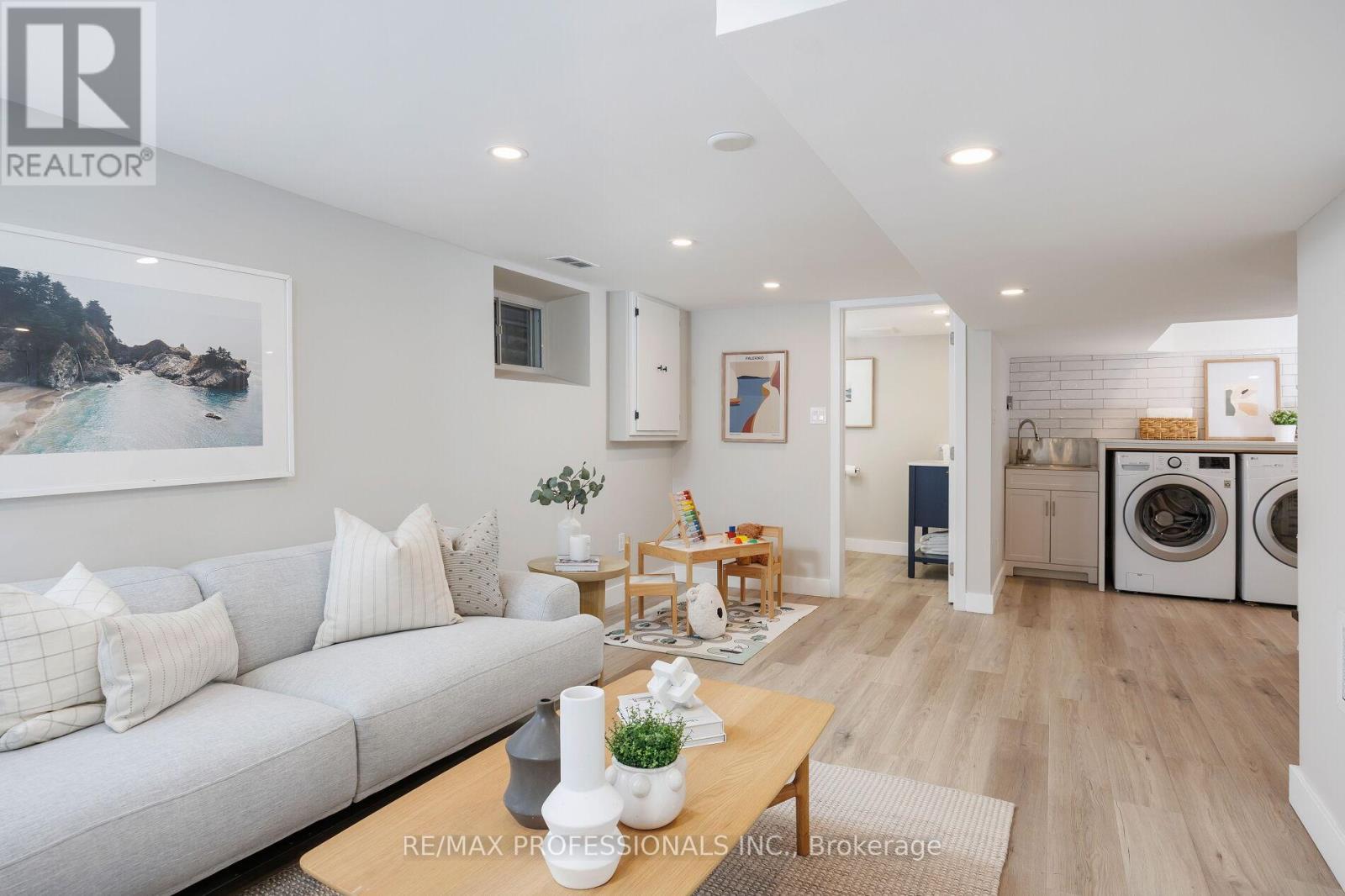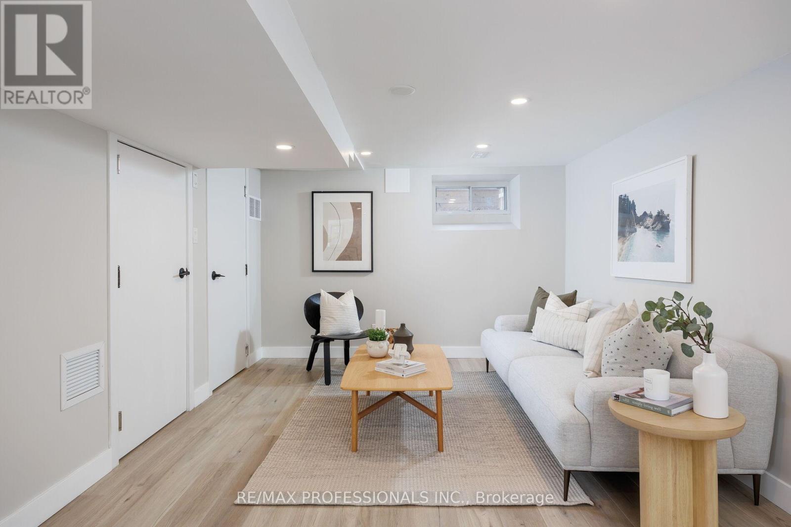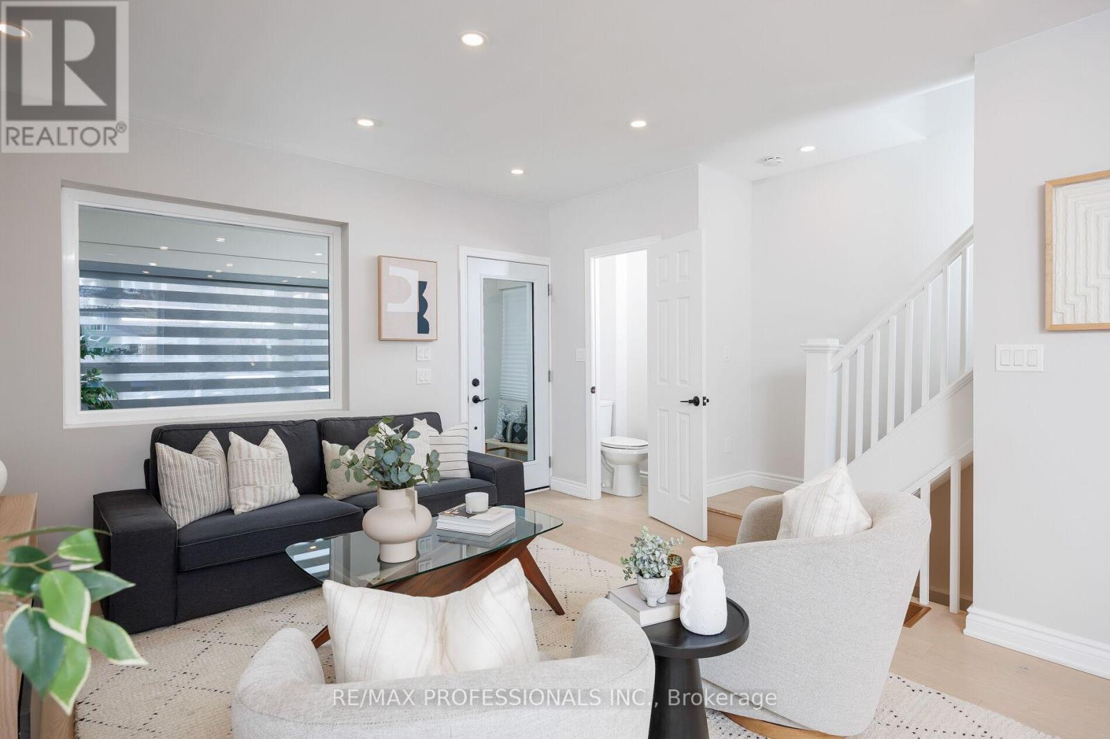 Discover this thoughtfully designed, turnkey home in the coveted Bloor West community. Plenty of natural light, the open-concept layout is perfectly suited for both family gatherings and entertaining guests. The designer eat-in kitchen is a features elegant quartz countertops, high-end appliances, and a generous pantry for your storage needs. Relax in the cozy family room, complete with a striking feature wall. Enjoy the convenience of a rare main floor powder room.Venture upstairs to find three spacious bedrooms, including a luxurious primary suite with double closets. Spa-like bathroom equipped with a large soaking tub, perfect for unwinding after a long day. The fully finished, open concept basement offers good ceiling height and additional living space, complete with laundry and stylish three-piece bathroom. Step outside to a landscaped and fenced backyard featuring a newer deck, perfect for summer evenings and entertaining. Generous parking for two cars. Located in highly desirable school districts. Enjoy all the neighbourhood amenities- including quick walk to TTC & family friendly parks. (id:51158)
