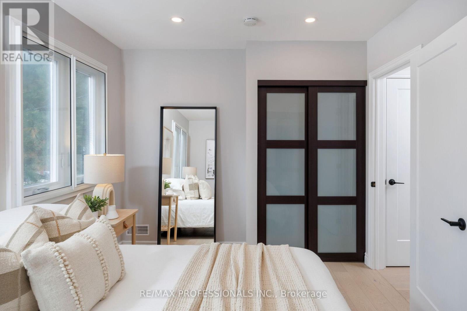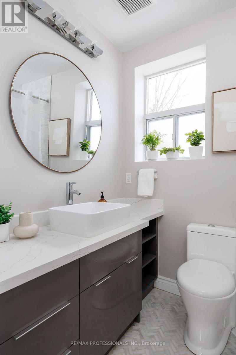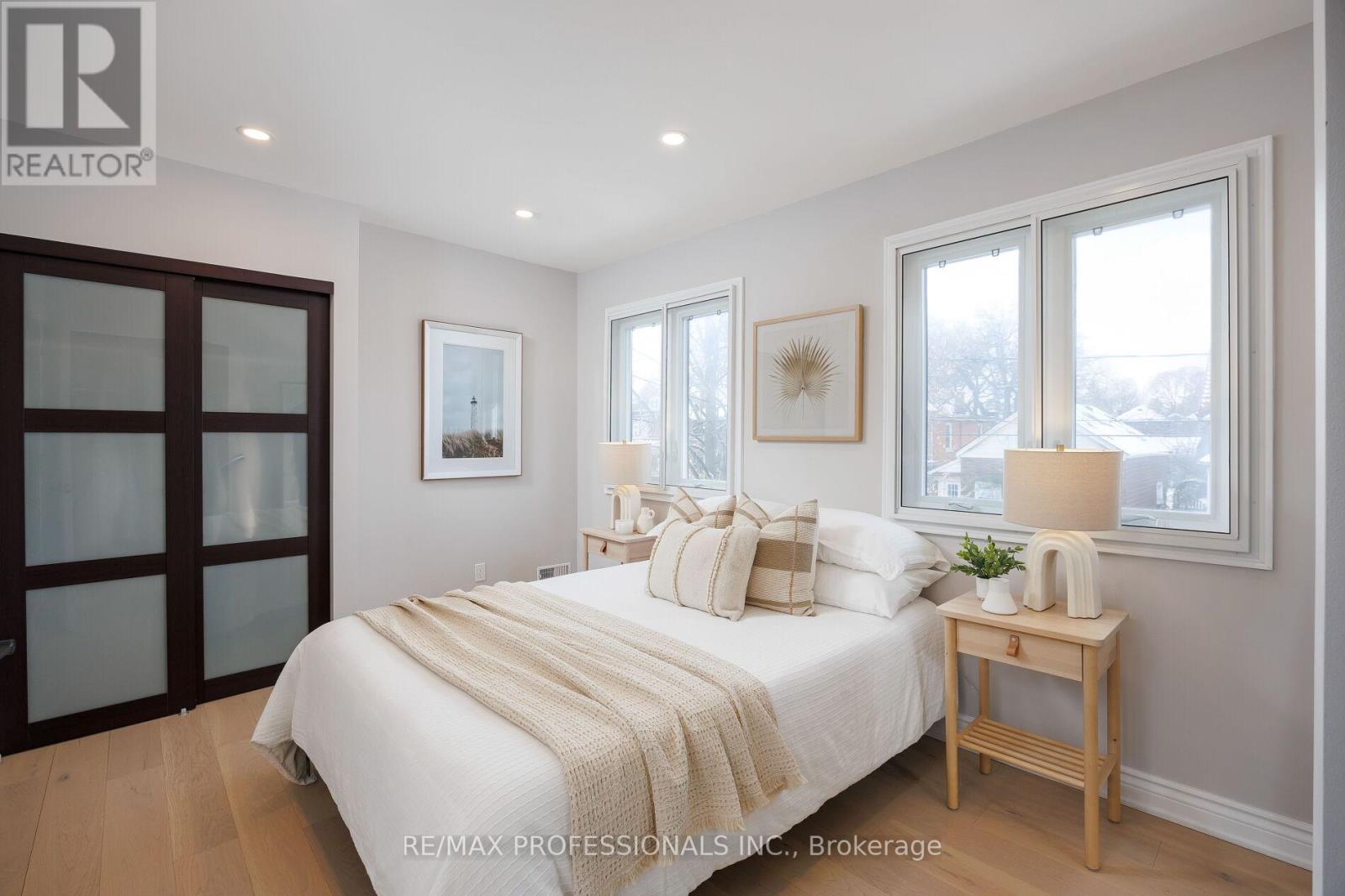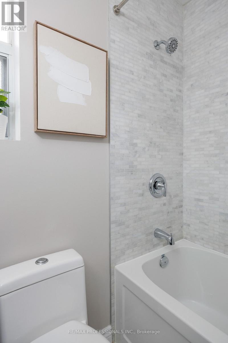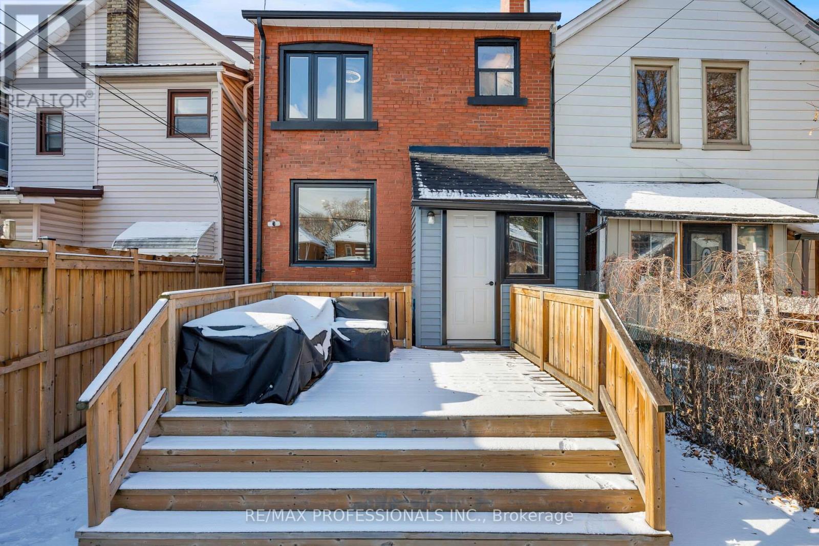 Discover this thoughtfully designed, turnkey home in the coveted Bloor West community. Plenty of natural light, the open-concept layout is perfectly suited for both family gatherings and entertaining guests. The designer eat-in kitchen is a features elegant quartz countertops, high-end appliances, and a generous pantry for your storage needs. Relax in the cozy family room, complete with a striking feature wall. Enjoy the convenience of a rare main floor powder room.Venture upstairs to find three spacious bedrooms, including a luxurious primary suite with double closets. Spa-like bathroom equipped with a large soaking tub, perfect for unwinding after a long day. The fully finished, open concept basement offers good ceiling height and additional living space, complete with laundry and stylish three-piece bathroom. Step outside to a landscaped and fenced backyard featuring a newer deck, perfect for summer evenings and entertaining. Generous parking for two cars. Located in highly desirable school districts. Enjoy all the neighbourhood amenities- including quick walk to TTC & family friendly parks. (id:51158)