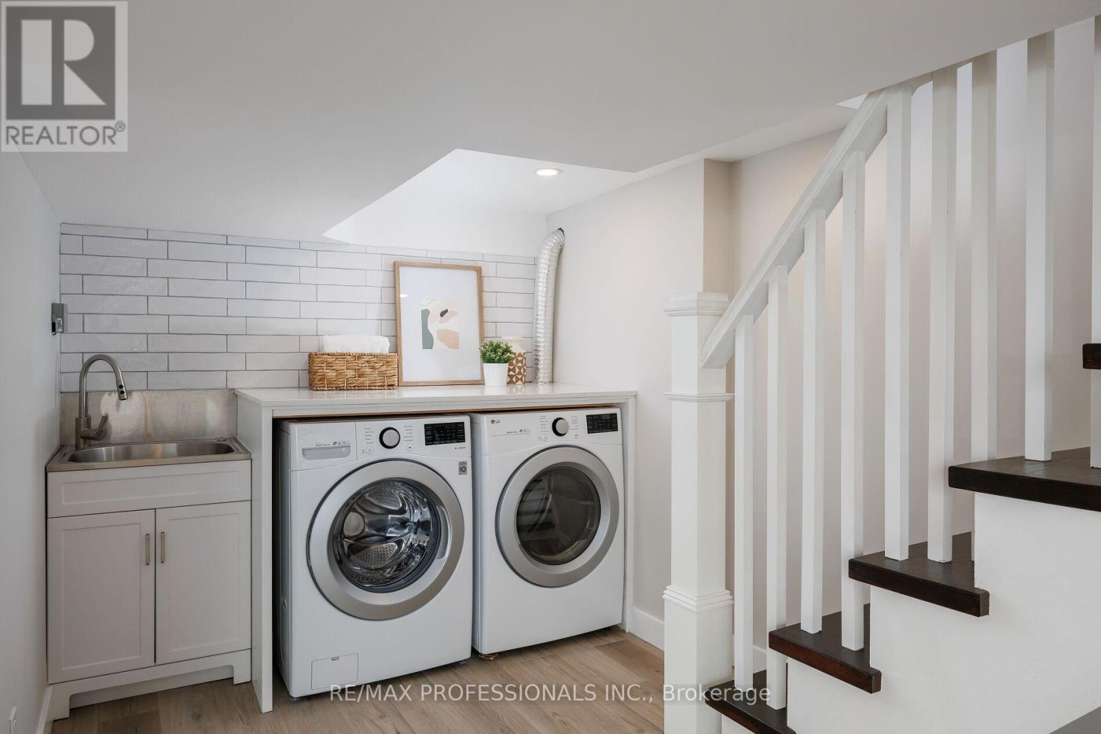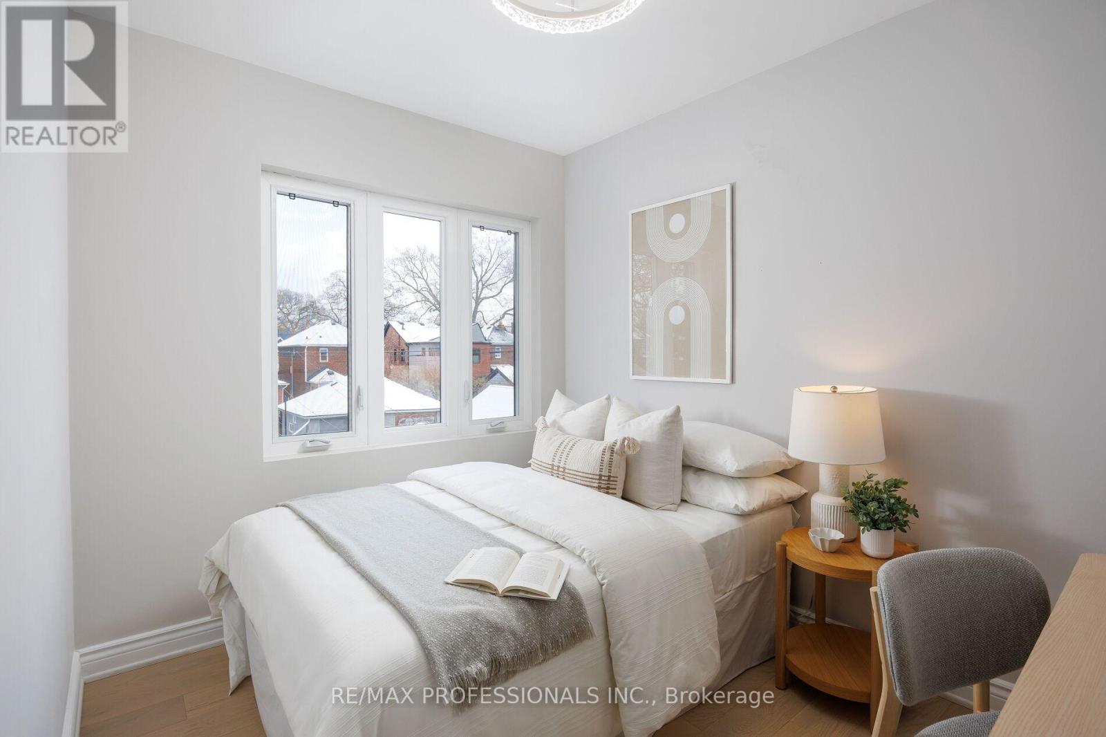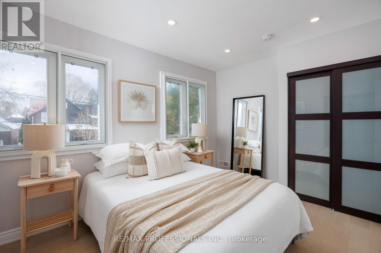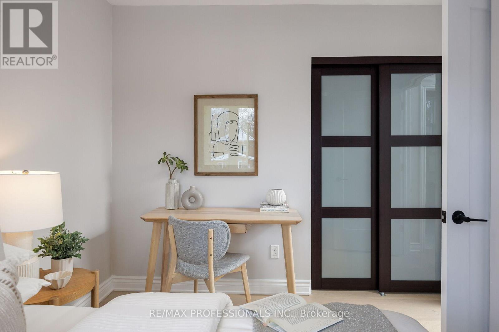 Discover this thoughtfully designed, turnkey home in the coveted Bloor West community. Plenty of natural light, the open-concept layout is perfectly suited for both family gatherings and entertaining guests. The designer eat-in kitchen is a features elegant quartz countertops, high-end appliances, and a generous pantry for your storage needs. Relax in the cozy family room, complete with a striking feature wall. Enjoy the convenience of a rare main floor powder room.Venture upstairs to find three spacious bedrooms, including a luxurious primary suite with double closets. Spa-like bathroom equipped with a large soaking tub, perfect for unwinding after a long day. The fully finished, open concept basement offers good ceiling height and additional living space, complete with laundry and stylish three-piece bathroom. Step outside to a landscaped and fenced backyard featuring a newer deck, perfect for summer evenings and entertaining. Generous parking for two cars. Located in highly desirable school districts. Enjoy all the neighbourhood amenities- including quick walk to TTC & family friendly parks. (id:51158)