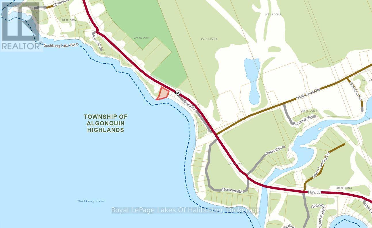 MLS: X12116185 For sale : 0 HWY 35 Prime, Prime, Prime! Exclusive Waterfront Property on Boshkung Lake. Experience the ultimate lakeside living with expansive southwestern views from this exceptional lot on the prestigious shores of Boshkung Lake. With 188 feet of pristine waterfront, this property offers a rare blend of deep and shallow water, featuring both rock and sandy shoreline, perfect for swimming, boating and enjoying the best of lake life. Ideal for a year-round home or cottage, the lot boasts easy, level access, you will see the building envelope is staked, an ideal location for a walkout basement. Surrounded by mature, majestic trees, you’ll enjoy natural privacy and a serene setting. The owned shore road allowance ensures full access to your private waterfront, complete with a lakeside deck and shed. Located in a prime spot off Highway 35, allows easy 2.5 hr access to the GTA and just a short drive to Minden or the hamlet of Carnarvon for all your amenities, this property offers unbeatable convenience. You’re also just minutes away from several outstanding restaurants, accessible by boat or car. Dont miss your chance to own a piece of paradise on one of the most prestigious lakes in the area!(The lot has four grey stakes to indicate a potential building site, meeting the set backs and accommodating a building of 36×52 feet) (id:51158)