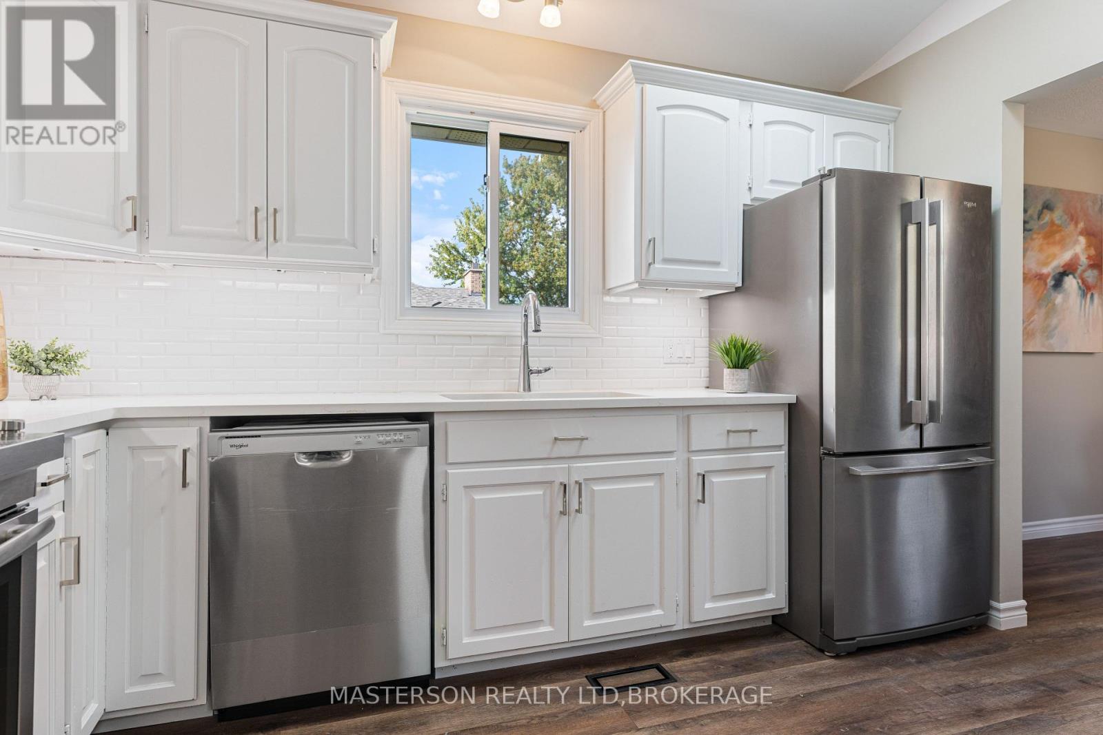 Meticulously renovated Raised Ranch Bungalow in the heart of a family friendly location. Main Level has been updated throughout with new flooring, kitchen, bathrooms and paint. The master bedroom has a 2 piece ensuite bathroom. Basement adds 2 more bedrooms, large recroom with kitchenette, laundry room and 3 piece bathroom. The backyard is a large pie shaped yard with storage shed and attached garage. All appliances come with to make this move in ready. Listing agent is related to the Sellers. (id:51158)