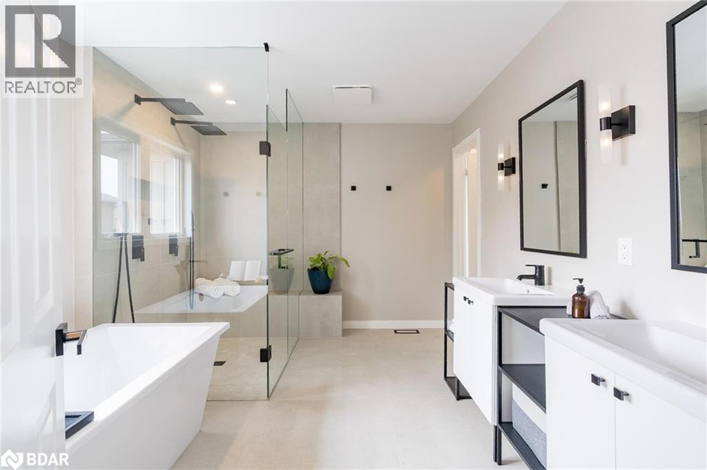 Top 5 Reasons You Will Love This Home: 1) Registered fully finished basement apartment (ADU) with its own entrance, kitchen, full bath and two bedrooms, perfect for extended family or income potential, vacant possession on closing (family occupied) offers incredible flexibility 2) Family-friendly layout with the upper level offering four spacious bedrooms, two with private ensuites and walk-in closets (including an oversized primary), plus two additional bedrooms sharing a full bath, and second laundry room, creating a rare setup that's ideal for large families or hosting guests in comfort 3) Retreat to the outdoor oasis equipped with a covered porch and all-weather 146x8 swim spa, creating a year-round sanctuary, complete with a convenient change room for seamless relaxation 4) Stylish main level open-concept living with 9' ceilings, a home office, modern mudroom, and an eat-in kitchen featuring quartz countertops, floor-to-ceiling pantry cabinets, and a built in desk nook, ideal for work or study 5) Nestled on a corner lot in a quiet, no-sidewalk driveway for plenty of parking, this home is close to top schools, parks, shopping, and Highway 400 for easy commuting 2,970 above grade sq.ft. plus a finished basement. (id:51158)
