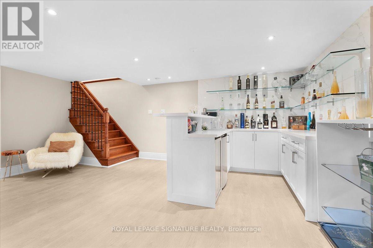 Stunning Sun-Filled Home Situated in a Quiet No Exit Court in the Prestigious Banbury & Don Mills Neighborhood. Right Across from Toronto's Iconic and Beautiful Edward Gardens and Literally Steps Away from The Shops At Don Mills Shopping Center and High ranking Schools. WithAlmost 4,400 Sqft of Total Luxury Living Space Featuring 4 Large Bedrooms, 5 Bathrooms and A Nanny Quarters on a Separate Floor Which Can Be Used as Secondary Family Room. A Grand Open To Above Foyer with a Showpiece Chandelier As you Open the front Door. Custom Wall Unit and MillWork with Accent Lighting throughout the Main Floor and An Executive Private Office with Custom Cabinetry. A Beautiful Gourmet Eat-In Kitchen with an Over Sized Island and Tons of Storage overlooking the Lush South Facing Backyard Oasis and Private Deck. The Beautifully finished Basement features a Custom Built Bar, A large Media/TV Room with a Home Gym and a Full Bath. Meticulously Landscaped with a Large Interlocked Driveway and Gorgeous Stone Pathways leading to the Well kept grounds with Mature trees. (id:51158)