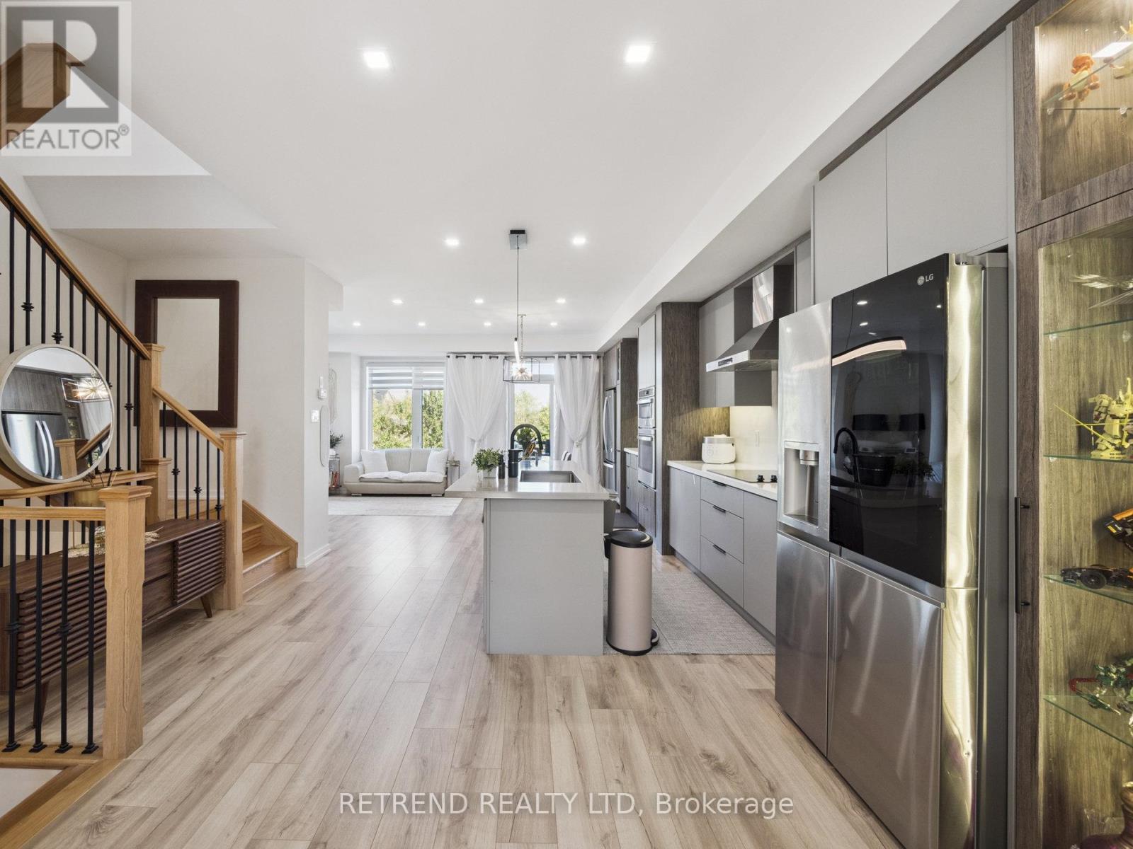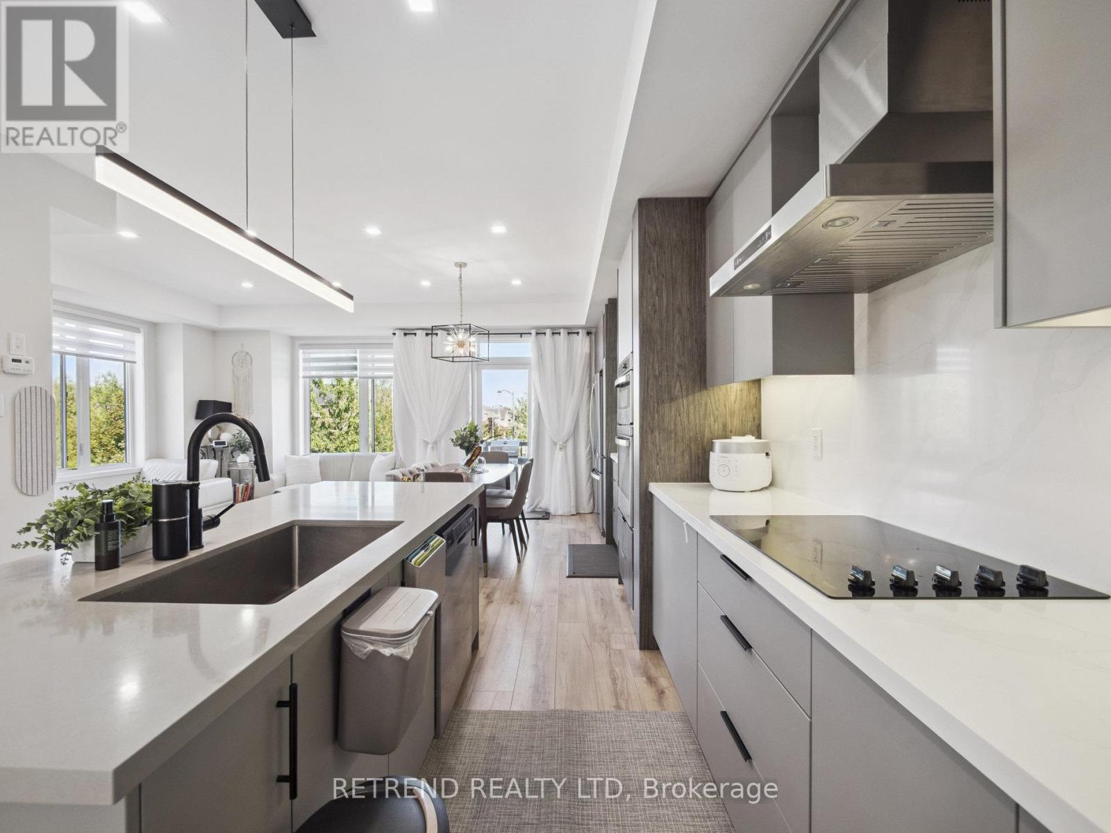 Stunning End-Unit Freehold Townhouse in Patterson!Welcome to the largest unit in Treasure Hills Evoke Modern Townhomes. This bright end-unit features a custom kitchen, high-end finishes, and breathtaking views. Recent upgrades include a brand-new deck and elegant basement cabinetry. The finished walkout basement provides versatile living space, while the separate second-floor thermostat ensures comfort and efficiency. Located steps from parks and top-rated schools, this home offers a rare chance to own a freehold townhouse in one of Vaughans most desirable neighborhoods! (id:51158)