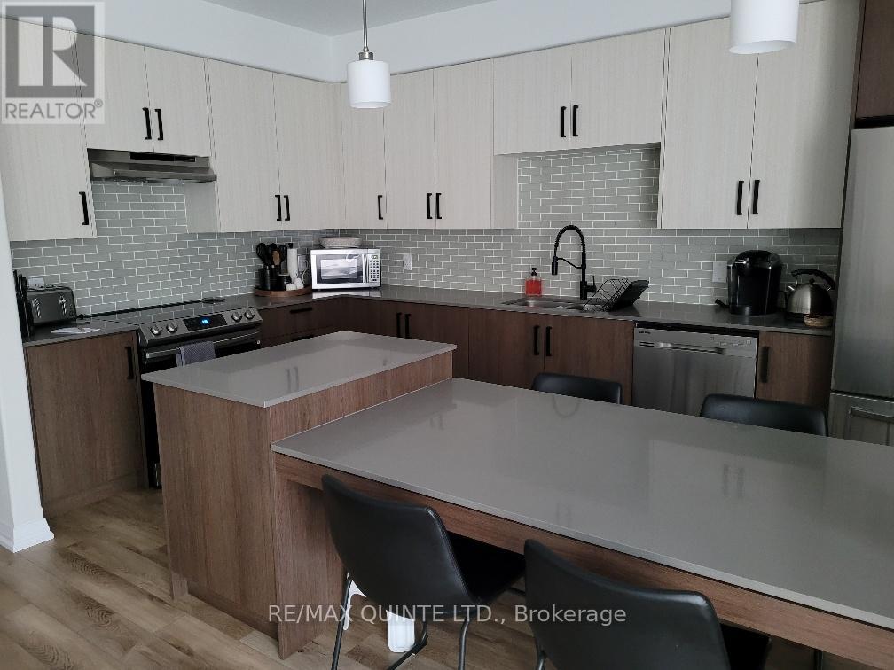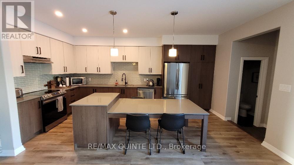 You will love everything about this 4 bed townhome which has $78K in upgrades, 2,545sq. of finished living space, with freshly-painted bedrooms & is located in an upscale condo development. As you enter the foyer, you will immediately notice the expansiveness of the 9 ceilings & the convenience of the main-floor Primary, which boasts a 3-pce. ensuite with walk-in shower & walk-in closet. The upgraded kitchen (23K) boasts a peninsula & is adjacent to a bright breakfast room. The Great Room, which has a walk-out to a raised deck with gas hook-up, finishes off the modern, open-concept living area on the main level. Upstairs, you will find 2 more bedrooms with cozy alcoves, either one of which would make a beautiful guest bedroom. There is also a 4-pce. bath on the upper & lower levels. Comfort & convenience continues on the LL where there is a 4th bedroom, bath & rec room. There are 2 generous storage areas, one under the stairs & the other on the back wall of the rec room, closed off by a door. There is also a closed-off utility room with 200-amp panel, HWD, HRV units & laundry room sink. Garage with automatic opener is partially dry-walled, condo fees are currently $314.71, which includes garbage & snow removal as well as landscaping. All of this in a gorgeous, well-planned community with parks & close to all amenities. 10 Min. to Trent University, 15 min. to Fleming College. (id:51158)