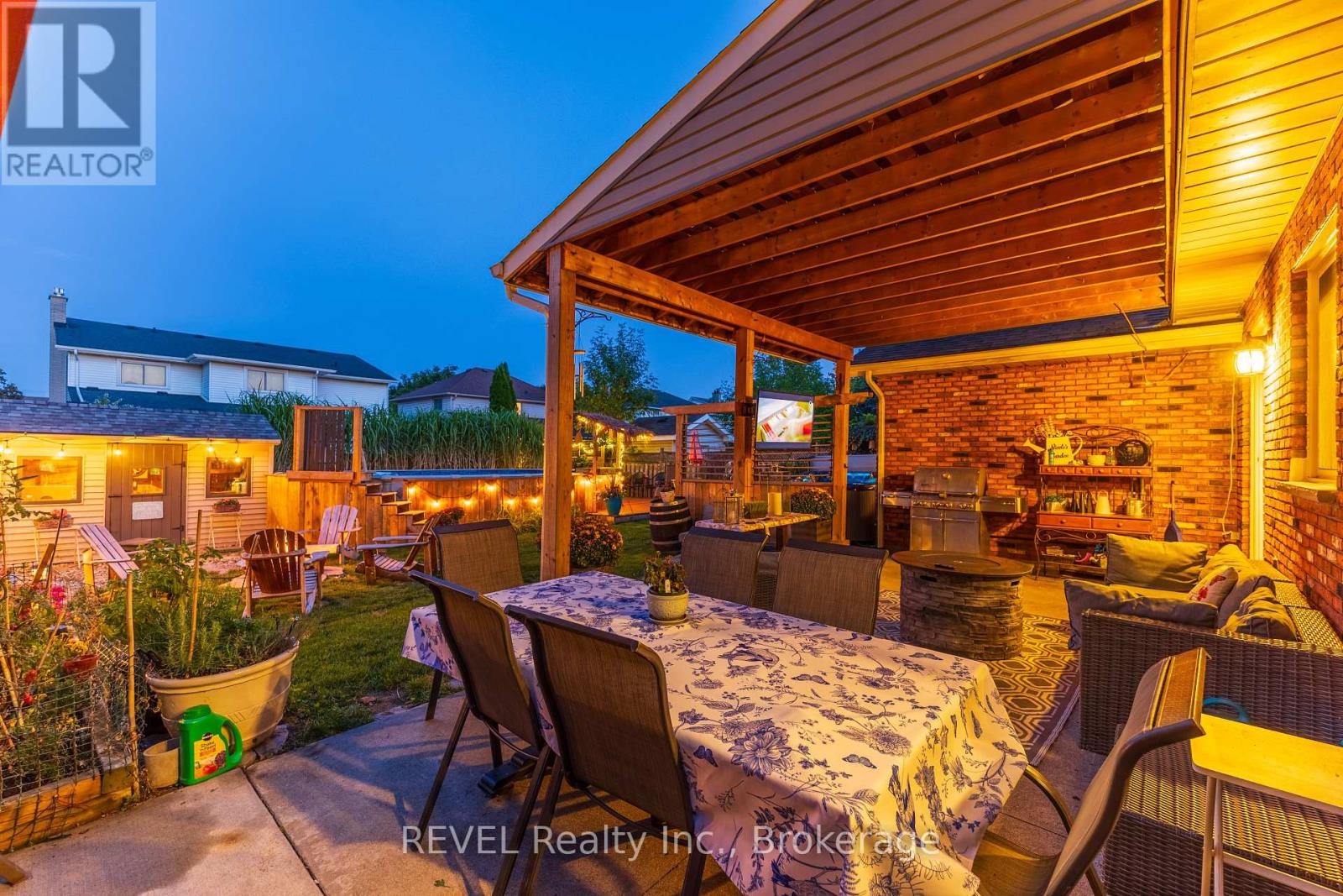 Welcome to 10 Bascary Crescent, a warm, beautifully maintained family home that combines everyday comfort with inviting spaces designed for real living and entertaining. From the moment you step inside, the welcoming front foyer sets the tone, leading into a bright, thoughtfully designed living spaces that feel both spacious and cozy. The main floor offers a seamless flow between the living, dining, and kitchen areas, perfect for busy family life or hosting gatherings with friends. The updated kitchen is truly the heart of the home, featuring timeless cabinetry, generous prep space on the granite counters, and a large island with seating, making it the ideal spot for morning coffee, homework time, or casual entertaining. Just beyond, the dining area opens into a warm and inviting family room highlighted by a stunning brick fireplace - a perfect space to relax and unwind. At the front of the home, a spacious area ideal for a home office or extra living space. Upstairs, you'll find generously sized bedrooms, including a spacious primary retreat with a walk-in closet and an ensuite bath. 2 additional versatile rooms and bathroom that easily adapt to your family's needs. The fully finished lower level adds incredible bonus living space, complete with a stylish recreation area, fireplace, games space, and bar, ideal for movie nights, entertaining, or creating your own private retreat. Step into the backyard oasis where entertaining and relaxation take centre stage. The expansive covered patio features a cozy seating area with a fire table and mounted TV, perfect for outdoor gatherings. A hot tub, newer above-ground pool with surrounding deck, and charming tiki-style bar create a true resort-like atmosphere right at home. Located in a desirable St. Catharines neighbourhood close to schools, parks, shopping, and everyday amenities, this home offers the perfect blend of comfort, functionality, and lifestyle appeal. (id:51158)