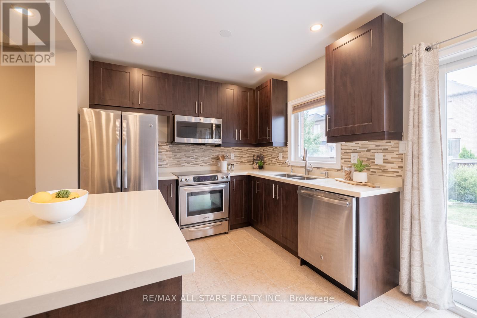 Discover this beautifully crafted residence, thoughtfully designed with only the garage attached, offering unparalleled privacy and space. Boasting three spacious bedrooms and two full, elegantly appointed bathrooms on the second floor, complemented by a stylish 2-piece powder room on the main level and a fully finished basement featuring an additional 2-piece bath perfect for guests or a growing family. Step inside to gleaming hardwood floors throughout, and indulge in the newly renovated, spa-inspired master bathroom, a serene retreat designed for ultimate relaxation. The bright and airy open-concept eat-in kitchen is a chefs dream, outfitted with premium stainless steel appliances and a seamless walkout to a private, sun-drenched deck ideal for alfresco dining and entertaining. Enjoy the convenience of garage access to a beautifully landscaped backyard, perfect for outdoor gatherings and family fun. This exceptional home truly stands out as a 10+ in every way and is perfectly positioned just a short stroll to the highly regarded Barbara Reid Public School, scenic parks, and vibrant community amenities. Experience luxury, comfort, and a prime location all in one remarkable package this home is ready to welcome you! (id:51158)