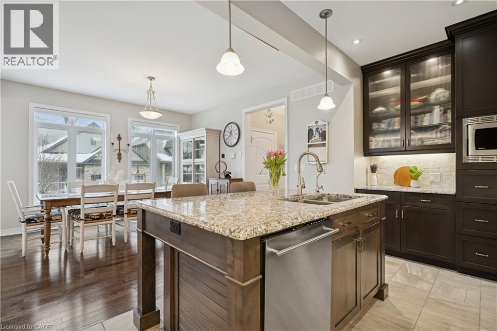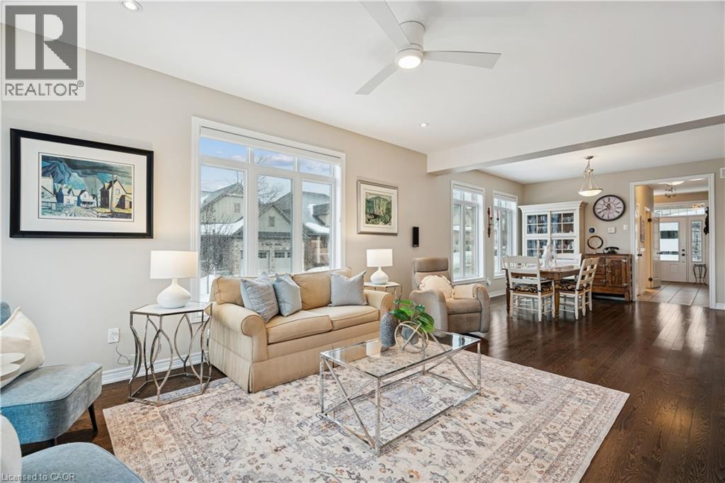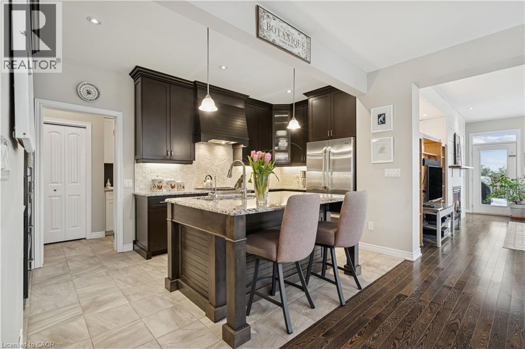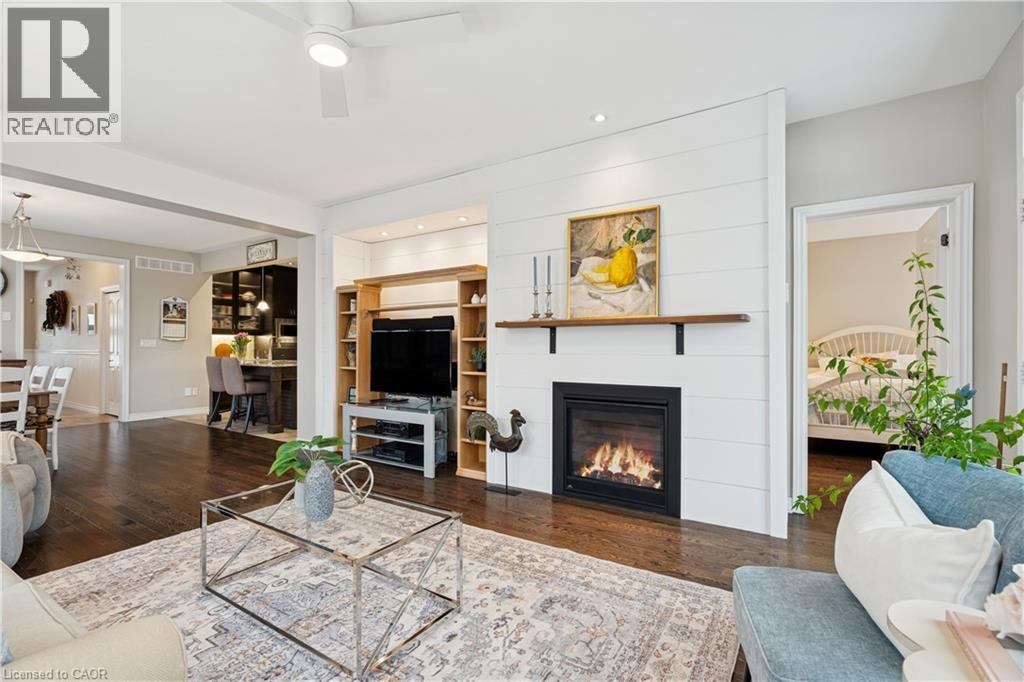 Welcome to peaceful, low-maintenance living in one of Rockwood’s most desirable communities. This beautifully maintained 2016 bungaloft offers 1,888 sq ft above grade with main-floor living designed perfectly for those who want comfort without compromise. The main floor features rich hardwood floors and a spacious primary retreat complete with walk-in closet and a luxurious 5-piece ensuite. The bright, open-concept kitchen showcases granite countertops, an oversized centre island, extended cabinetry, stainless-steel appliances, and a gas stove, ideal for effortless entertaining or quiet mornings at home. The kitchen flows seamlessly into the dining area with hardwood flooring, pot lights, and a large picture window. The adjoining living room features hardwood floors, a cozy gas fireplace, abundant natural light, and a walk-out to the raised deck. A perfect space for relaxing or hosting family gatherings. Convenience continues with main-floor laundry, direct garage access, and a 2-piece powder room. Upstairs, the loft provides a welcoming family room with pot lights and a skylight, ideal for guests or a reading retreat. A spacious bedroom with walk-in closet and 4-piece bathroom completes the level. The finished basement offers a recreation room with above-grade windows, a third bedroom with double closet, and a large unfinished area with above-grade windows ready for your future vision. Major updates include a new furnace in 2025 and new rental hot water heater and water softener in 2026. The monthly common element fee of $165.00 covers road maintenance, snow clearing except driveways, sidewalks, landscaping and berm maintenance, allowing you to enjoy truly low-maintenance living. Located minutes from Rockwood Conservation Area, scenic walking trails, charming downtown Rockwood shops and restaurants, and an easy commute to Guelph or Acton GO Train, this home offers peaceful surroundings without sacrificing convenience. (id:51158)