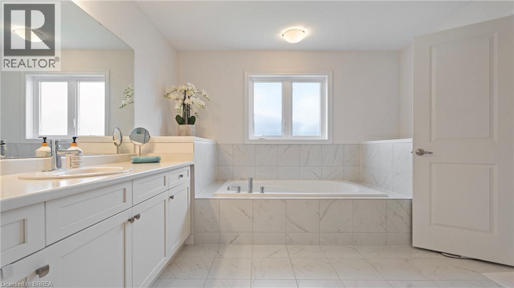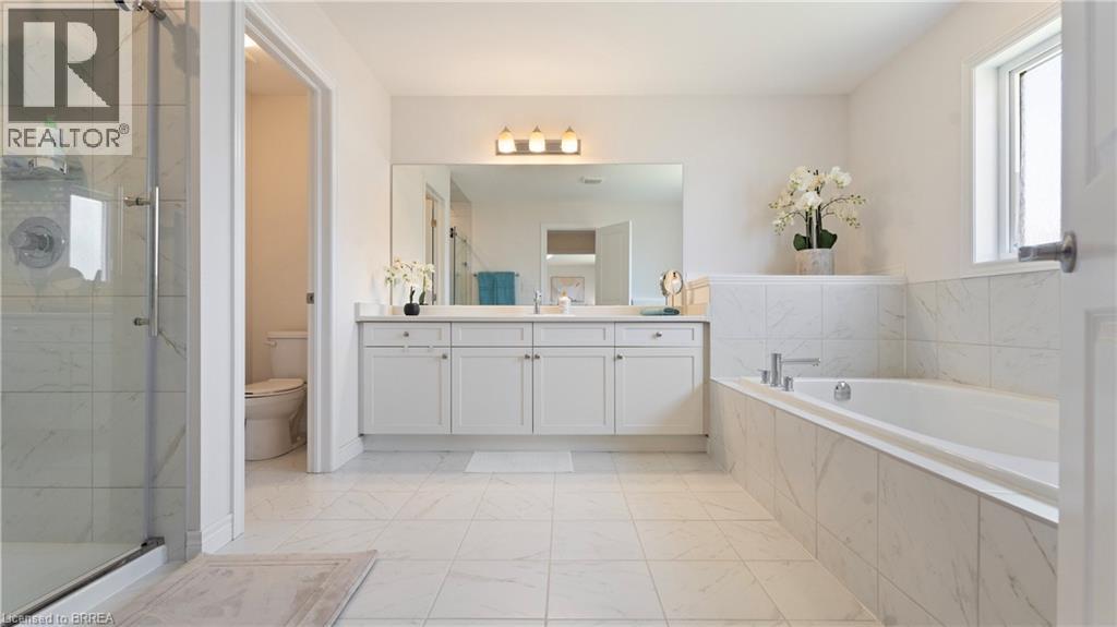 Welcome to 10 McGovern Dr. A stunning almost 3,500-square-foot, two-story home located in gorgeous Paris, Ontario. This spacious residence features four bedrooms upstairs, each with access to a full bathroom, making it perfect for a large family. The main floor also includes a dedicated office space, a separate living/dinning room, and a family room, all within an open-concept layout that flows seamlessly into the large, gourmet kitchen. The kitchen is a chef’s dream, featuring wall oven, stainless steel appliances and elegant quartz countertops. Additionally, there is a convenient main floor laundry area near the garage entrance, complete with a mudroom. The property also boasts a fully fenced backyard and a separate entrance to the basement, ideal for future customization. The primary bedroom suite includes a luxurious spa-like bathroom with a separate tub, an enlarged shower, and his-and-her closets. This property is perfect for families looking for comfort, space, and future potential. (id:51158)