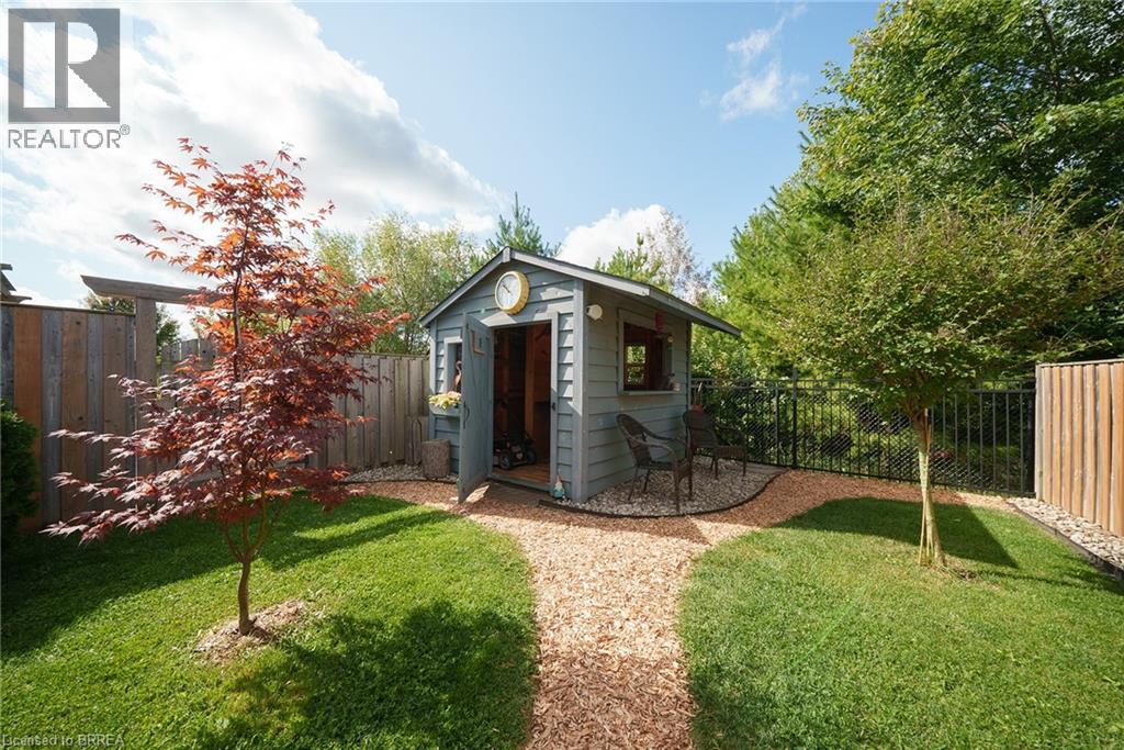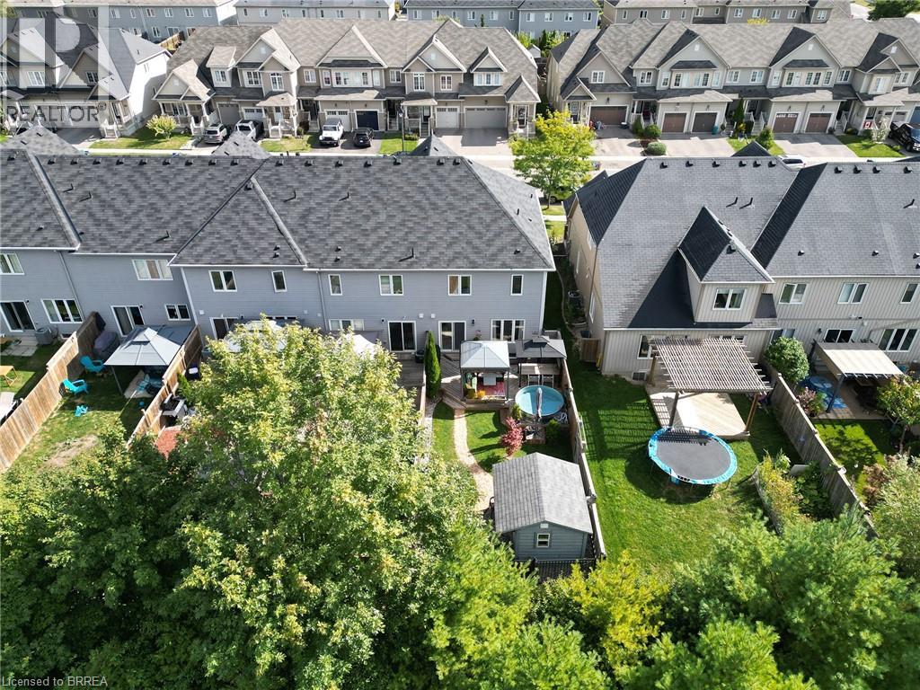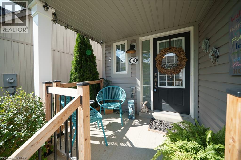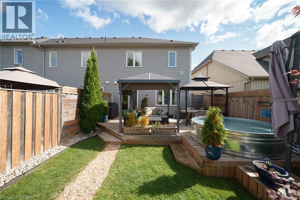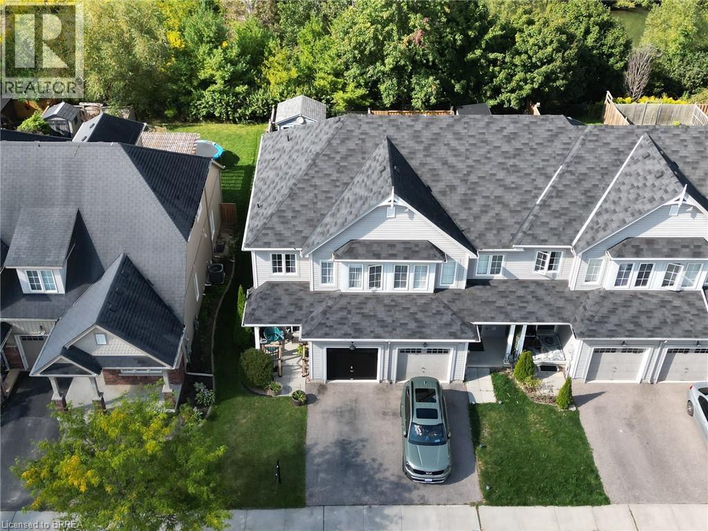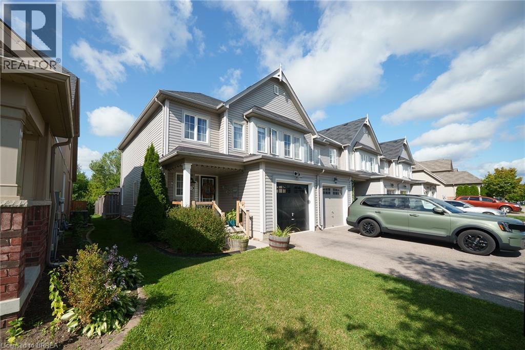 Welcome home to 100 Bisset Avenue in Brantford. This freehold 2-storey end-unit townhouse offers 1,296 sq ft of primary living space with 3 bedrooms, 2.5 bathrooms, a professionally finished basement, single-car garage and a fully fenced and gated backyard. Lovingly maintained by its original owners, this home is set in the sought-after, family-friendly Empire South community of vibrant West Brantford. The main level begins with a welcoming tiled foyer complete with built-in shelving and a convenient 2-piece bathroom. The carpet-free design continues with laminate flooring throughout the open-concept layout, featuring a spacious living room and an eat-in kitchen. The kitchen offers two-tone cabinetry, extended counters, updated fixtures, and stainless steel appliances, including a newer fridge and stove (2023). From here, sliding doors open to the backyard, and there is also direct inside access to the garage for added convenience. Upstairs are three bedrooms, including a primary suite with a walk-in closet and a 4-piece ensuite bathroom. A second 4-piece bathroom and a linen closet complete the upper level. The professionally finished basement (2020) expands the living space with a large recreation room featuring recessed lighting, built-in shelving and cabinetry. A finished laundry room with additional cabinetry adds function, while a utility room with built-in shelving provides organized storage. The level is complete with a cold room/cellar. The fully fenced backyard includes a raised wooden deck, a gazebo, and a covered BBQ gazebo for cooking in any weather. A large shed with a serving-style opening makes it ideal for storage or entertaining, while a gated throughway offers convenient access in and out of the yard. Just steps from excellent schools, walking and biking trails, public transit, and a variety of nearby shopping and dining options, this home combines everyday convenience with a family-friendly setting. (id:51158)