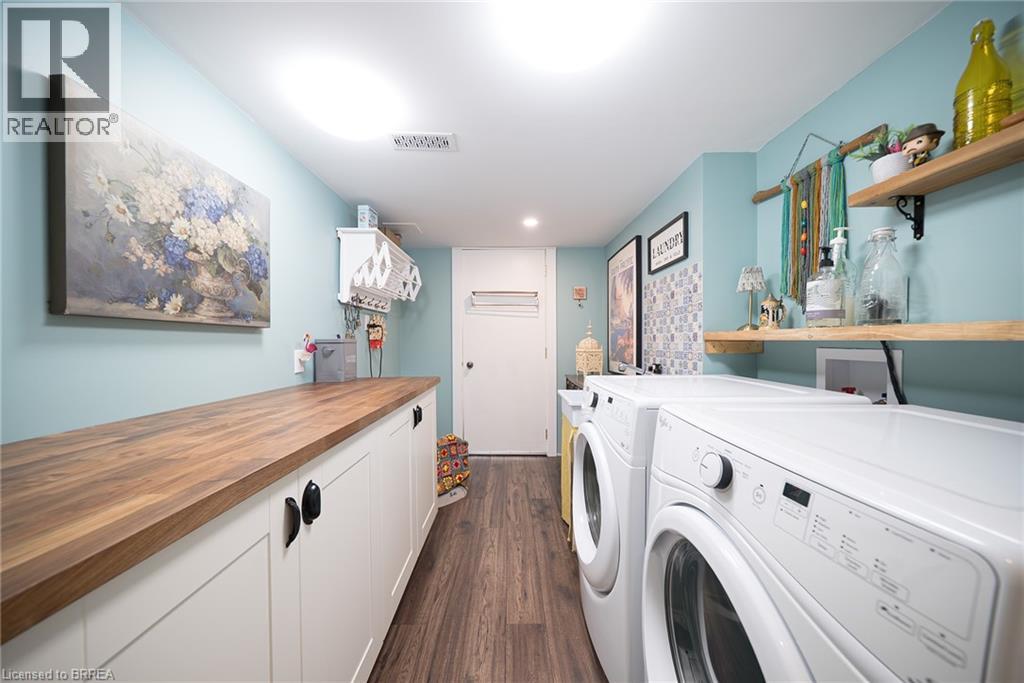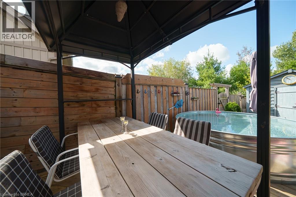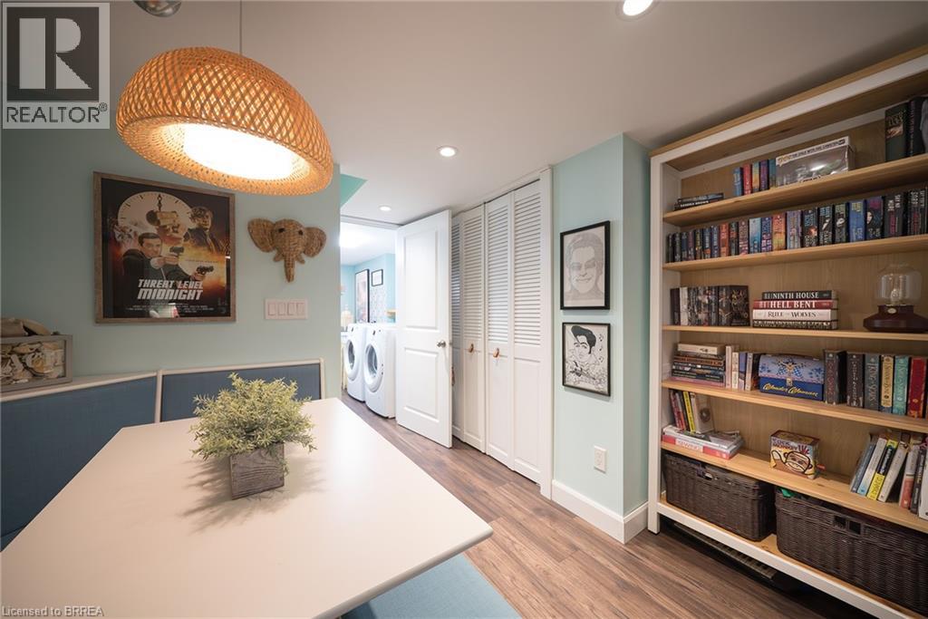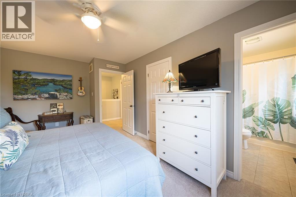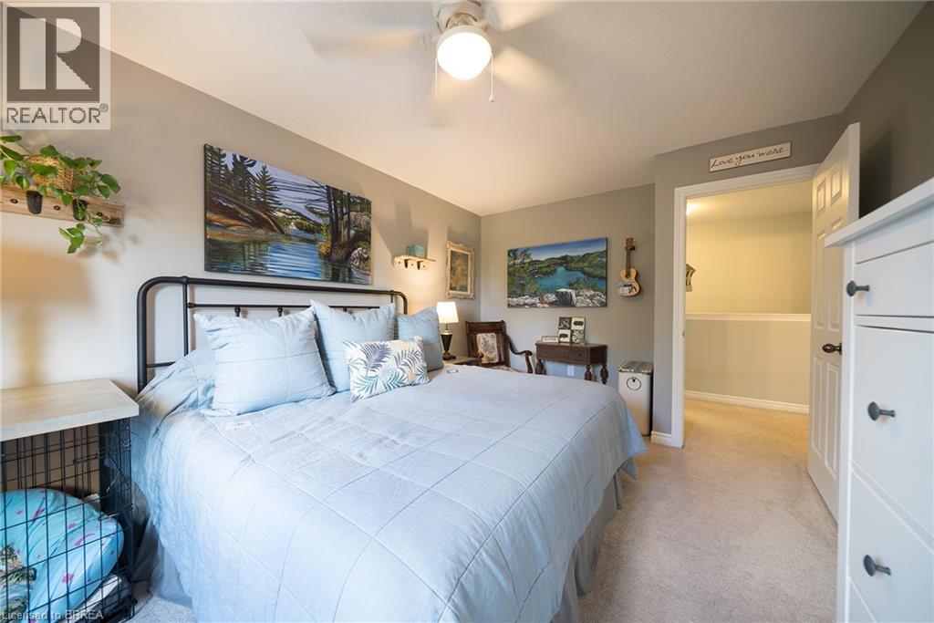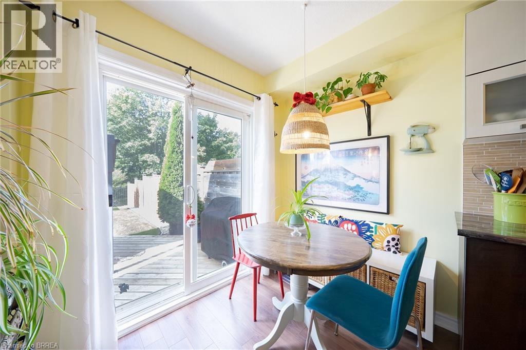 Welcome home to 100 Bisset Avenue in Brantford. This freehold 2-storey end-unit townhouse offers 1,296 sq ft of primary living space with 3 bedrooms, 2.5 bathrooms, a professionally finished basement, single-car garage and a fully fenced and gated backyard. Lovingly maintained by its original owners, this home is set in the sought-after, family-friendly Empire South community of vibrant West Brantford. The main level begins with a welcoming tiled foyer complete with built-in shelving and a convenient 2-piece bathroom. The carpet-free design continues with laminate flooring throughout the open-concept layout, featuring a spacious living room and an eat-in kitchen. The kitchen offers two-tone cabinetry, extended counters, updated fixtures, and stainless steel appliances, including a newer fridge and stove (2023). From here, sliding doors open to the backyard, and there is also direct inside access to the garage for added convenience. Upstairs are three bedrooms, including a primary suite with a walk-in closet and a 4-piece ensuite bathroom. A second 4-piece bathroom and a linen closet complete the upper level. The professionally finished basement (2020) expands the living space with a large recreation room featuring recessed lighting, built-in shelving and cabinetry. A finished laundry room with additional cabinetry adds function, while a utility room with built-in shelving provides organized storage. The level is complete with a cold room/cellar. The fully fenced backyard includes a raised wooden deck, a gazebo, and a covered BBQ gazebo for cooking in any weather. A large shed with a serving-style opening makes it ideal for storage or entertaining, while a gated throughway offers convenient access in and out of the yard. Just steps from excellent schools, walking and biking trails, public transit, and a variety of nearby shopping and dining options, this home combines everyday convenience with a family-friendly setting. (id:51158)