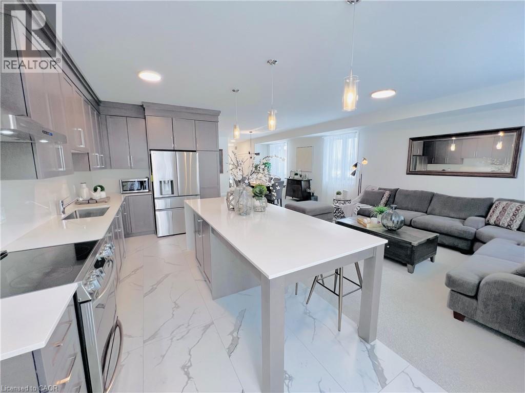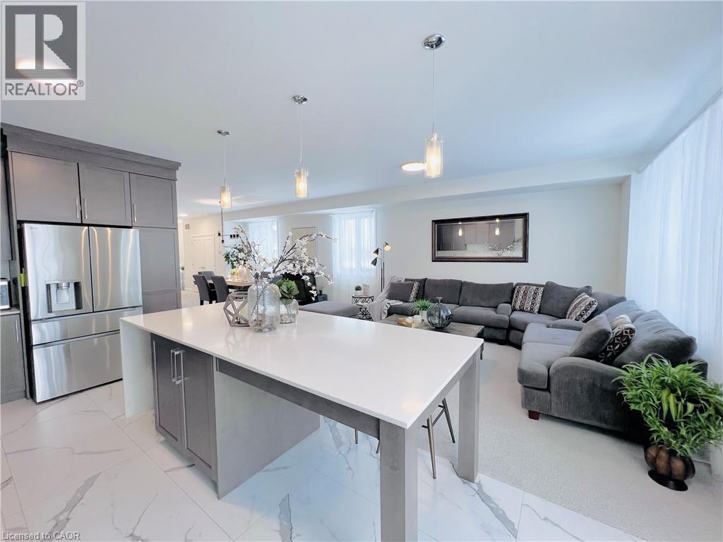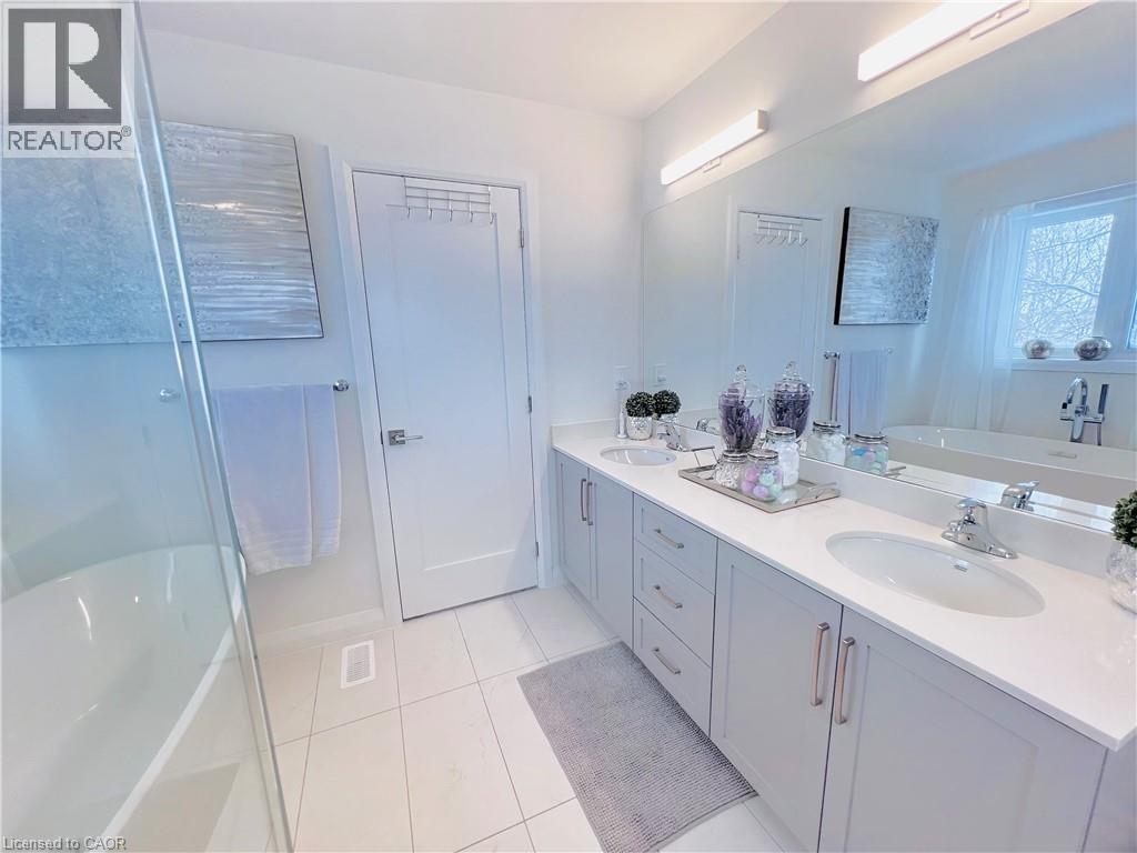 Welcome to this modern 2-storey detached home with 2,222 sq ft of luxurious living space, expertly crafted by Spallacci Homes & set in one of Hamilton’s most coveted neighbourhoods. This impressive residence blends timeless design, upscale finishes, & everyday functionality for a refined & comfortable family living. The elegant brick & stone exterior offers striking curb appeal & reflects the quality found throughout the home. Inside, a spacious main floor welcomes you with 9-foot ceilings, upgraded tile flooring throughout, and elegant oak stairs that add warmth and character. The layout features a bright, sun-filled living room, a comfortable family room, and a generous dining area, all flowing seamlessly to support both entertaining and daily life. At the heart of the home is the stunning extended custom kitchen, designed to impress. It showcases stainless steel appliances, a custom oversized island with waterfall quartz & backsplash, an undermount bowl sink, 42-inch upper cabinets, and 24-inch deep fridge upper cabinets with refined riser moulding. This kitchen is as functional as it is beautiful—ideal for gatherings and family meals alike. Upstairs, you’ll find four generously sized bedrooms and a full main bathroom. The primary bedroom serves as a private retreat with a spa-inspired five-piece ensuite bath and a spacious walk-in closet. In-suite laundry is also conveniently located on the second floor. The unfinished basement offers endless potential to personalize additional living space. Completing the home is a two-car attached garage with inside entry and a plug for electric vehicle charging, along with a double-wide driveway providing ample parking. Ideally located near top schools, parks, shopping centres, and major highways. Sqft & room sizes are approximate. Property not assessed by MPAC as of list date. (id:51158)