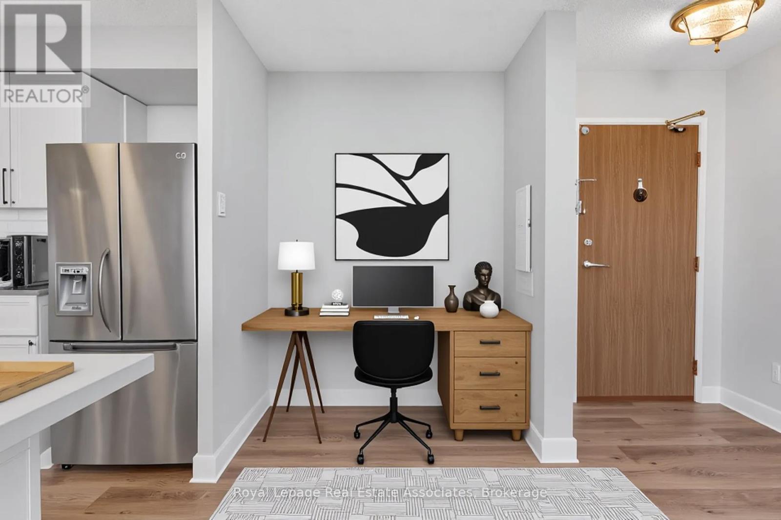$709.80 Monthly* FULLY RENOVATED, CONTEMPORARY & TURNKEY * Don't miss this incredible opportunity to own a stunning 2 BED 1 BATH 842sqft unit in the well established community of Meadowvale! Condo fees include exclusive use of 2 PARKING SPOTS & 1 LOCKER, plus the Heat/Water/Cable TV/Internet utilities + Building Amenities like Outdoor Pool, Party Room, Meeting Room and Visitor Parking. The open concept Kitchen has had a massive overhaul boasting chic quartz countertops, brand new stainless steel appliances, white shaker-style cabinets, subway tile backsplash & brushed pewter hardware. Perfect Centre Island w/ stool seating & pendant lighting overlooks the Living & Dining areas, with a Walk-out to the expansive private balcony showcasing the beautiful panoramic views of tree tops and city skyline. BONUS: Office Nook to work from Home, and potential for In-Suite Laundry! The entire unit has all new baseboards and fresh paint, plus an upgraded bathroom with gorgeous sleek ceramic tiles - there's so much to love in this little piece of paradise. (*NOTE: Some photos have been virtually staged.) Floor AC unit can be replaced with 2 Window AC units instead - Buyer's preference. Meadowvale Village is a heritage conservation district - featuring charming historic sites like Gooderham Estate and Silverthorne Grist Mill plus the scenic Credit River surroundings & trails. COMING SOON by 2026, conveniently just down the road: Costco Business Centre!! Steps to the Bus Stop for MiWay public transit & connections to Brampton. Just a short 12 minute walk to the Meadowvale GO Train Station with direct access to downtown Toronto. Super quick drive to major highways 401 & 407 for commuting throughout the GTA. With this area known as 'park heaven', enjoy a walkable easy lifestyle with everything you need each day and the perfect place to lay your head at night. Whether you're a first time buyer, an investor or downsizing -- it's time to call Meadowvale home! (id:51158)