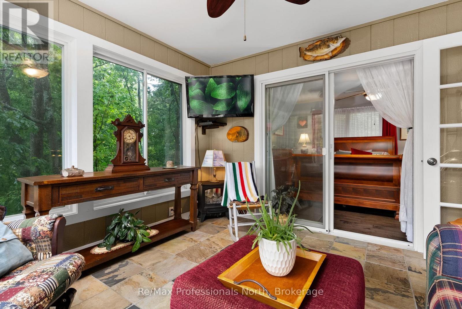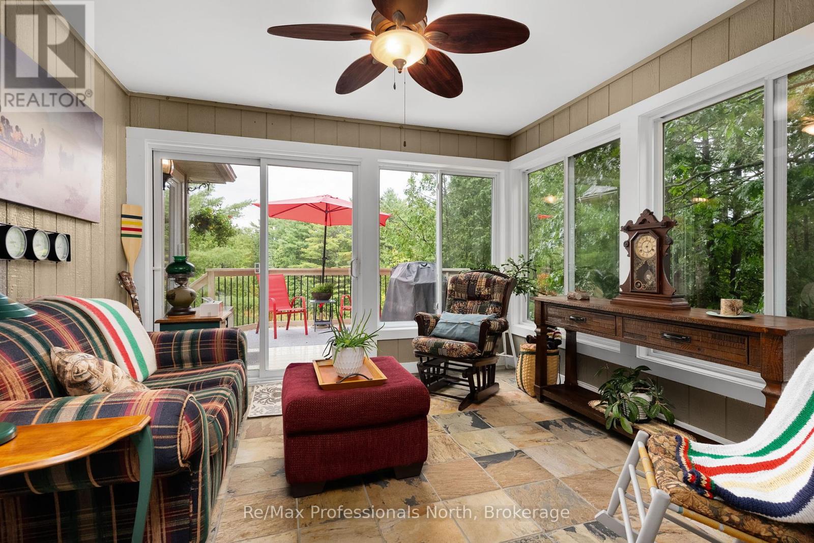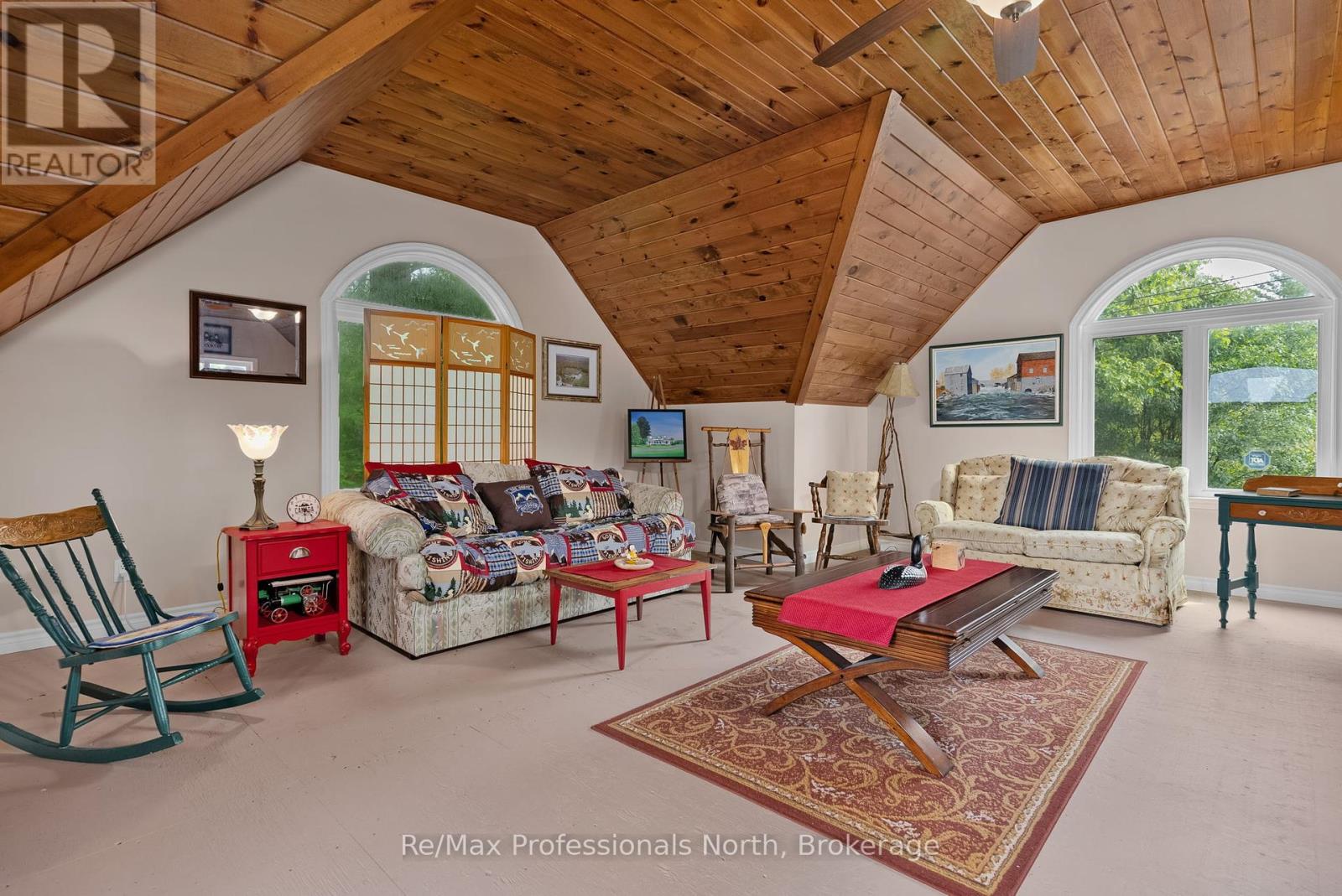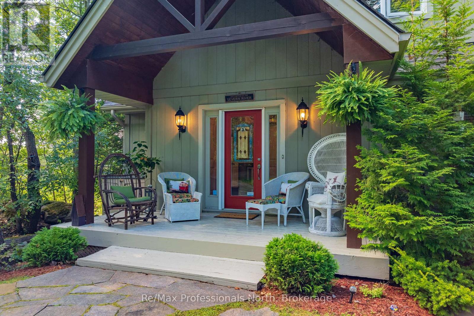 Welcome to "The River View", a custom-built Muskoka retreat where thoughtful design and natural beauty come together. The heart of the home is the great room, where soaring windows frame captivating views of the Severn River and a striking granite fireplace creates a warm focal point. With approximately 1,800 square feet of well-planned living space, the residence features 3 comfortable bedrooms and 2.5 bathrooms, offering both functionality and privacy for family and guests. A versatile loft provides the perfect spot for a reading nook or quiet workspace, enhancing the homes inviting flow that suits both relaxed living and entertaining. Adding to the appeal, a detached garage includes 500 square feet of finished space ready to be enjoyed as a home office, art studio, fitness room, or bunkie for guests and grandchildren. Outdoors, life on the river is all about connection to nature, explore more than 20 km of calm waters by boat, take in stunning sunsets around the firepit, or unwind in a Muskoka chair while enjoying the sought-after western exposure. Convenient access to Highway 11 and Washago ensures easy travel, with Gravenhurst and Orillia just 15 minutes away. As the closest Muskoka address to the GTA, "The River View" offers the rare combination of peaceful seclusion and accessibility, making it a standout opportunity for those seeking luxury and lifestyle on the water. Click the Property Brochure link below for the virtual tour, floor plans, and additional photos. (id:51158)