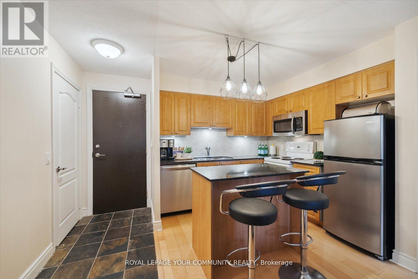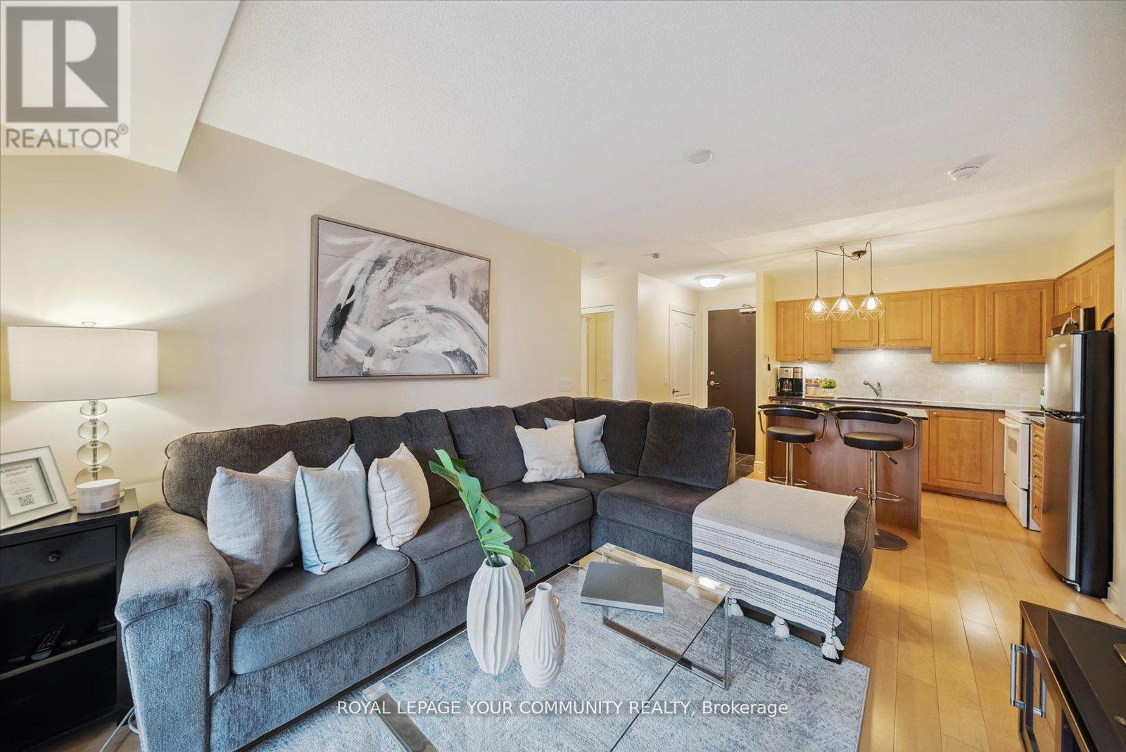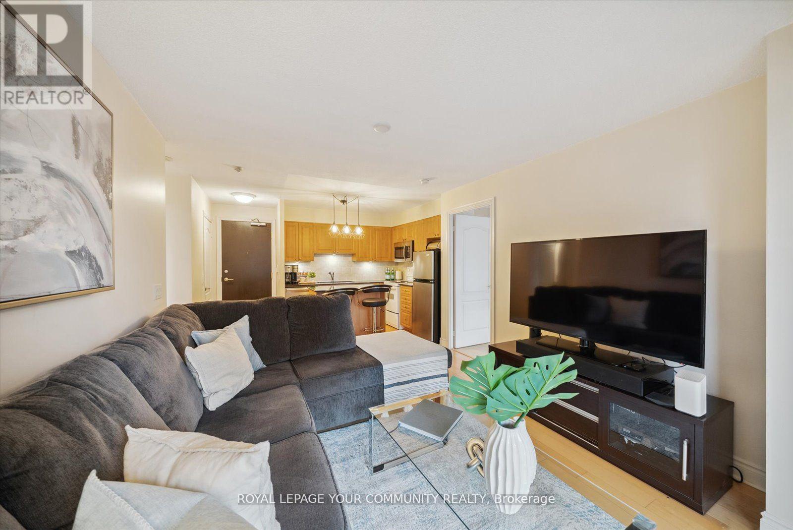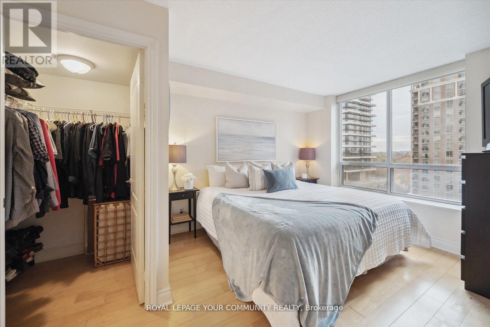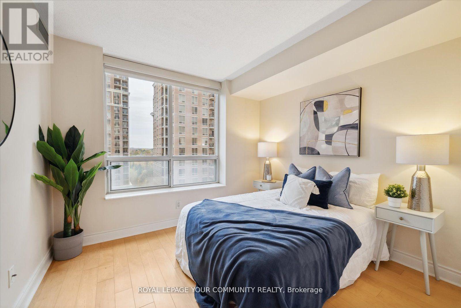 Welcome to 1103 Leslie St Unit 1006 at Carrington Place, a suite with a thoughtful and functional design, showcasing a convenient split bedroom layout, including a generously sized primary bedroom featuring a 3-piece ensuite and walk-in closet, while the second bedroom boasts a double closet and beautiful west-facing windows. The open floor plan, complimented with seamless hardwood flooring, offers versatile living possibilities. The open kitchen design is enhanced by the presence of a center island and is completed with quartz countertops. Step outside onto the spacious private balcony to enjoy your morning coffee amidst ever-changing seasonal views. For added convenience, the underground parking spot is thoughtfully positioned near the elevator, and a spacious storage locker ensures an organized and functional living space. Centrally located, within a 2-minute walk to the new Eglinton LRT Station, Edward's Gardens, and Sunnybrook Park and close to The Shops at Don Mills. FRIDGE HAS BEEN CHANGED THIS RECENTLY. Furnitures are not included. (id:51158)