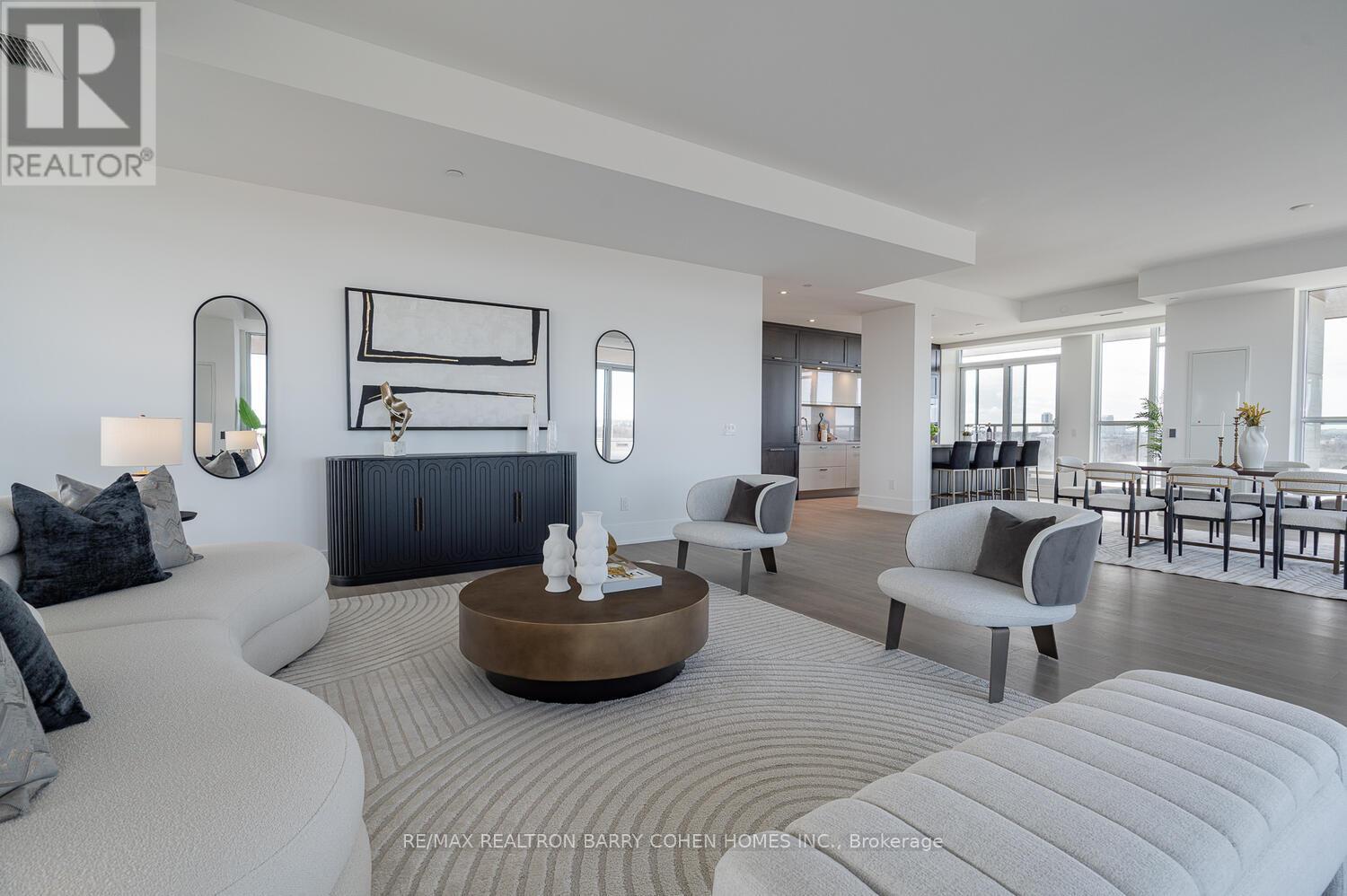 Brand New Luxury High-Floor Corner Residence At Tridel's Signature Royal Bayview, Offering Appx 2,427 SF Of Elegant Living Space With Southwest Exposure And Breathtaking Unobstructed Views Overlooking The Prestigious Ladies' Golf Club of Toronto.This Exceptional 2+1 Br, 3 Bath Suite Features An Expansive 1,350 SF Private Terrace, Perfect For Enjoying Outdoor Living Beautiful Golf Course Scenery.10-Ft Ceilings, Floor-To-Ceiling Windows, Hardwood Flooring Thru-out, And An Abundance Of Natural Light Enhance The Sophisticated Interior. The Open-Concept Living, Dining, And Kitchen Areas Seamlessly Extend To The Terrace, Creating An Ideal Space For Both Everyday Living And Entertaining While Taking In The Stunning Golf Course Views.The Chef-Inspired Upgraded Kitchen Features Custom Cabinetry, Quartz Countertops, Premium Built-In Miele Appliances, And A Wine Fridge, Combining Style And Functionality. The Prim Br Retreat Enjoys S Exposure, Walk-Out Access To The Terrace, And Beautiful Golf Course Views, Along With A Luxurious 6-Pc Ensuite Bath And His & Hers Walk-In Closets. A Separate Den Provides The Perfect W-F-Home Space.Enhanced $$$ In Quality Builder Upgrades Thru-out, This Stunning Suite Features Upgraded Hardwood Flooring, Smooth Ceilings, Pot Lights, Upgraded Baths, And Refined Designer Finishes Thru-out.Located In The Heart Of Thornhill, Offers An Upscale Lifestyle Surrounded By Fine Dining, Shopping, Parks, Trails, And Everyday Conveniences. Beautifully Landscaped Grounds Create A Private Oasis Between The Residence And The Golf Course, Within Walking Distance To The Private Ladies' Golf Club. Exceptional Luxury Amenities Include Concierge, Grand Two-Storey Lobby, Indoor Pool, Whirlpool, Saunas, Mahjong Rm, Fitness Centre, Yoga Rm, Fireplace & Library Lounge, Party Rm, Dining Rm, Outdoor Lounge With Fireplace, Outdoor Dining Area, Guest Parking And Indoor Golf Simulator.2 Parking Spaces & 1 Large Locker Included, Conveniently Located Beside the P2 Elevator. (id:51158)