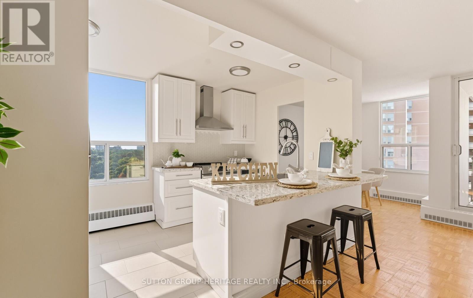 Your Perfect Toronto Condo Awaits! Step into this stunning bright and spacious 3-bedroom, 2-bathroom corner suite, where comfort meets convenience in the heart of North York. Featuring panoramic south, east & west facing ravine views, this home offers a serene backdrop that's rare to find in the city.The primary retreat comes complete with its own 2-piece ensuite and double closet, while the functional L-shaped living and dining room is bathed in natural light perfect for both everyday living and entertaining. Enjoy your morning coffee or unwind in the evening on the oversized balcony, seamlessly accessed through sliding glass doors.You'll love the brand-new open concept kitchen (2020), freshly painted interiors, and modern lighting updates that make this home move-in ready. Additional perks include a large in-suite storage room, parking, locker, and all-inclusive maintenance fees that cover utilities and Rogers cable.This well-managed building boasts incredible amenities: an indoor pool, fitness centre, sauna, and on-site convenience store. With TTC at your doorstep, and quick access to the DVP, 401, and downtown Toronto, commuting is effortless.Everything you need is minutes away schools, parks, libraries, community centres, places of worship, East York Town Centre, Costco, Superstore, grocery stores, and more. New lobby (2024). This is more than a condo its a lifestyle. Don't miss this rare opportunity to own a spacious, upgraded home in a prime North York location. (id:51158)