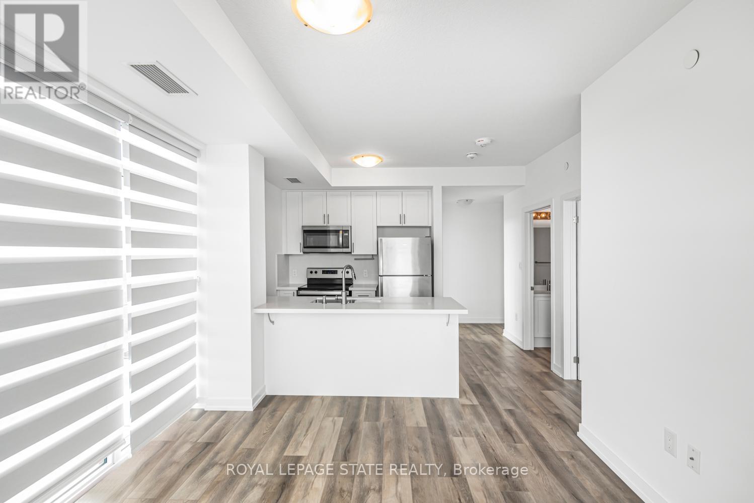 $416.91 MonthlyWelcome to this stunning 10th-floor unit in the highly sought-after Trend 3 community! Step into a bright and inviting 2-bedroom, condo. The open concept layout seamlessly connects the modern kitchen and living area, featuring brand-new stainless steel appliances, a stylish breakfast bar with quartz counter tops, and direct access to your private balcony w/exposure to two sides. A well-appointed 4-piece bathroom and the convenience of in-suite laundry complete this thoughtfully designed space. Enjoy a lifestyle of comfort and convenience with exceptional building amenities, including vibrant party rooms, a state of the art fitness center, scenic roof top patios, and secure bike storage. Located in the heart of Waterdown, this home features effortless access to top-rated dining, shopping, schools, and picturesque parks. Included with the unit is 1 owned surface parking space and an owned locker for extra storage. Experience contemporary living at its finest in this exceptional condo (id:51158)