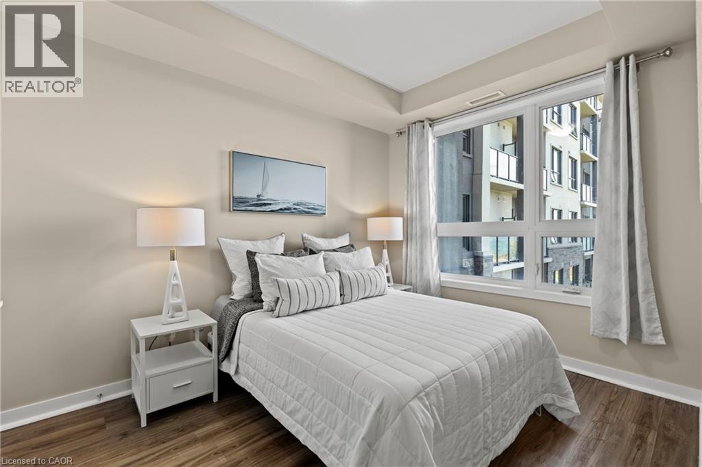 $448 MonthlyLAKE VIEW and only steps to the beach!! Welcome to Sapphire, located along the beautiful waterfront of Lake Ontario. When you aren't enjoying walking along the trails you can still enjoy these unobstructed views from your private balcony or bedroom window. This one bedroom unit has a well sized entrance and an open concept layout, perfect for entertaining. The bedroom is generously sized with a walk-in closet and picturesque window, and the 4 piece bathroom and in-suite laundry finish up the unit. This unit also comes with a storage locker and an underground parking spot. (id:51158)
