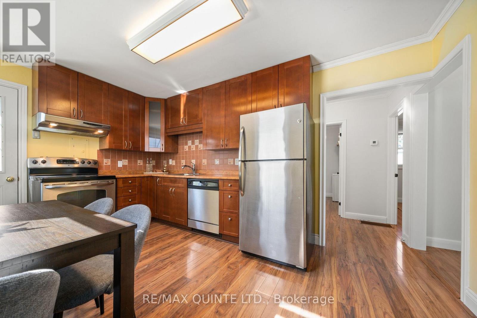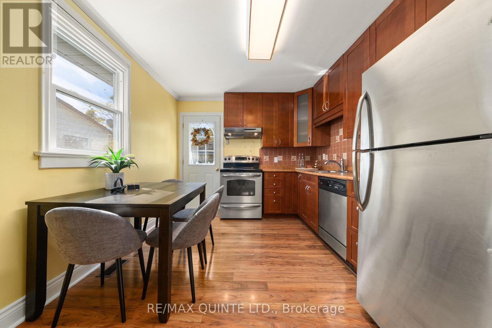 Adorable and well-maintained 2-bedroom, 1-bath bungalow is perfect for first-time buyers or anyone looking to downsize and enjoy the ease of one-level living. Step inside to a bright and freshly painted living room, featuring a large picture window that fills the space with natural light. Eat-in kitchen has been tastefully updated, offering plenty of cupboard space, stainless steel appliances, and direct access to a private back deck. The home includes two comfortable bedrooms and a stylishly updated 4-piece bathroom. For added convenience, the laundry is tucked neatly into the second bedroom closet. Located close to the 401, shopping, and everyday amenities, this cozy home offers both comfort and convenience. With nothing to do but move in, this sweet bungalow is ready to welcome you home! (id:51158)