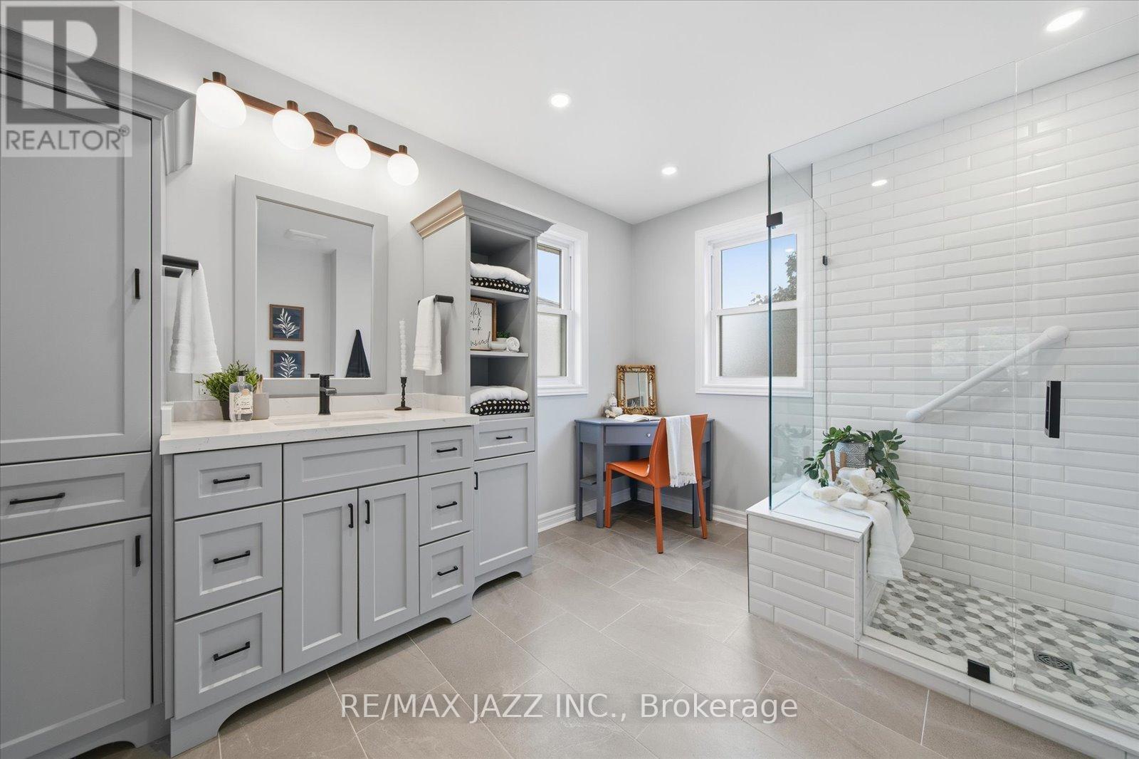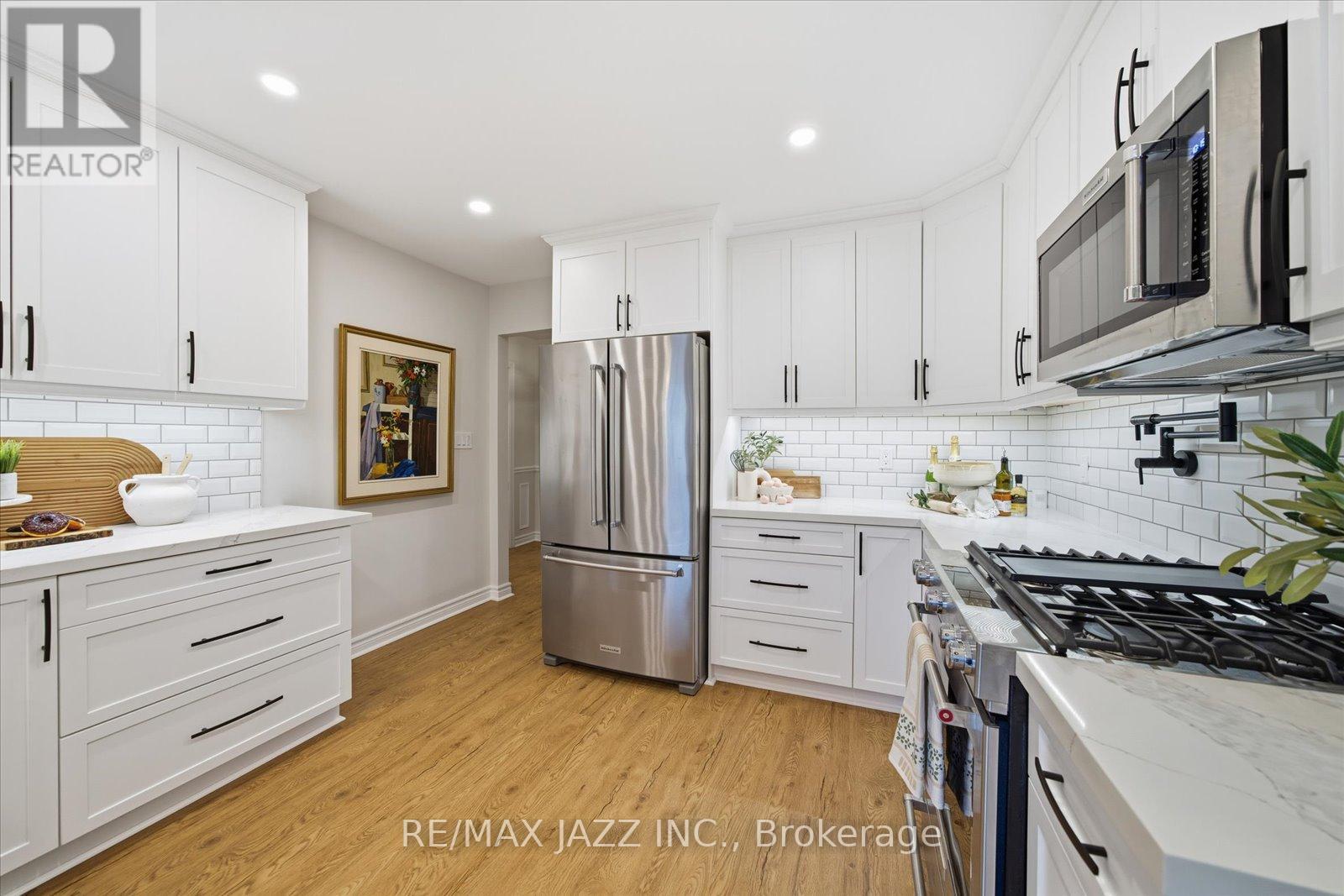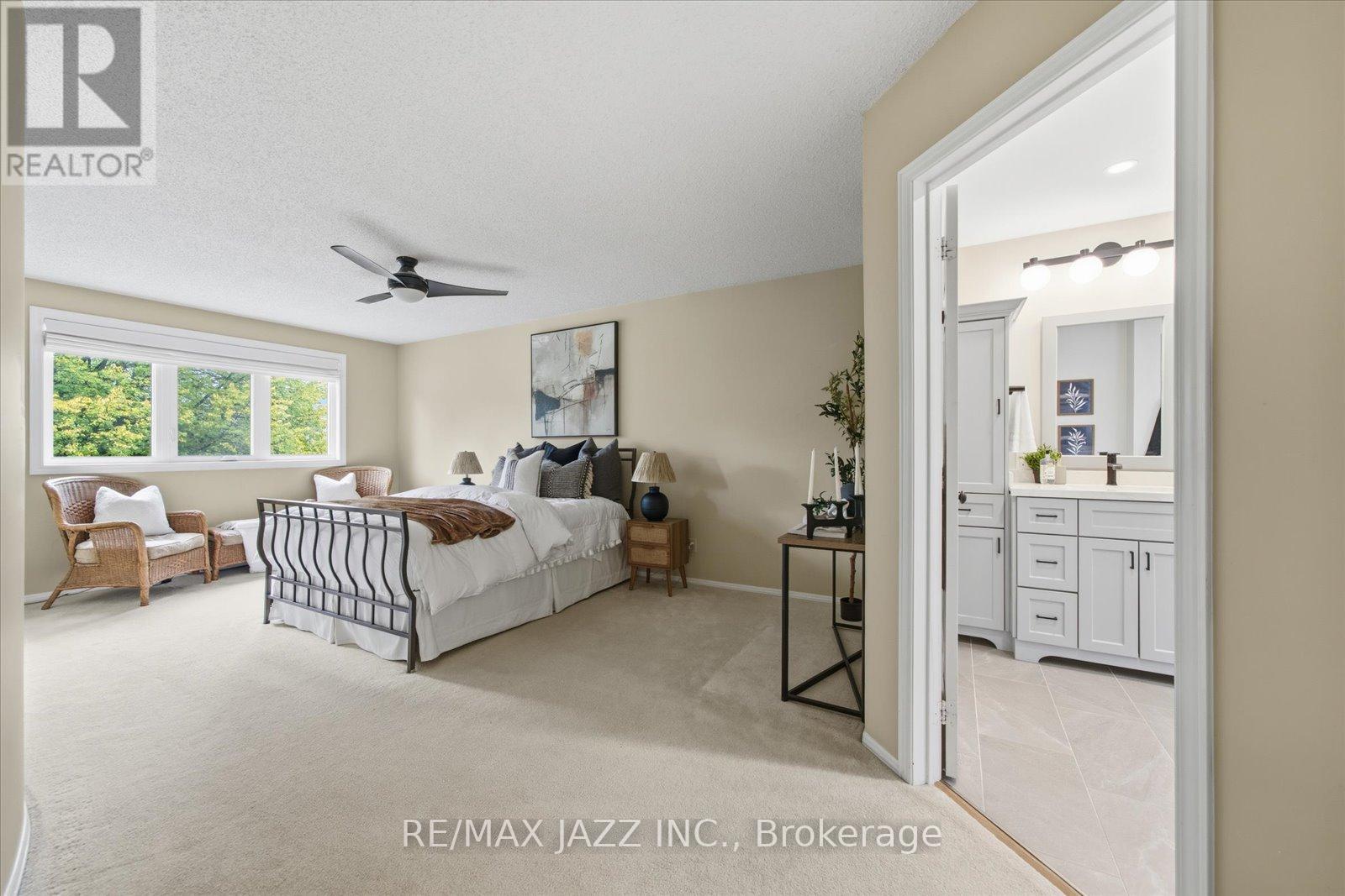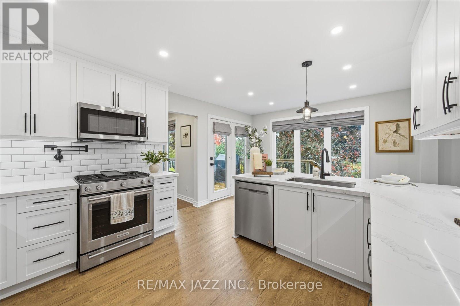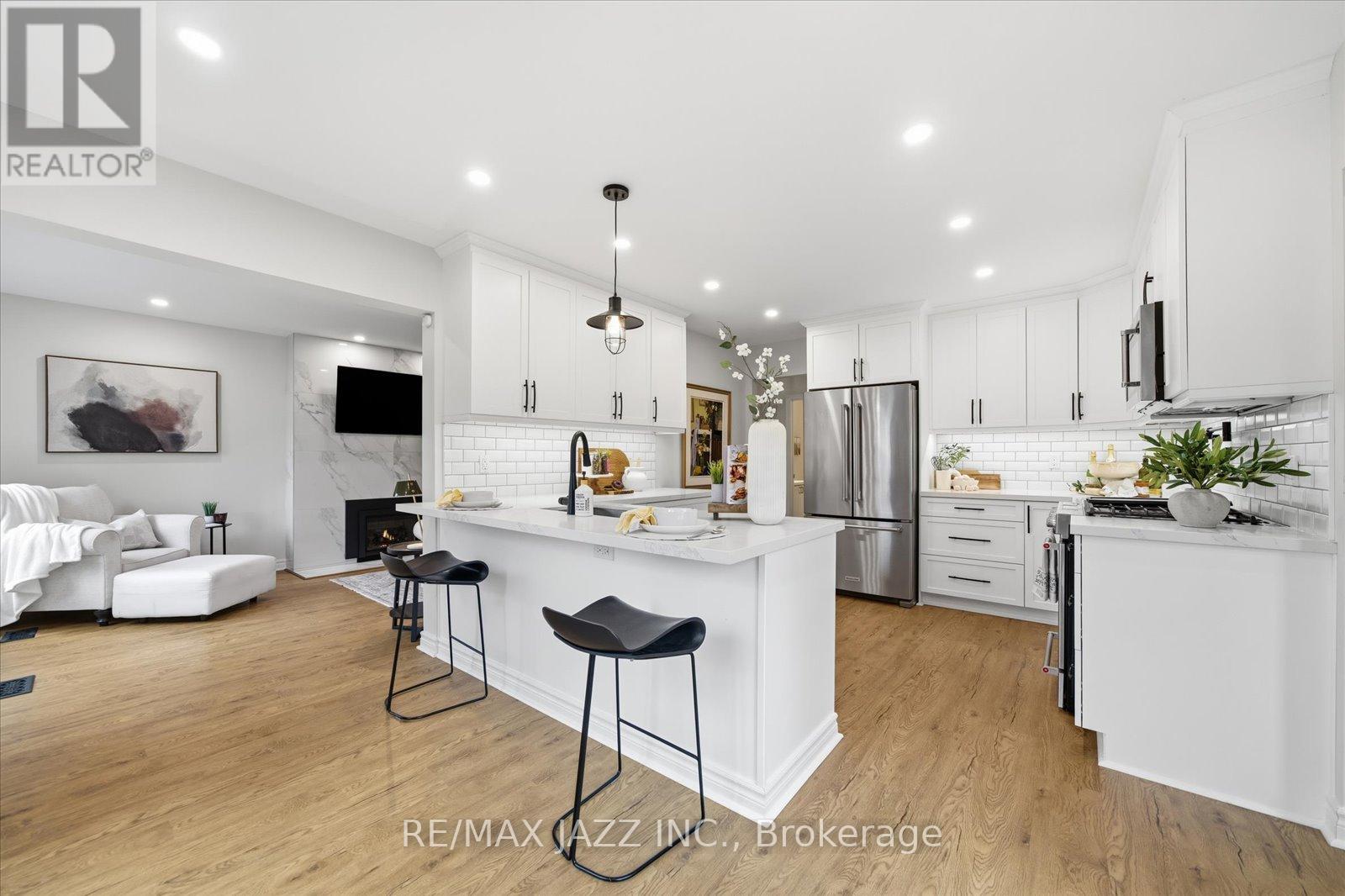 Welcome to this stunning, extensively updated Jeffery built home that perfectly blends modern luxury with practical, comfortable living. Step inside to discover the thoughtful updates from top to bottom. The heart of the home, the renovated kitchen, is a chef's dream, boasting sleek quartz countertops, a subway tile backsplash, a spacious breakfast bar, stainless steel appliances and a bright eat-in area with a walkout to the raised deck for easy outdoor entertaining. This home also offers a separate living room with beautiful hardwood floors and a gas fireplace, and an adjoining formal dining room with pot lights and more hardwood. You will love the separate and bright main floor family room featuring a second stunning gas fireplace set against a marble-look porcelain tile surround. The upper level features four well-sized bedrooms, including the expansive principal bedroom with a luxurious ensuite bathroom complete with heated floors and large glass shower. The unfinished basement offers incredible potential for your future plans with large above-grade windows. Don't miss the opportunity to view and own this turn-key, stylishly renovated home! (id:51158)