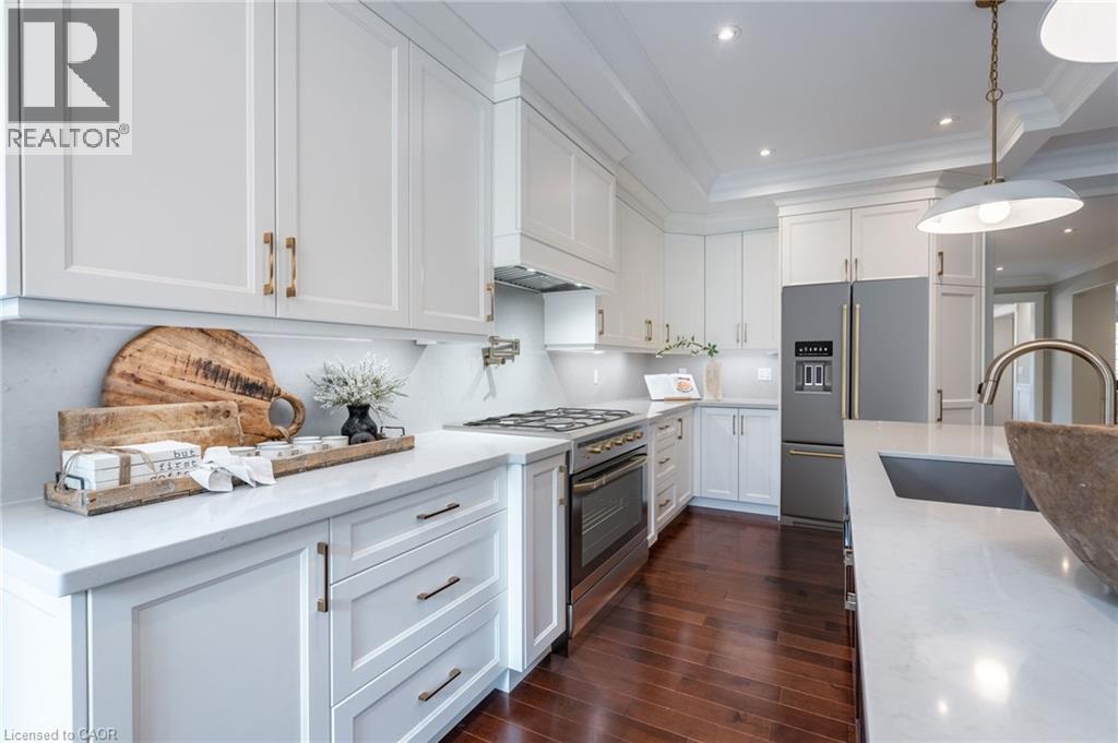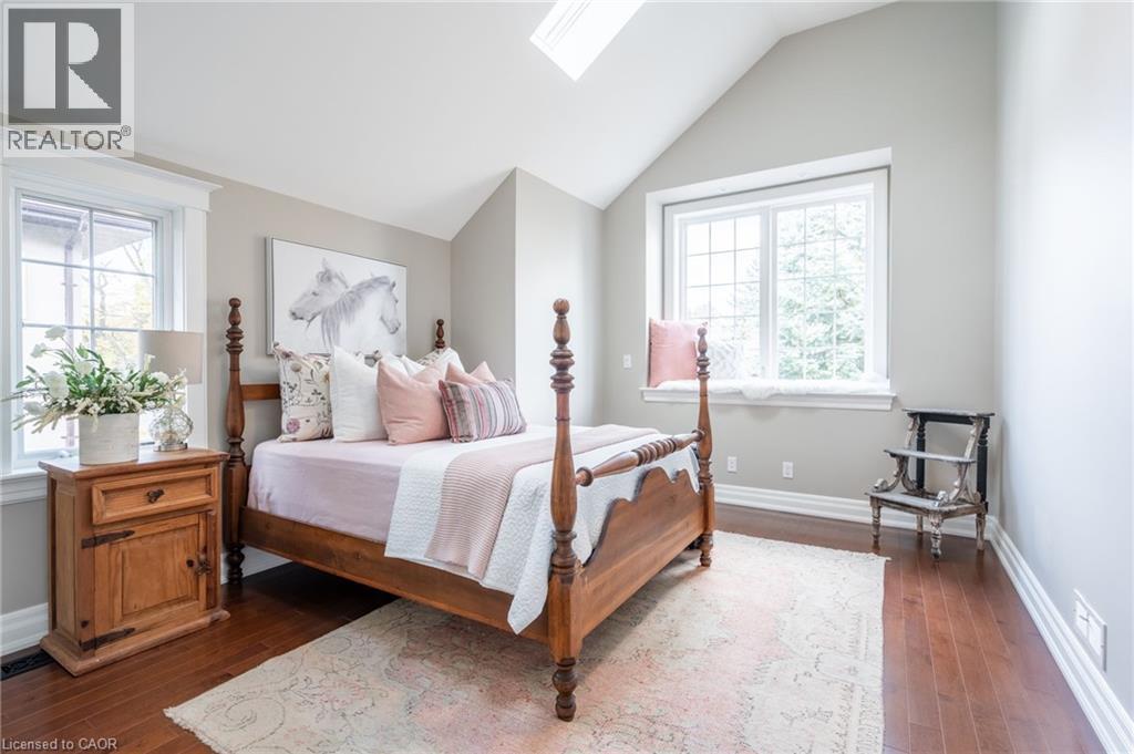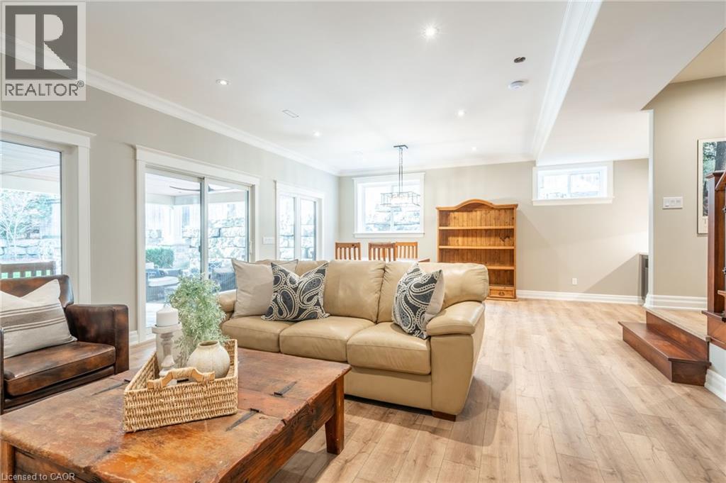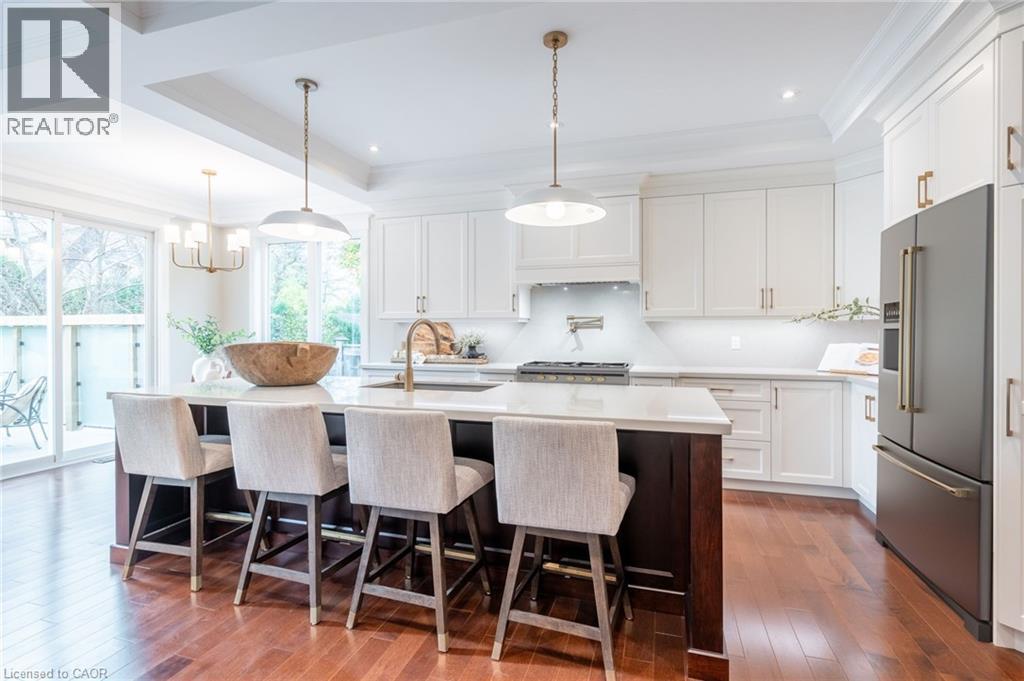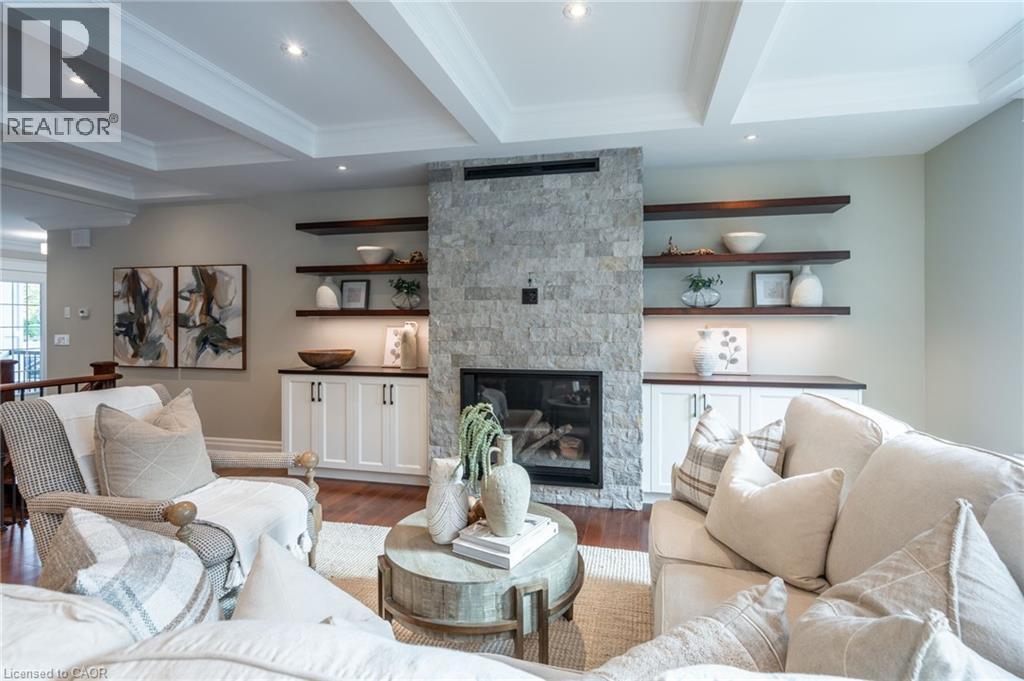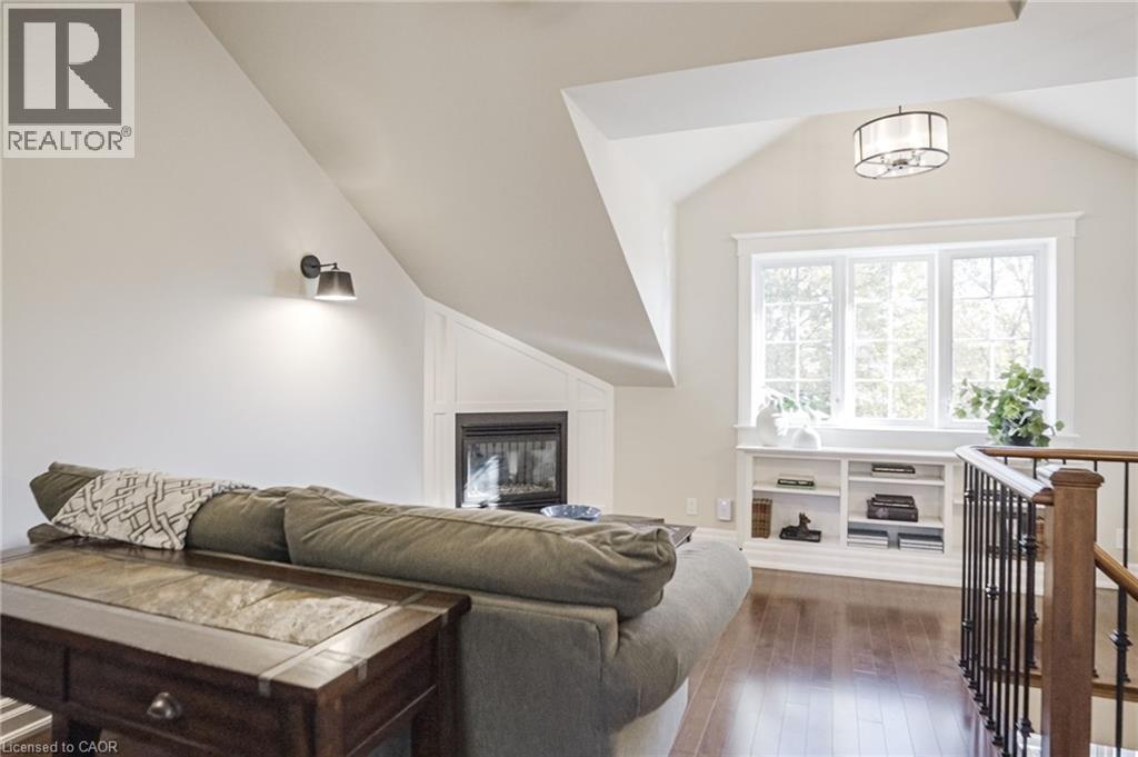 Presenting an extraordinary four-storey home that spans over 4,400 square feet of elegantly designed living space in the esteemed Indian Point neighborhood. This residence exemplifies exceptional craftsmanship and attention to detail. Inside, you’ll find a beautifully crafted custom kitchen with a spacious island, an elegant great room adorned with coffered ceilings, and a striking floor-to-ceiling stone fireplace. The bedrooms boast vaulted ceilings with skylights, while the primary suite features a Juliet balcony and a stunning five-piece ensuite. There is also a gorgeous loft which ideal for the home office with wet bar, fireplace & powder room. The lower level, bathed in natural light from full-size windows, is perfect for a games or media room, complete with a wet bar. The garage is equipped with heated flooring and includes a fully finished loft, ideal for a personal retreat or additional storage, along with a separate staircase leading to the basement. Experience the allure of four distinct decks, featuring a welcoming front porch perfect for enjoying sunset views, and a main upper deck off the kitchen with a custom tempered glass privacy screen. The impressive lower walk-out deck, shielded from the weather, creates a cozy environment for unwinding, while the garage deck offers potential for an outdoor kitchen setup. The extensive landscaping features over 100 tonnes of armour stone and a sophisticated seven-zone irrigation system, enhancing privacy with mature foliage. Conveniently located within walking distance to Spencer Smith Park, scenic lakefront trails, and the finest dining and shopping in downtown Burlington, this home perfectly balances luxury and accessibility. (id:51158)