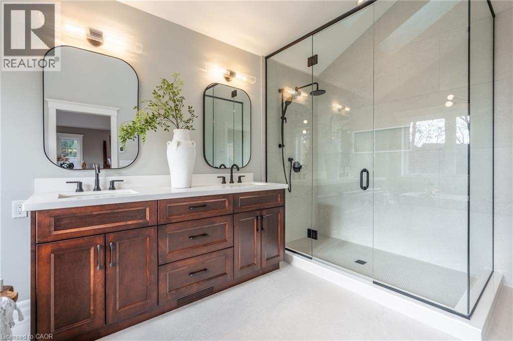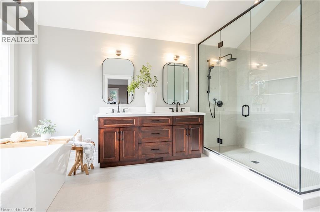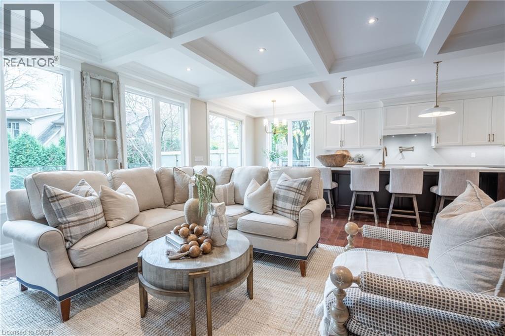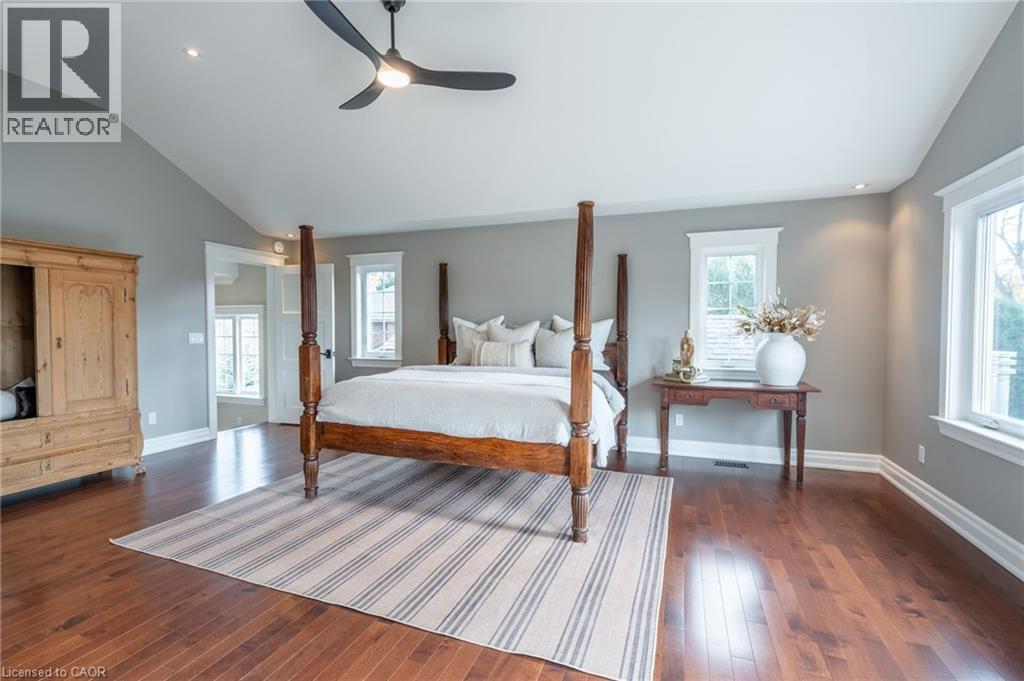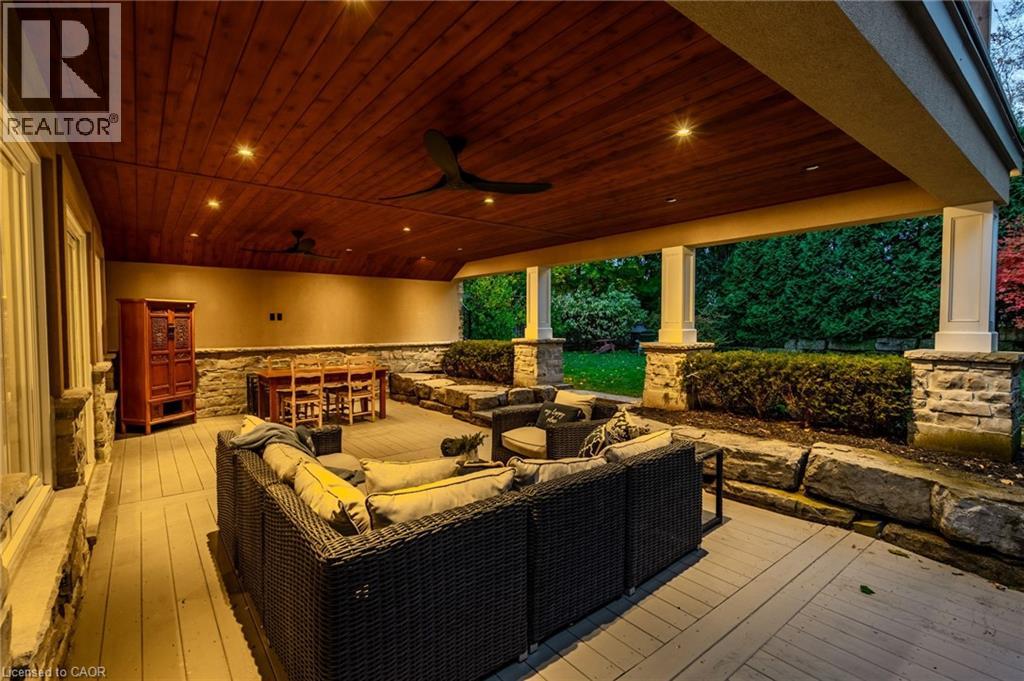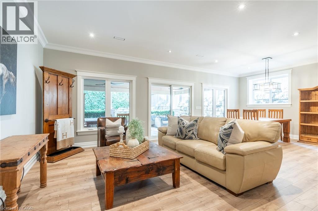 Presenting an extraordinary four-storey home that spans over 4,400 square feet of elegantly designed living space in the esteemed Indian Point neighborhood. This residence exemplifies exceptional craftsmanship and attention to detail. Inside, you’ll find a beautifully crafted custom kitchen with a spacious island, an elegant great room adorned with coffered ceilings, and a striking floor-to-ceiling stone fireplace. The bedrooms boast vaulted ceilings with skylights, while the primary suite features a Juliet balcony and a stunning five-piece ensuite. There is also a gorgeous loft which ideal for the home office with wet bar, fireplace & powder room. The lower level, bathed in natural light from full-size windows, is perfect for a games or media room, complete with a wet bar. The garage is equipped with heated flooring and includes a fully finished loft, ideal for a personal retreat or additional storage, along with a separate staircase leading to the basement. Experience the allure of four distinct decks, featuring a welcoming front porch perfect for enjoying sunset views, and a main upper deck off the kitchen with a custom tempered glass privacy screen. The impressive lower walk-out deck, shielded from the weather, creates a cozy environment for unwinding, while the garage deck offers potential for an outdoor kitchen setup. The extensive landscaping features over 100 tonnes of armour stone and a sophisticated seven-zone irrigation system, enhancing privacy with mature foliage. Conveniently located within walking distance to Spencer Smith Park, scenic lakefront trails, and the finest dining and shopping in downtown Burlington, this home perfectly balances luxury and accessibility. (id:51158)