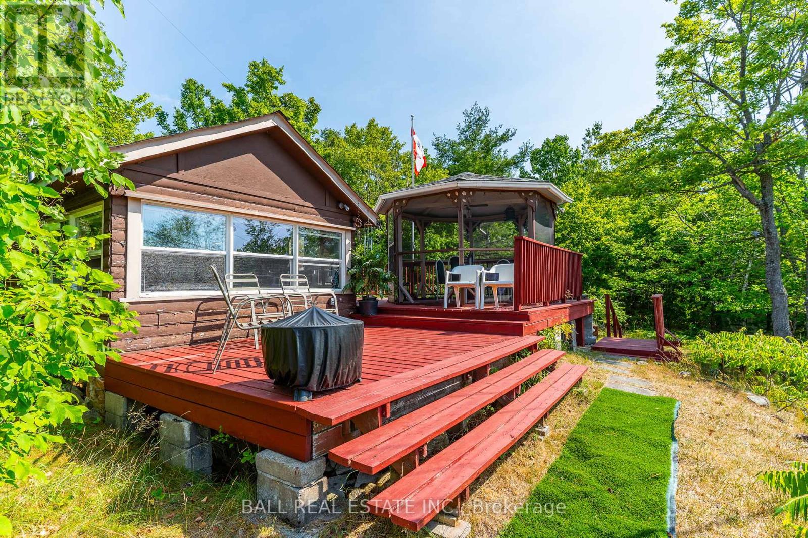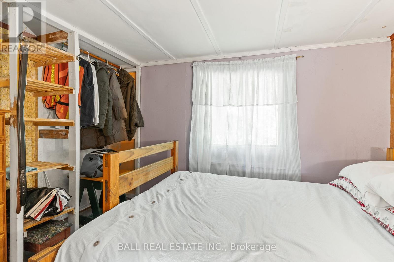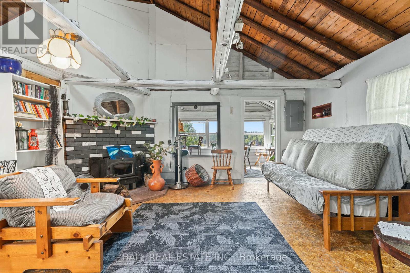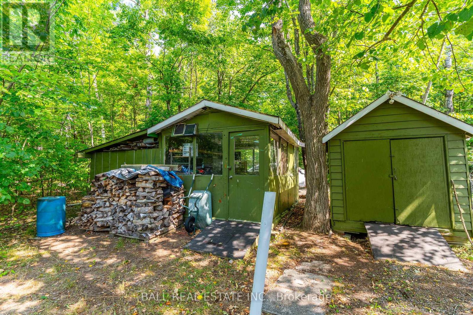 Welcome to your peaceful escape on sought-after Davis Lake! This cozy 2-bedroom log cabin is perched on a stunning rock outcropping with postcard-worthy views of the lake. Tucked away on a private dead-end road with only five other cottages, its the perfect getaway for nature lovers and outdoor enthusiasts. Inside, you'll find a recently updated 3-piece bathroom, a refreshed galley-style kitchen, and a new breaker electrical panel for peace of mind. The rustic charm of the original build is preserved while offering practical updates like newer windows and a WETT-certified wood stove to keep you warm and cozy year-round. Step outside to enjoy a screened-in gazebo, two large storage sheds (one with a workshop), and even an outdoor privy. Owners on this quiet road enjoy shared access to over 700 acres of pristine conservation land with scenic trails an incredible bonus provided through the Davis Lake Cottage Association and the MNR. There's also lake access with a small dock just across the road, and a public boat launch just minutes away. Davis Lake is known for its excellent swimming, boating, and fishing, and this special property offers a rare opportunity to own a piece of classic cottage country. Most contents included perfect for someone looking to get into the cottage market! (id:51158)