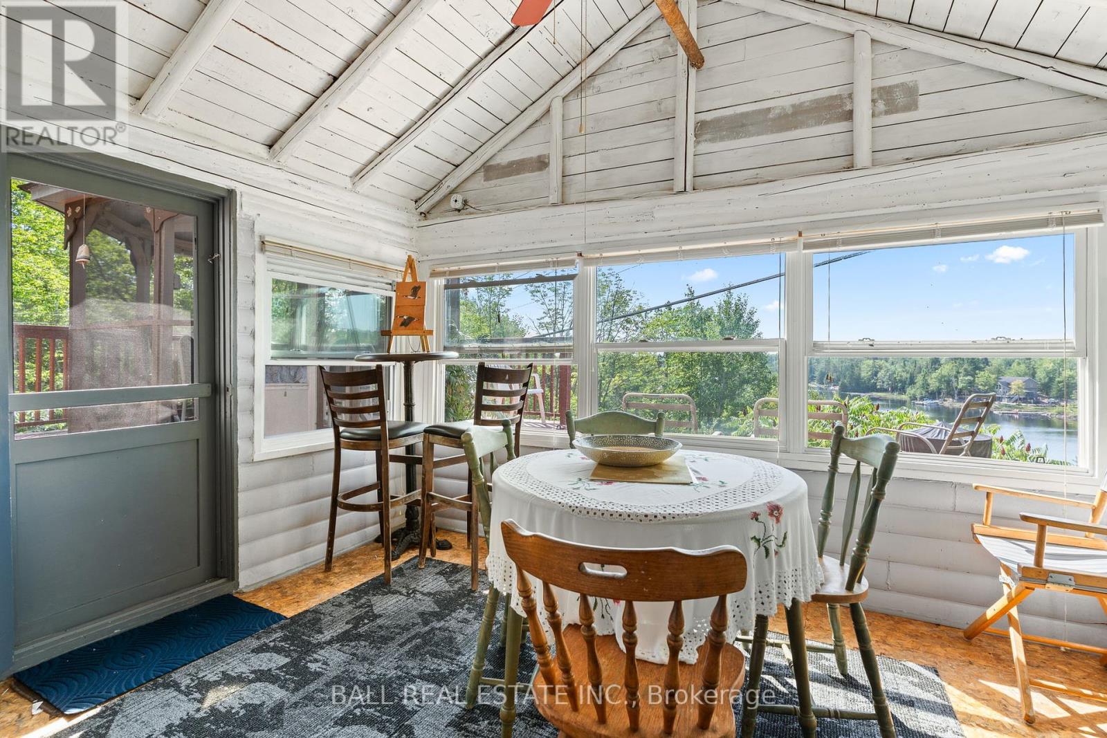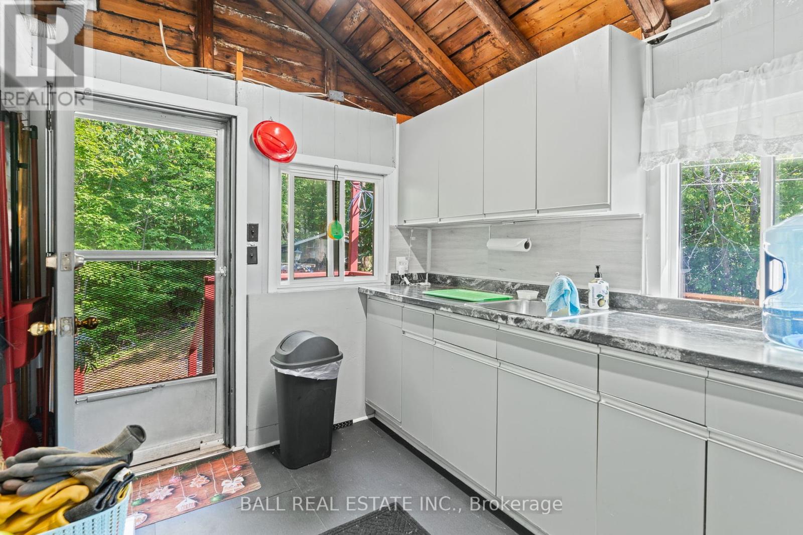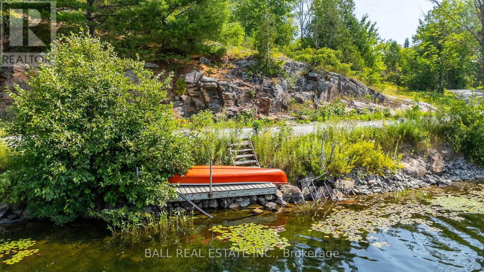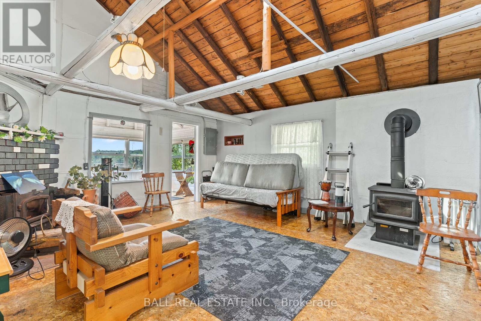 Welcome to your peaceful escape on sought-after Davis Lake! This cozy 2-bedroom log cabin is perched on a stunning rock outcropping with postcard-worthy views of the lake. Tucked away on a private dead-end road with only five other cottages, its the perfect getaway for nature lovers and outdoor enthusiasts. Inside, you'll find a recently updated 3-piece bathroom, a refreshed galley-style kitchen, and a new breaker electrical panel for peace of mind. The rustic charm of the original build is preserved while offering practical updates like newer windows and a WETT-certified wood stove to keep you warm and cozy year-round. Step outside to enjoy a screened-in gazebo, two large storage sheds (one with a workshop), and even an outdoor privy. Owners on this quiet road enjoy shared access to over 700 acres of pristine conservation land with scenic trails an incredible bonus provided through the Davis Lake Cottage Association and the MNR. There's also lake access with a small dock just across the road, and a public boat launch just minutes away. Davis Lake is known for its excellent swimming, boating, and fishing, and this special property offers a rare opportunity to own a piece of classic cottage country. Most contents included perfect for someone looking to get into the cottage market! (id:51158)