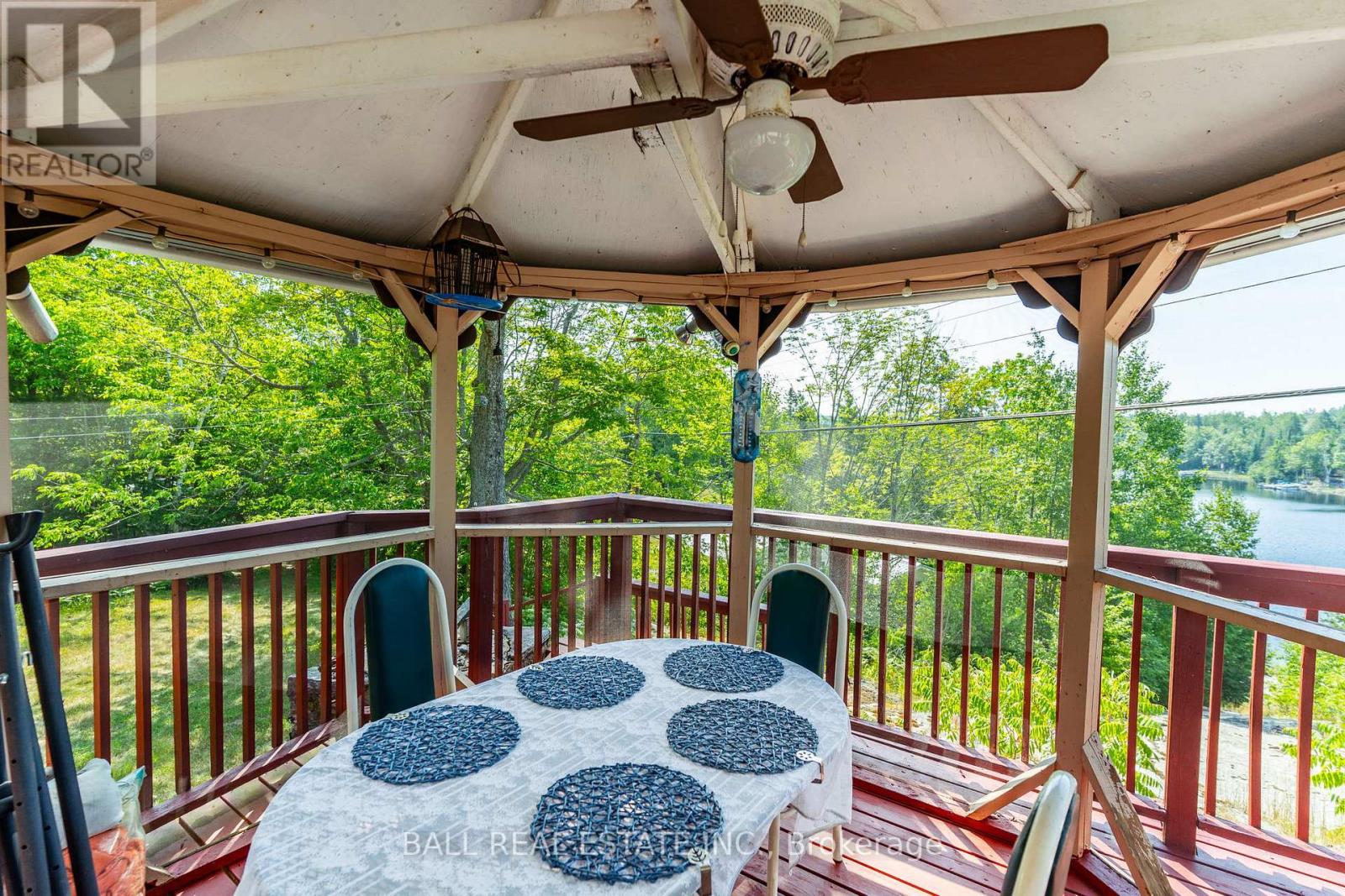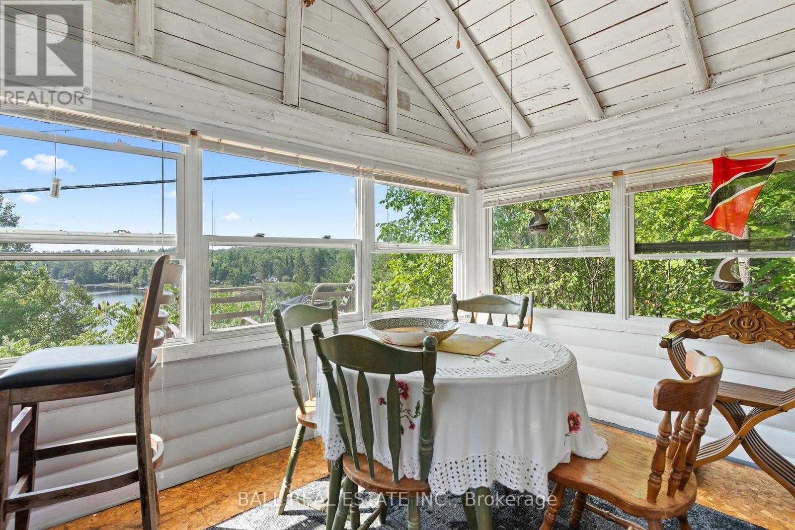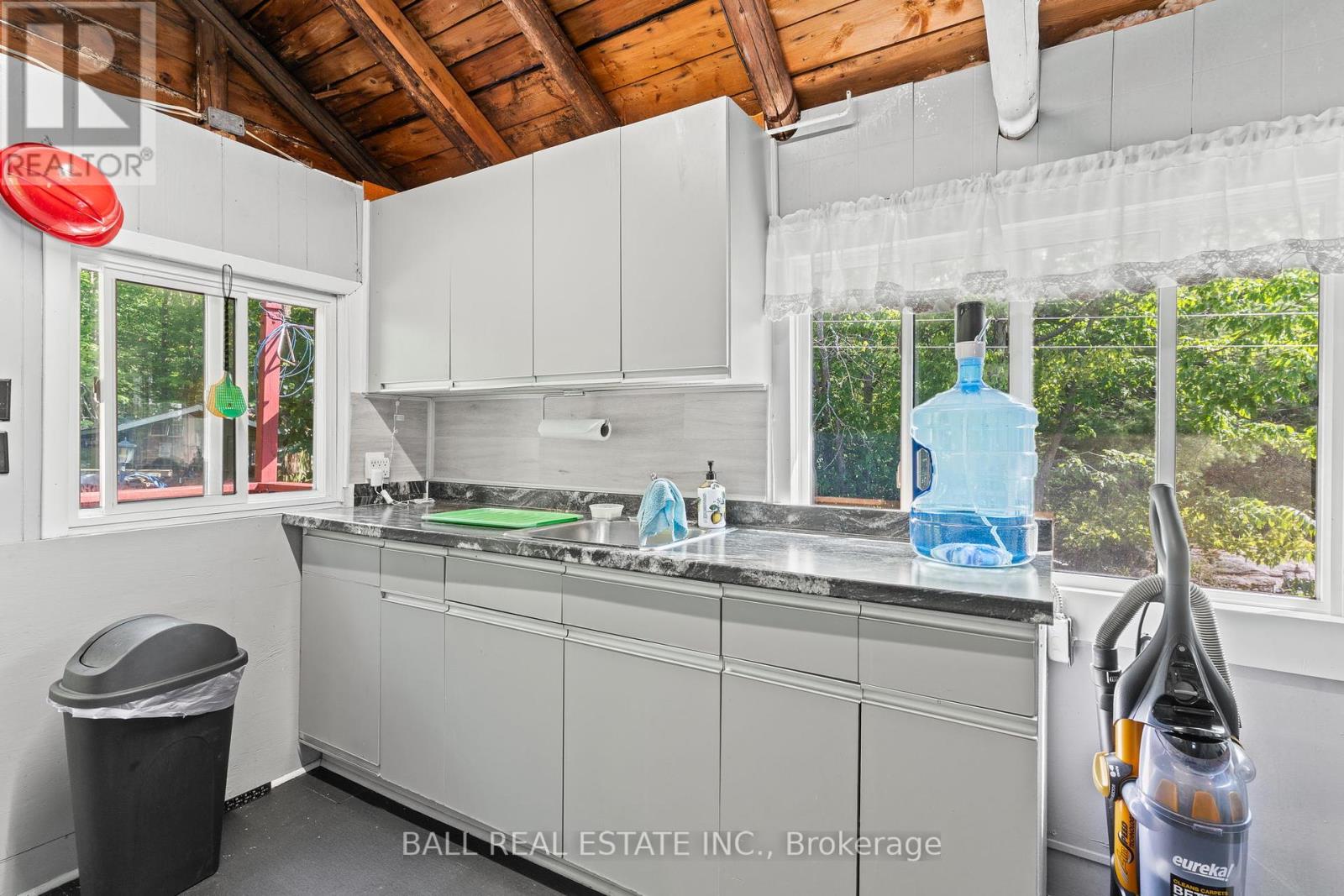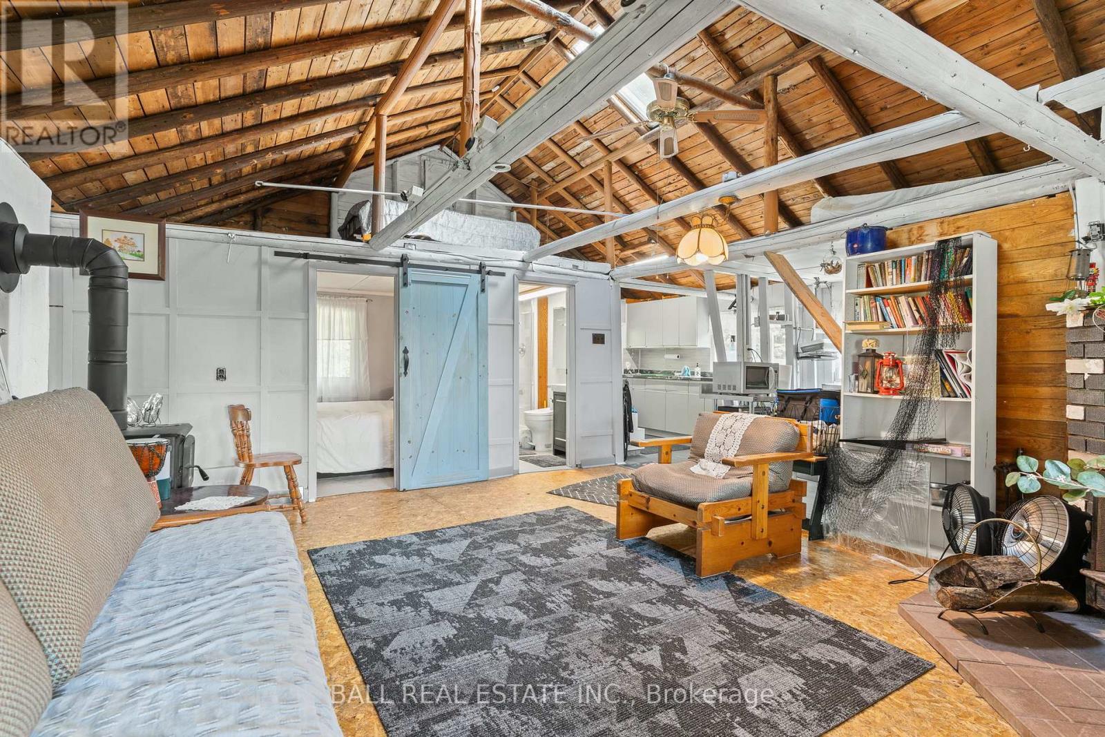 Welcome to your peaceful escape on sought-after Davis Lake! This cozy 2-bedroom log cabin is perched on a stunning rock outcropping with postcard-worthy views of the lake. Tucked away on a private dead-end road with only five other cottages, its the perfect getaway for nature lovers and outdoor enthusiasts. Inside, you'll find a recently updated 3-piece bathroom, a refreshed galley-style kitchen, and a new breaker electrical panel for peace of mind. The rustic charm of the original build is preserved while offering practical updates like newer windows and a WETT-certified wood stove to keep you warm and cozy year-round. Step outside to enjoy a screened-in gazebo, two large storage sheds (one with a workshop), and even an outdoor privy. Owners on this quiet road enjoy shared access to over 700 acres of pristine conservation land with scenic trails an incredible bonus provided through the Davis Lake Cottage Association and the MNR. There's also lake access with a small dock just across the road, and a public boat launch just minutes away. Davis Lake is known for its excellent swimming, boating, and fishing, and this special property offers a rare opportunity to own a piece of classic cottage country. Most contents included perfect for someone looking to get into the cottage market! (id:51158)
