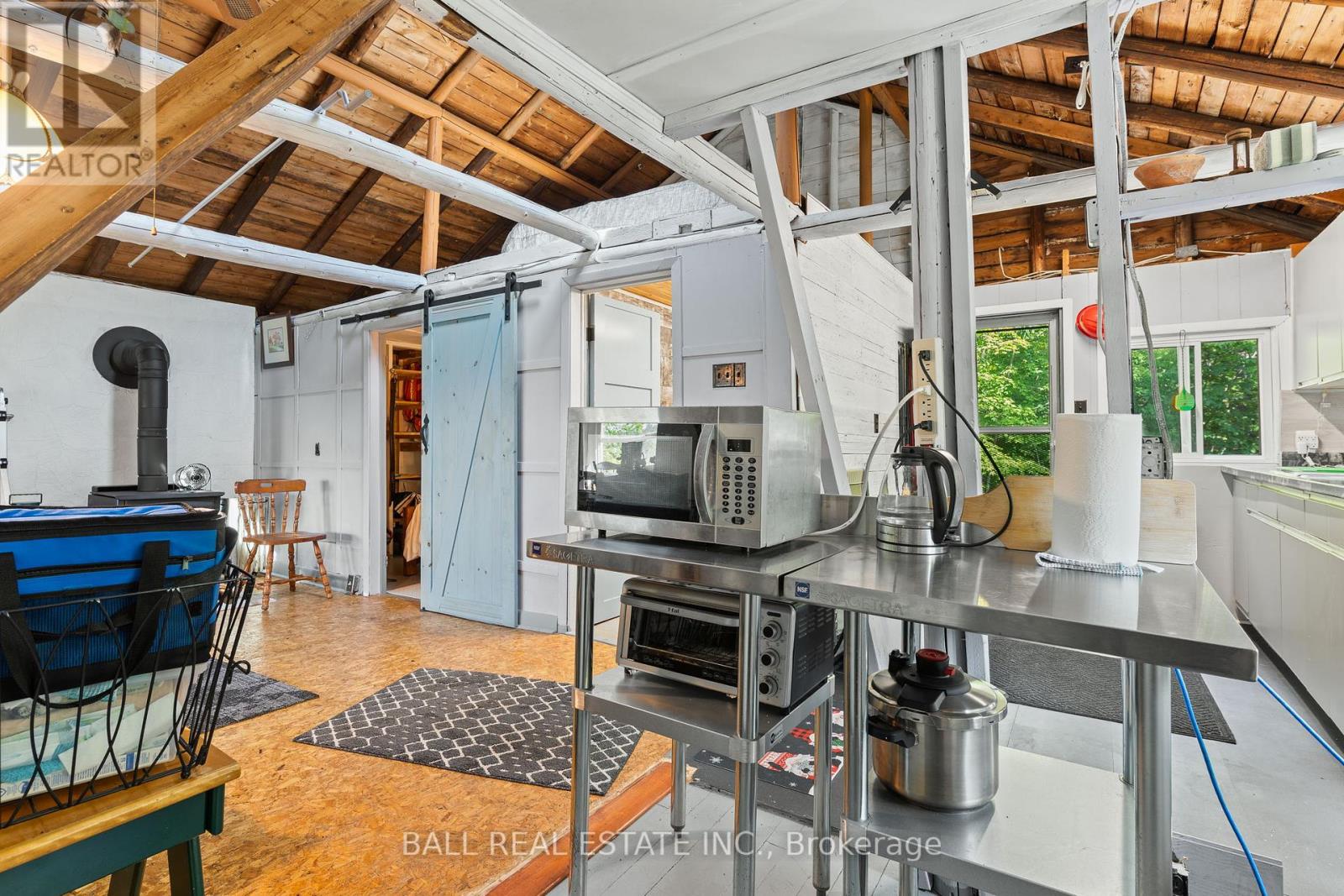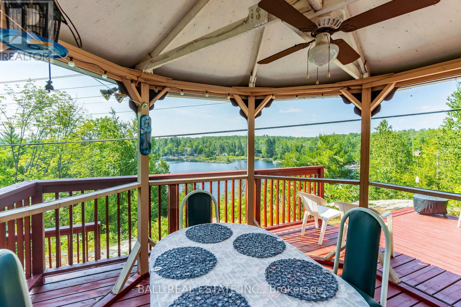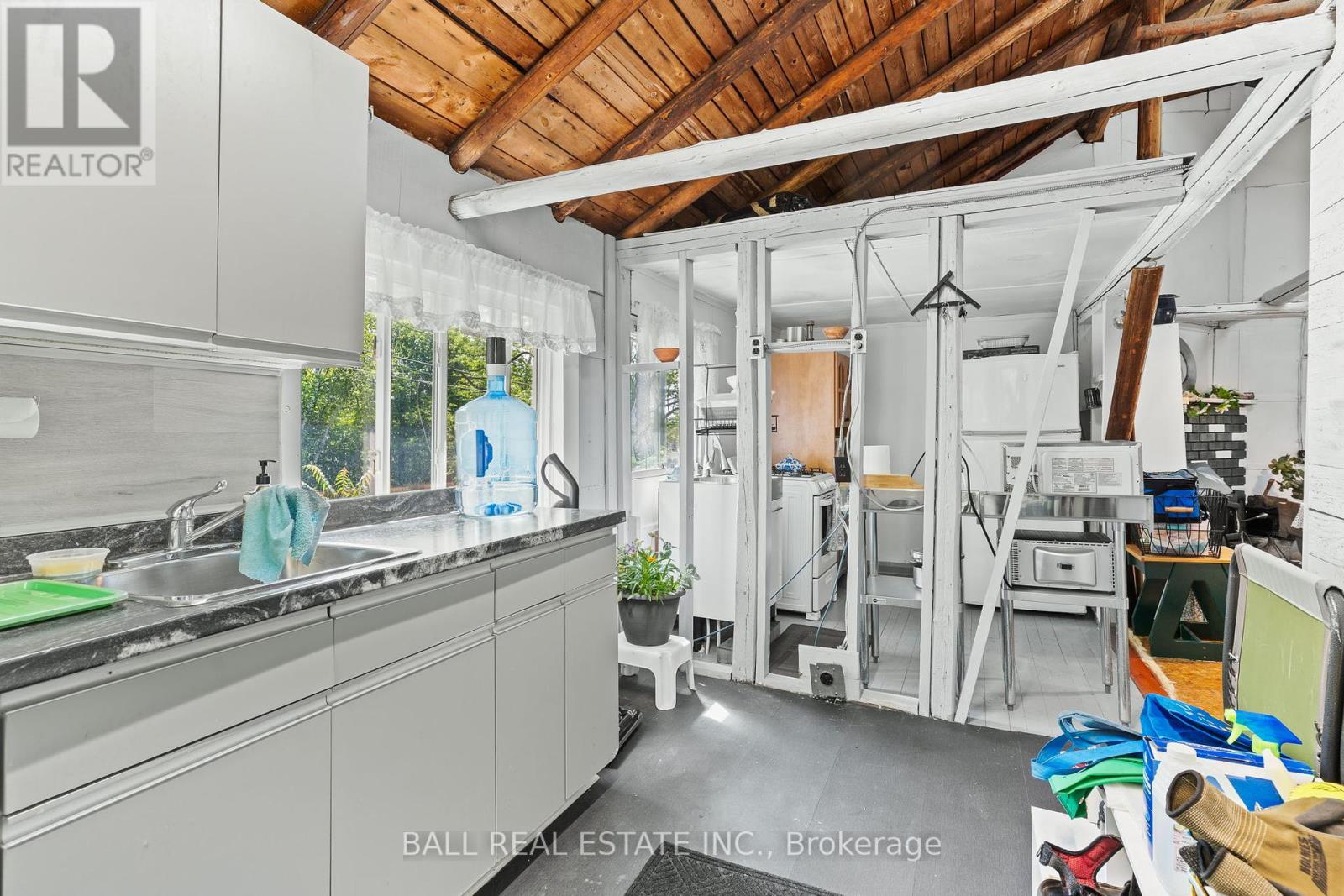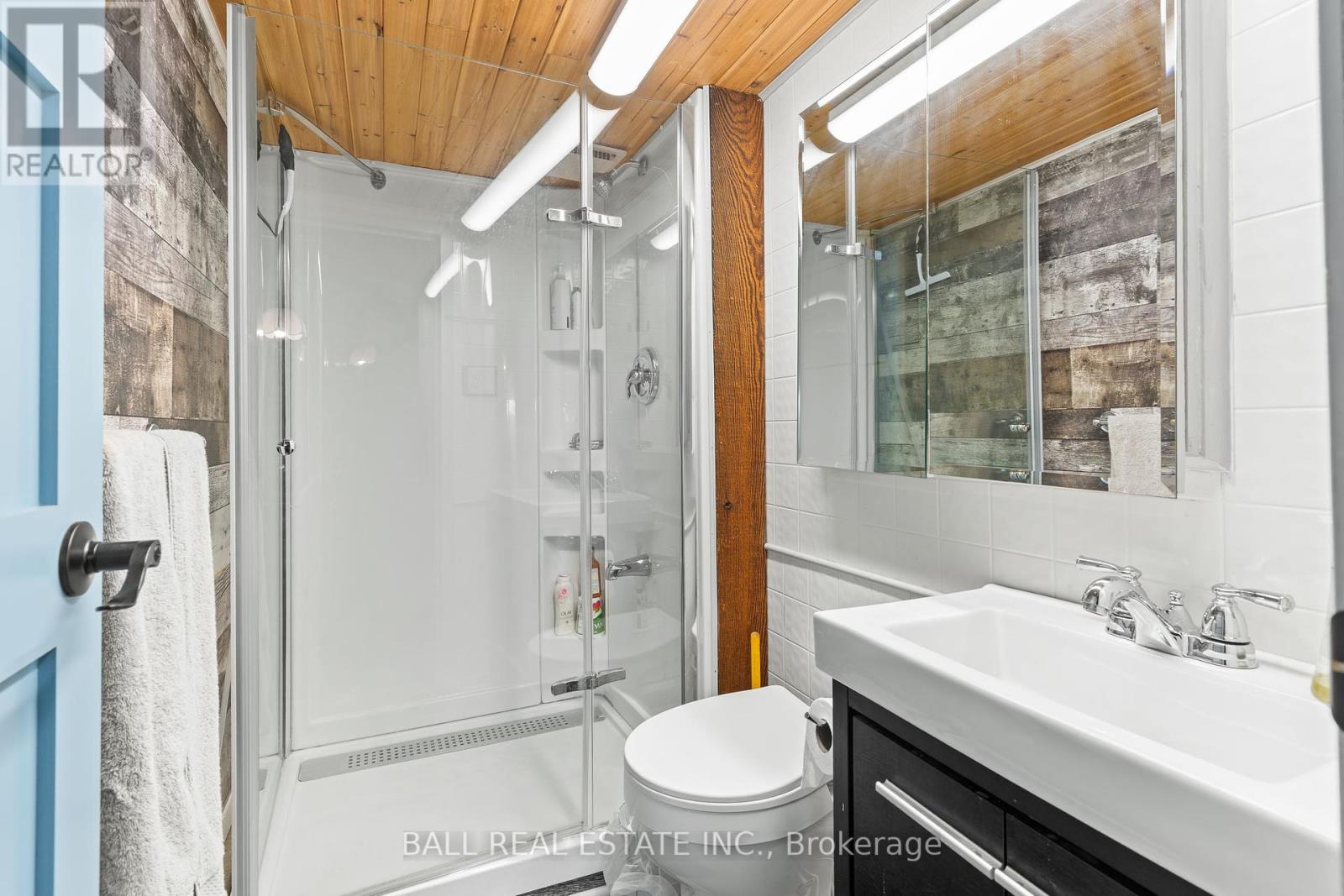 Welcome to your peaceful escape on sought-after Davis Lake! This cozy 2-bedroom log cabin is perched on a stunning rock outcropping with postcard-worthy views of the lake. Tucked away on a private dead-end road with only five other cottages, its the perfect getaway for nature lovers and outdoor enthusiasts. Inside, you'll find a recently updated 3-piece bathroom, a refreshed galley-style kitchen, and a new breaker electrical panel for peace of mind. The rustic charm of the original build is preserved while offering practical updates like newer windows and a WETT-certified wood stove to keep you warm and cozy year-round. Step outside to enjoy a screened-in gazebo, two large storage sheds (one with a workshop), and even an outdoor privy. Owners on this quiet road enjoy shared access to over 700 acres of pristine conservation land with scenic trails an incredible bonus provided through the Davis Lake Cottage Association and the MNR. There's also lake access with a small dock just across the road, and a public boat launch just minutes away. Davis Lake is known for its excellent swimming, boating, and fishing, and this special property offers a rare opportunity to own a piece of classic cottage country. Most contents included perfect for someone looking to get into the cottage market! (id:51158)