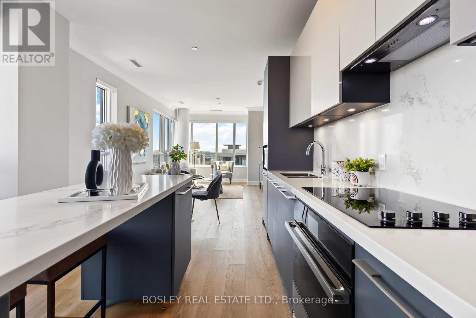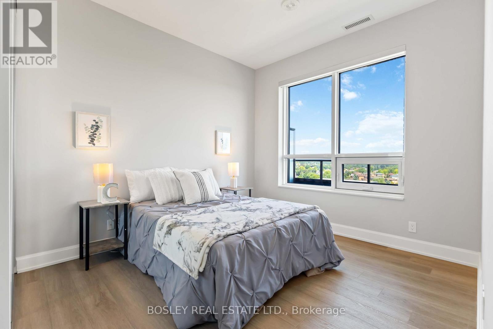 Step into elevated living at Riverview by Times Group, a 2-year new luxury condominium that redefines modern elegance in the heart of Markham. This freshly painted, just-like-new Penthouse Corner Suite offers 1,082 square feet of refined interior space, wrapped by an impressive 145 square foot oversized balcony with panoramic views of the city, distant treetops, and endless skies. Whether you're enjoying your morning coffee or catching the sunset, this suite delivers an unbeatable backdrop for everyday living. The thoughtfully designed layout features two spacious bedrooms and a generous den that can seamlessly function as a third bedroom or private home office. Inside, you'll be welcomed by 9-foot smooth ceilings, engineered vinyl flooring throughout, and expansive windows that flood the space with natural light. The kitchen and bathrooms are appointed with sleek quartz countertops and modern soft-close cabinetry designed for both luxury and everyday functionality. This home isn't just a place to live it's a lifestyle. Enjoy resort-style amenities including a 24-hour concierge, fully equipped gym, indoor pool, sauna, library, multipurpose room, and even a pet spa to pamper your four-legged family members. Perfectly positioned on Highway 7, this prime location puts you within walking distance to Whole Foods, LCBO, gourmet restaurants, VIP Cineplex, GoodLife Fitness, Downtown Markham, and the charm of Main Street Unionville. Public transit is right outside your door, and you're only minutes from Highways 404, 407, and Unionville GO Station making commuting effortless. Families will appreciate being in one of Markham's top-rated school zones, including Milliken Mills Public School, Unionville High School, and Pierre Elliott Trudeau High School. Don't miss this rare opportunity to own a freshly painted, 2-year new luxury corner unit in one of Markham's most desirable communities. Come see it for yourself and fall in love with your next home. (id:51158)